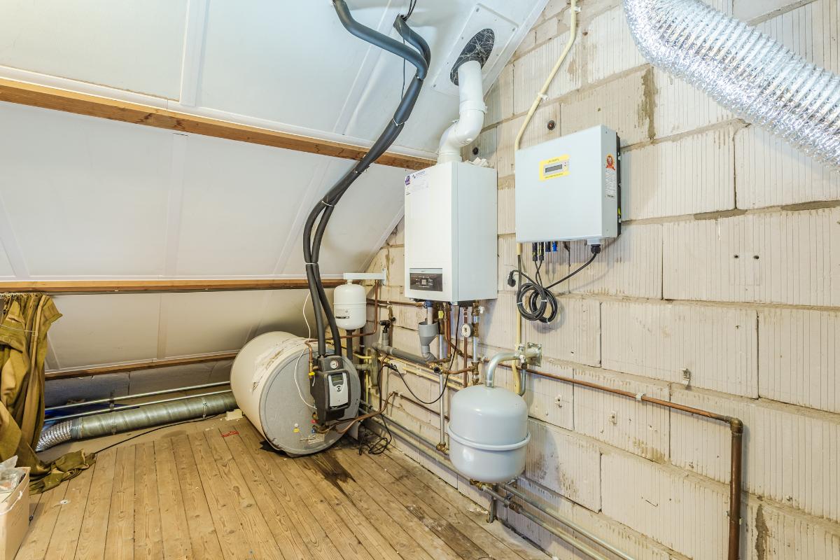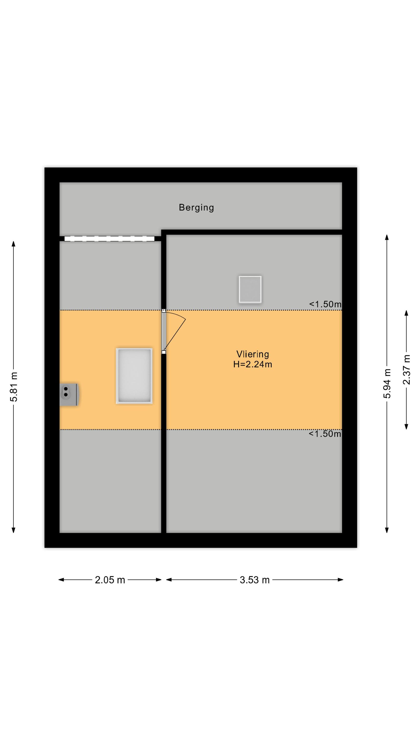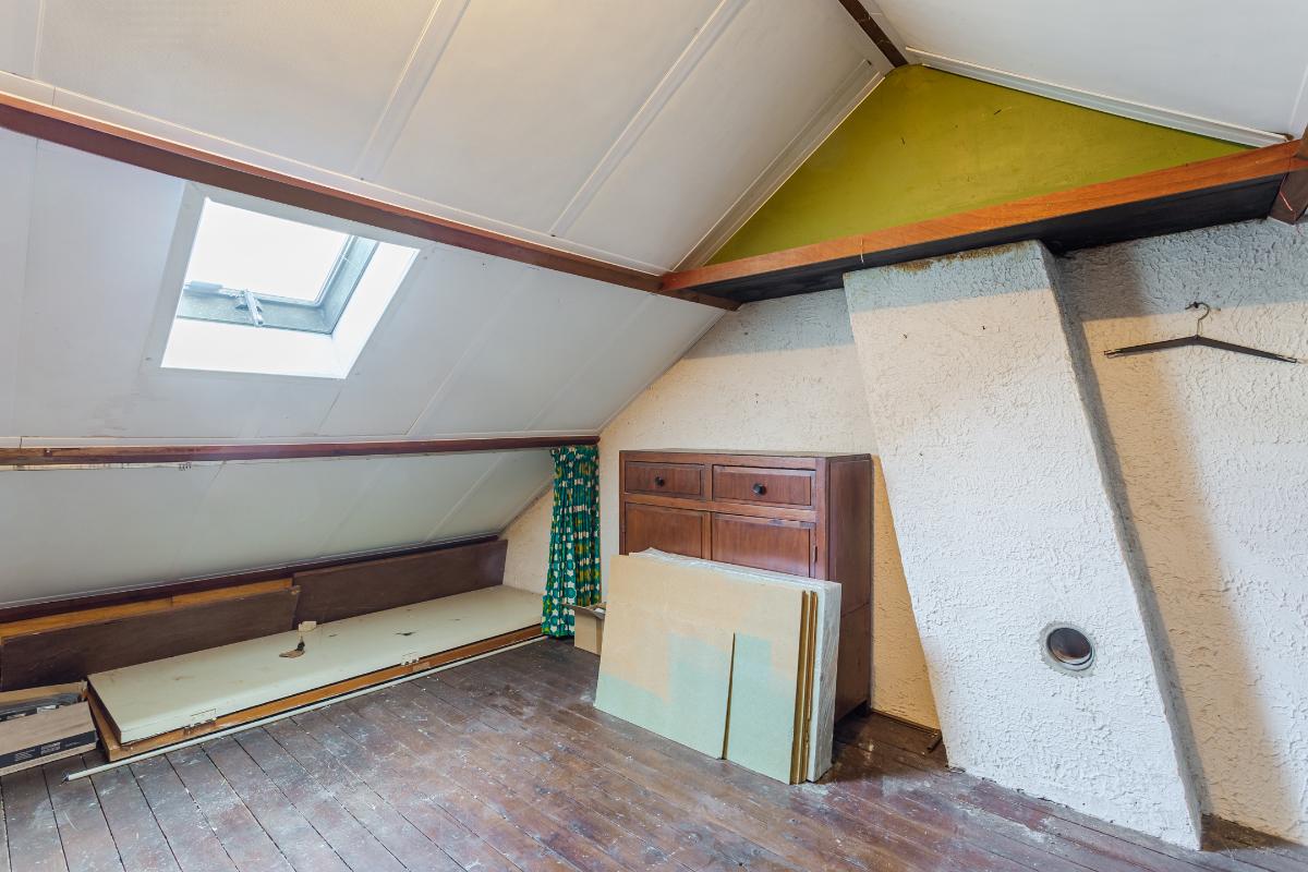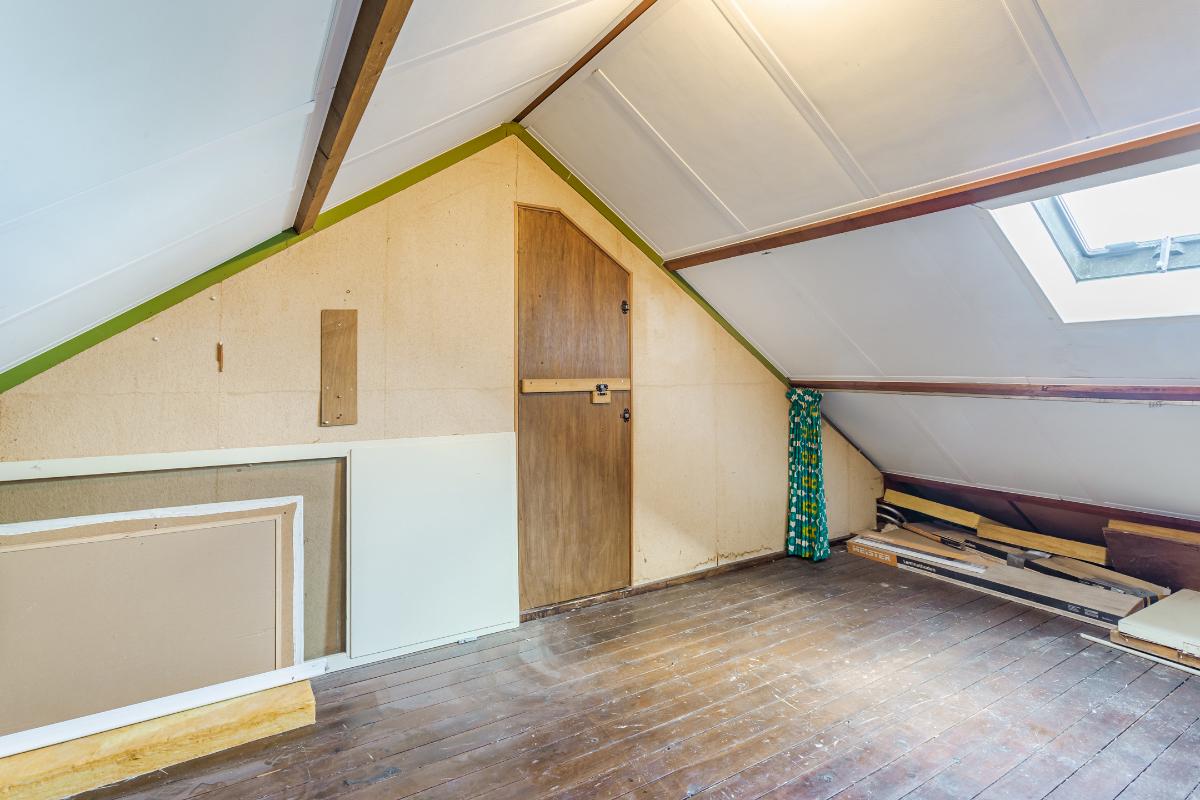 Tweede verdieping: middels een vlizotrap bereikbare ruime nageïsoleerde bergzolder, met dakraampje, waar de opstelling van CV ketel (Nefit, 2015), de zonneboiler, mechanische ventilatie en de omvormer voor de 8 zonnepanelen zijn gesitueerd. De nokhoogte bedraagt ca 2,24 meter.