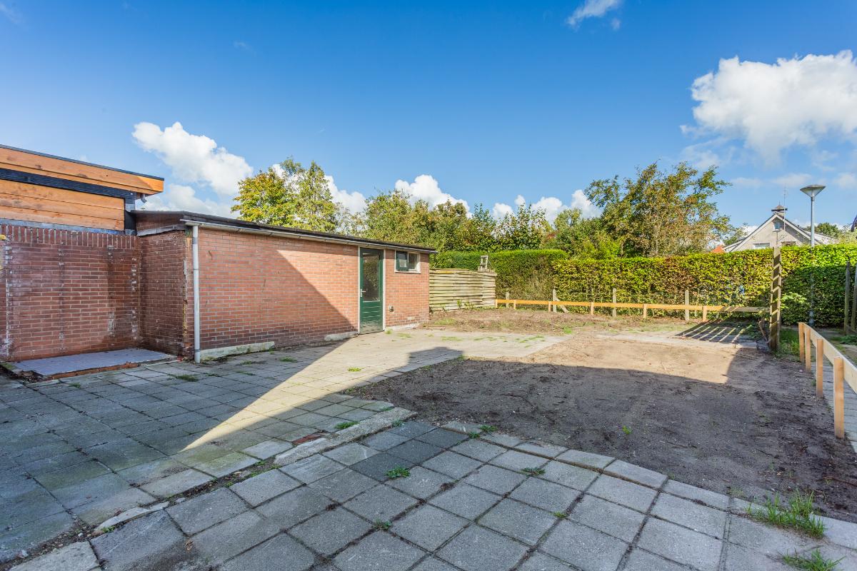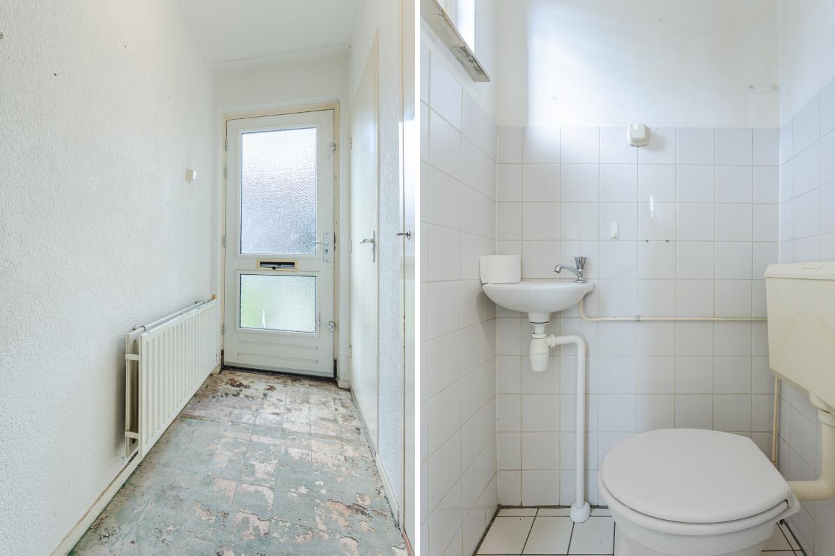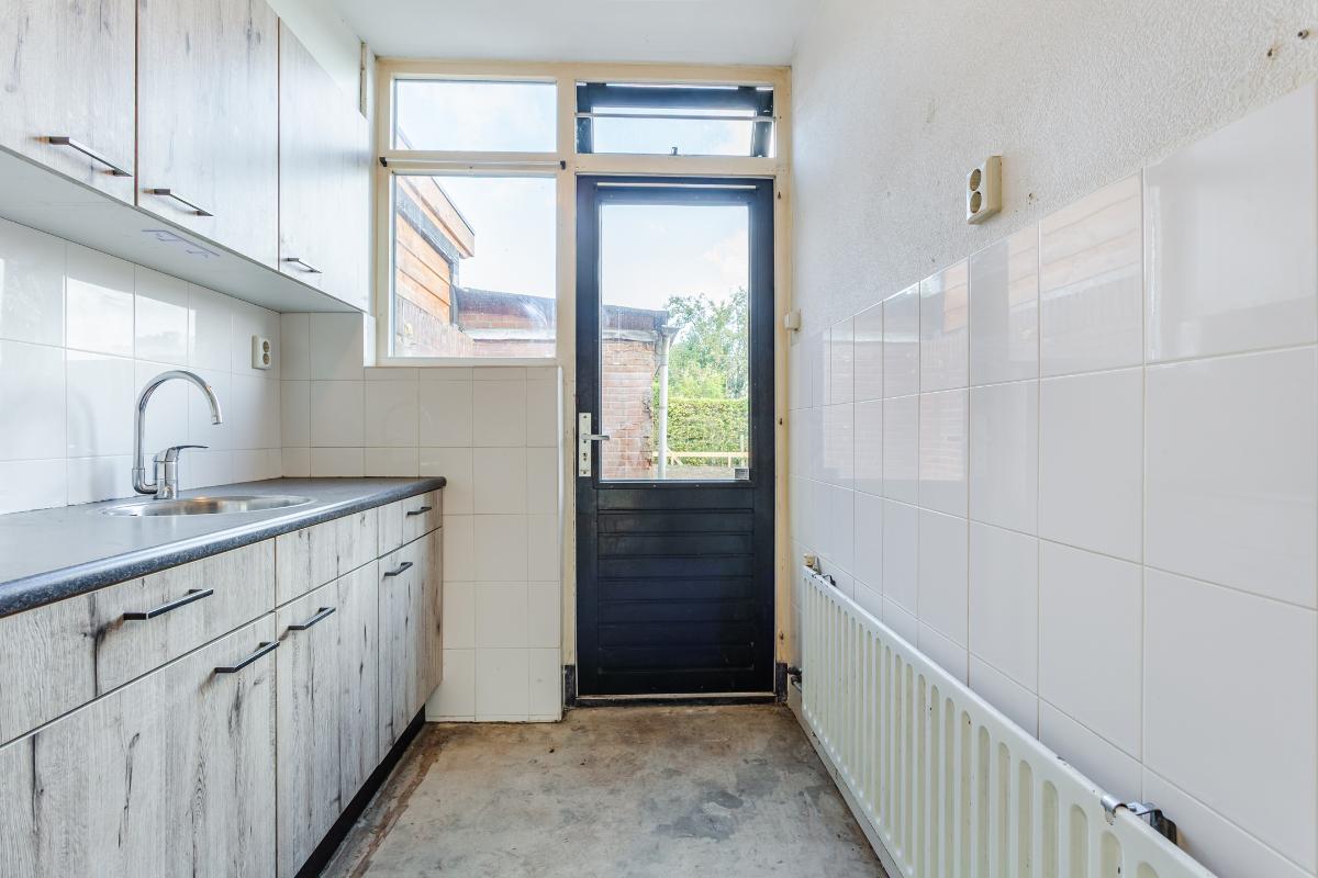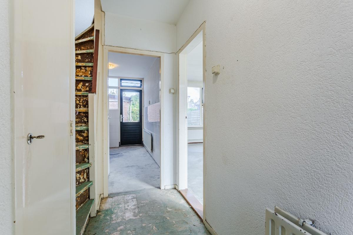Begane grond: Via de entree bereikt u de hal met meterkast (4 groepen), toiletruimte met fonteintje en trapopgang naar de 1e verdieping. De doorzon woonkamer is lekker licht en voorzien van dubbele beglazing. De dichte eenvoudige keuken (met gaskookplaat en oven) is aan de achterzijde gelegen en voorzien van een vaste kast, een verlaagde praktische kelder/trapkast en deur naar de diepe achtertuin. De deels bestrate tuin beschikt over een achterom en een vrijstaande stenen berging van ca 10 m2, en vraagt om groene vingers om er wat moois van te maken! Vanwege het ontbreken van directe achterburen kunt u hier genieten van rust en privacy.