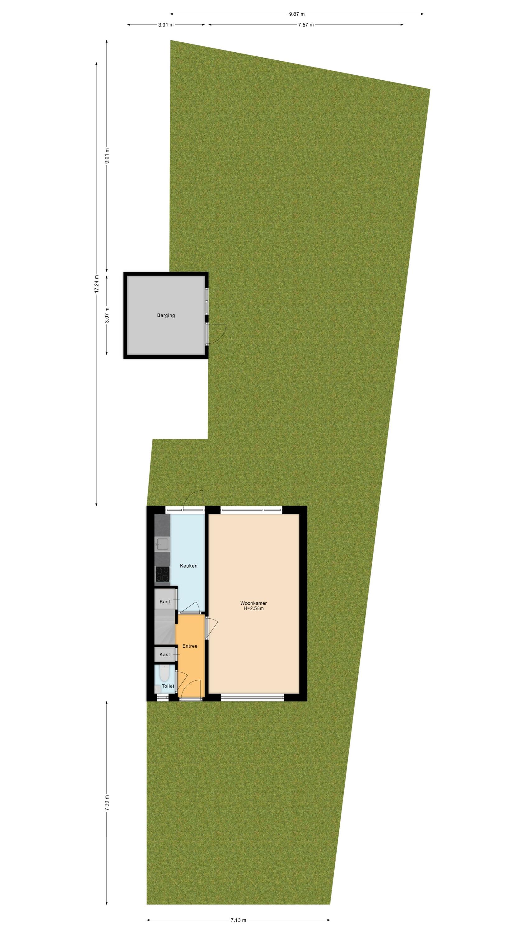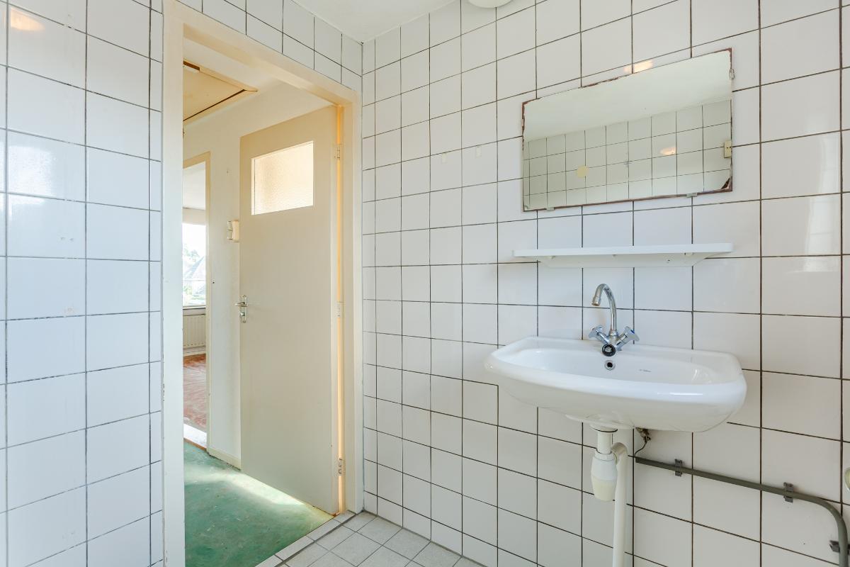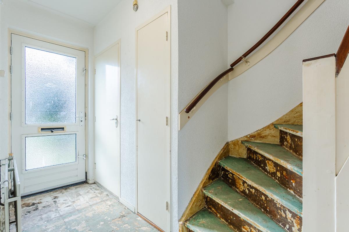 Begane grond: Via de entree bereikt u de hal met meterkast (4 groepen), toiletruimte met fonteintje en trapopgang naar de 1e verdieping. De doorzon woonkamer is lekker licht en voorzien van dubbele beglazing. De dichte eenvoudige keuken (met gaskookplaat en oven) is aan de achterzijde gelegen en voorzien van een vaste kast, een verlaagde praktische kelder/trapkast en deur naar de diepe achtertuin. De deels bestrate tuin beschikt over een achterom en een vrijstaande stenen berging van ca 10 m2, en vraagt om groene vingers om er wat moois van te maken! Vanwege het ontbreken van directe achterburen kunt u hier genieten van rust en privacy.