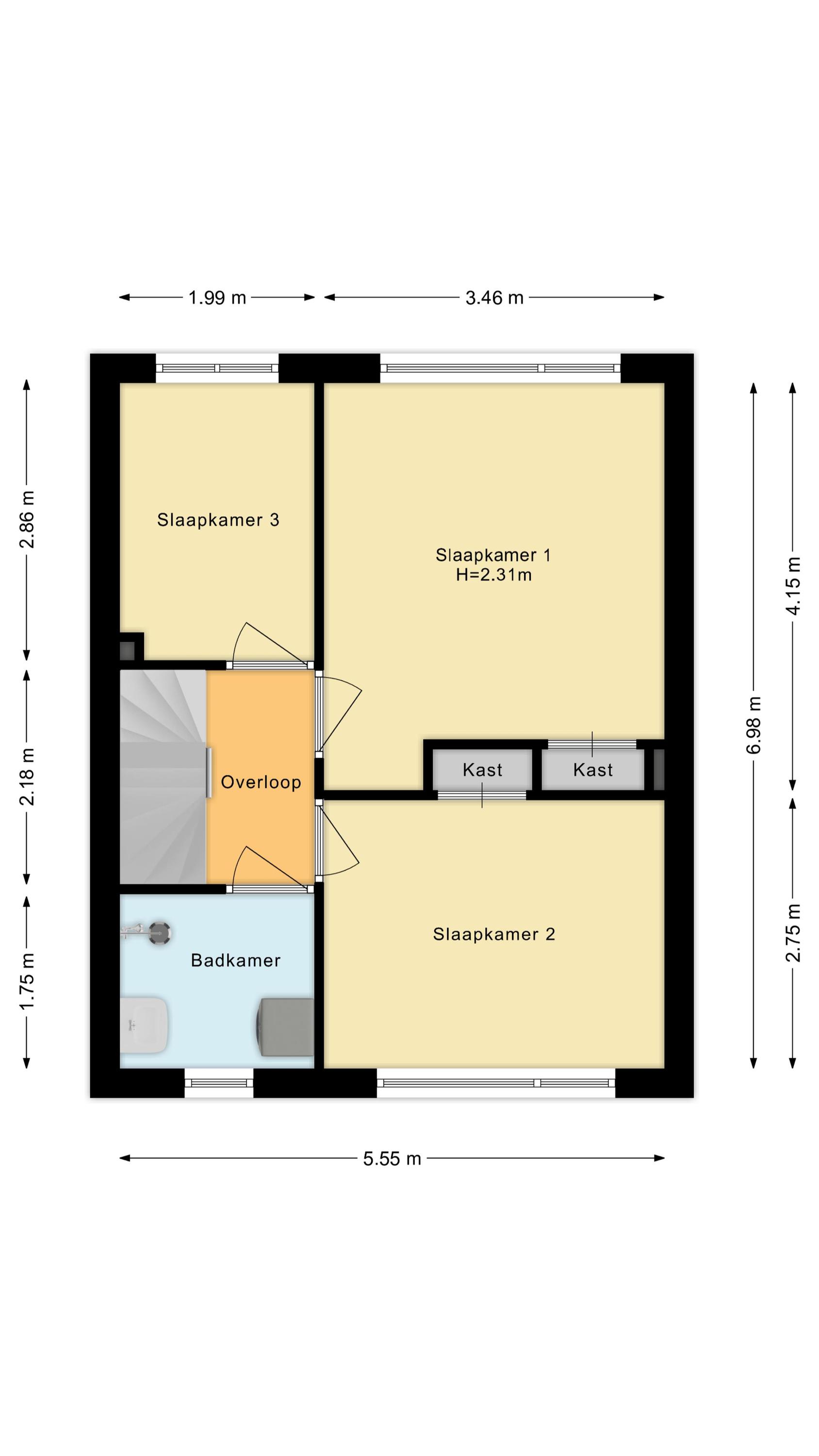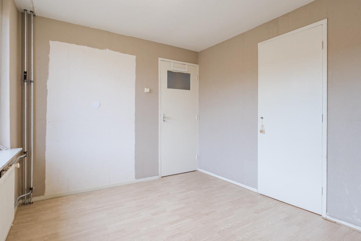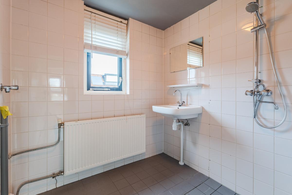 Eerste verdieping: overloop, drie slaapkamers, waarvan één aan de voorzijde en twee aan de achterzijde van de woning zijn gelegen. Deze verdieping is voorzien van een nette laminaatvloer. De eenvoudige badkamer is gesitueerd aan de voorzijde van de woning en beschikt over een douche, wastafel en een aansluiting voor de was-apparatuur.
