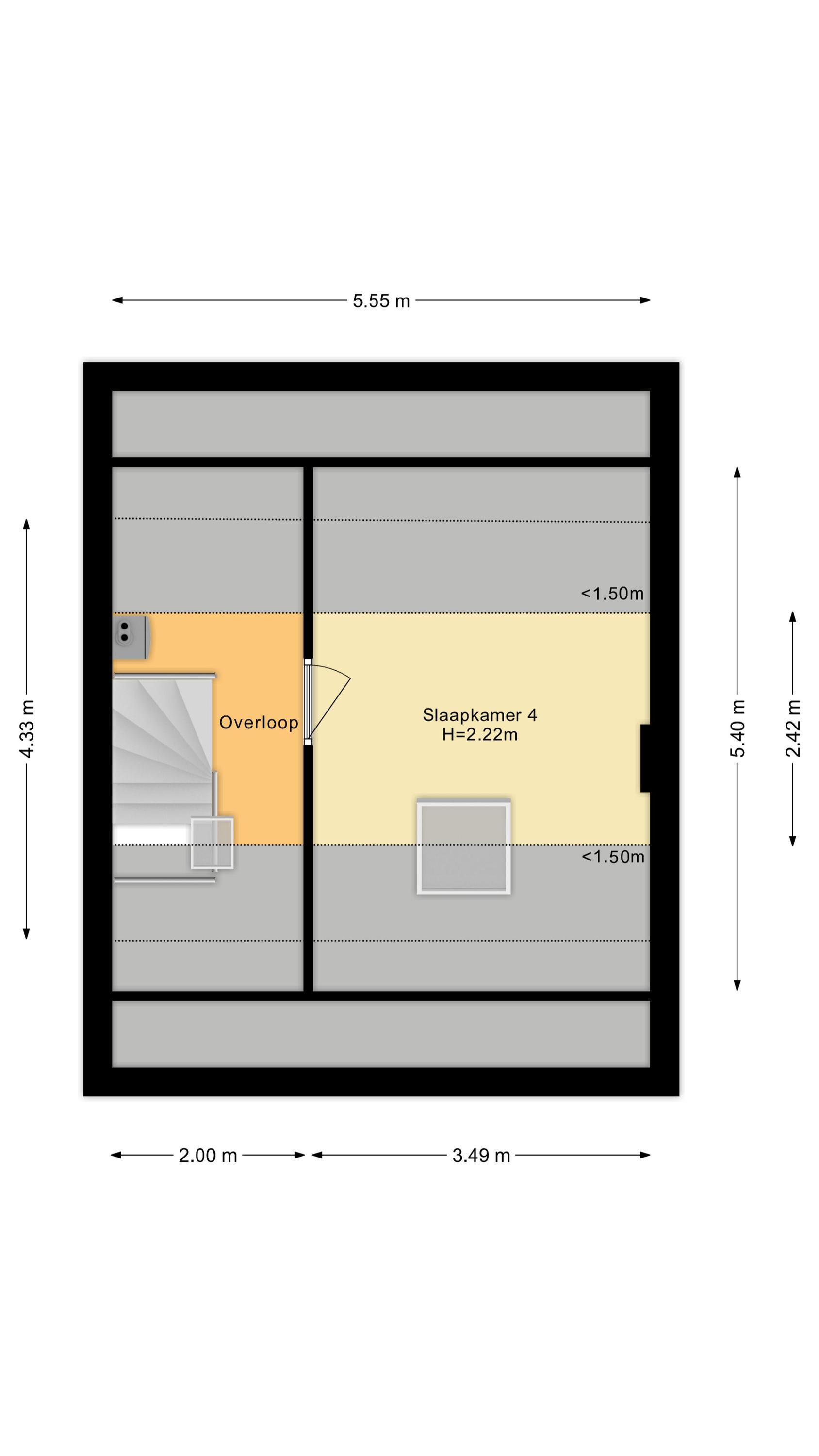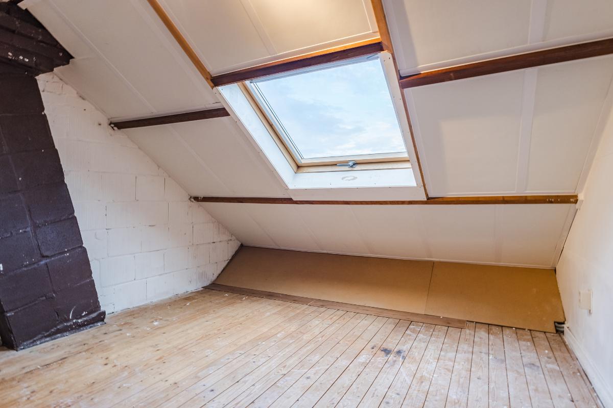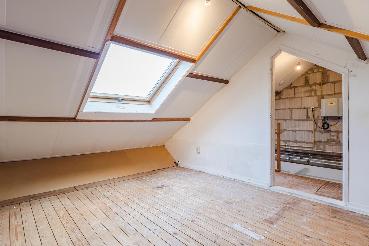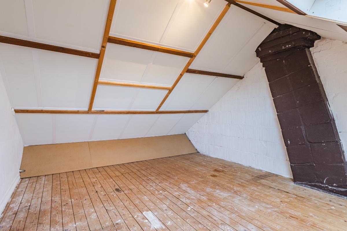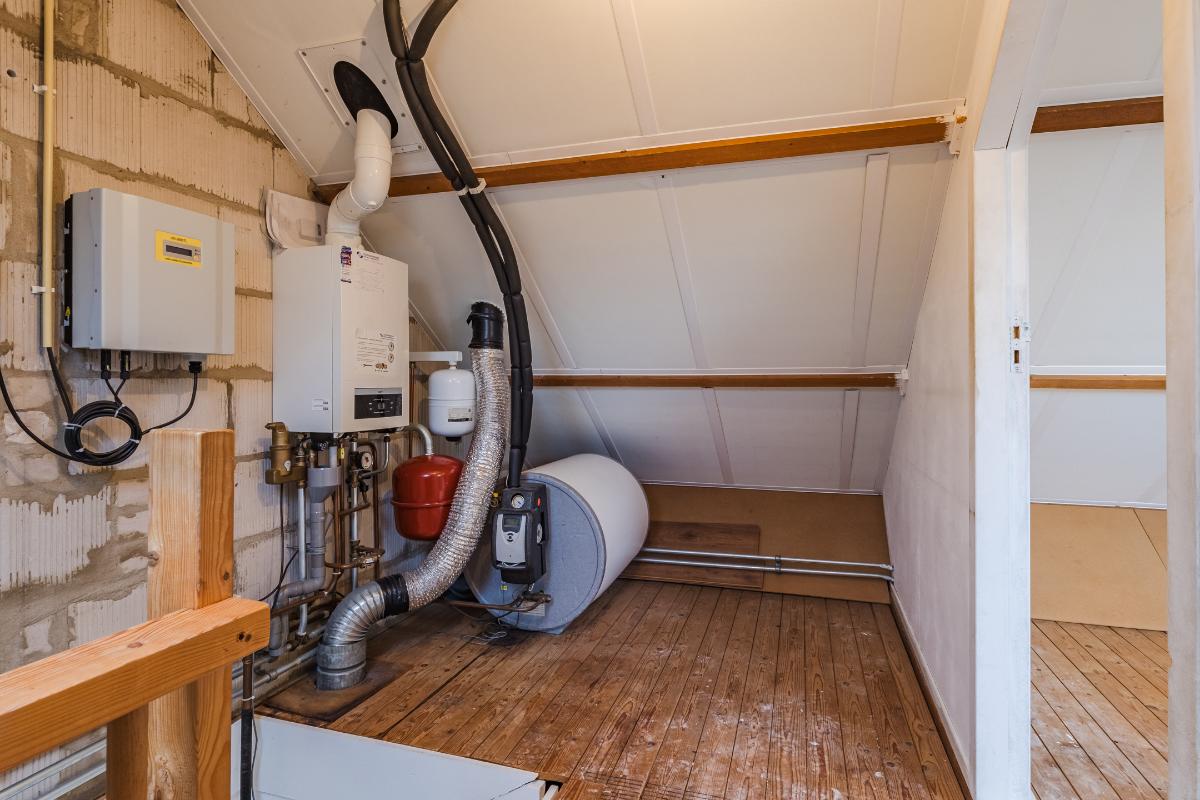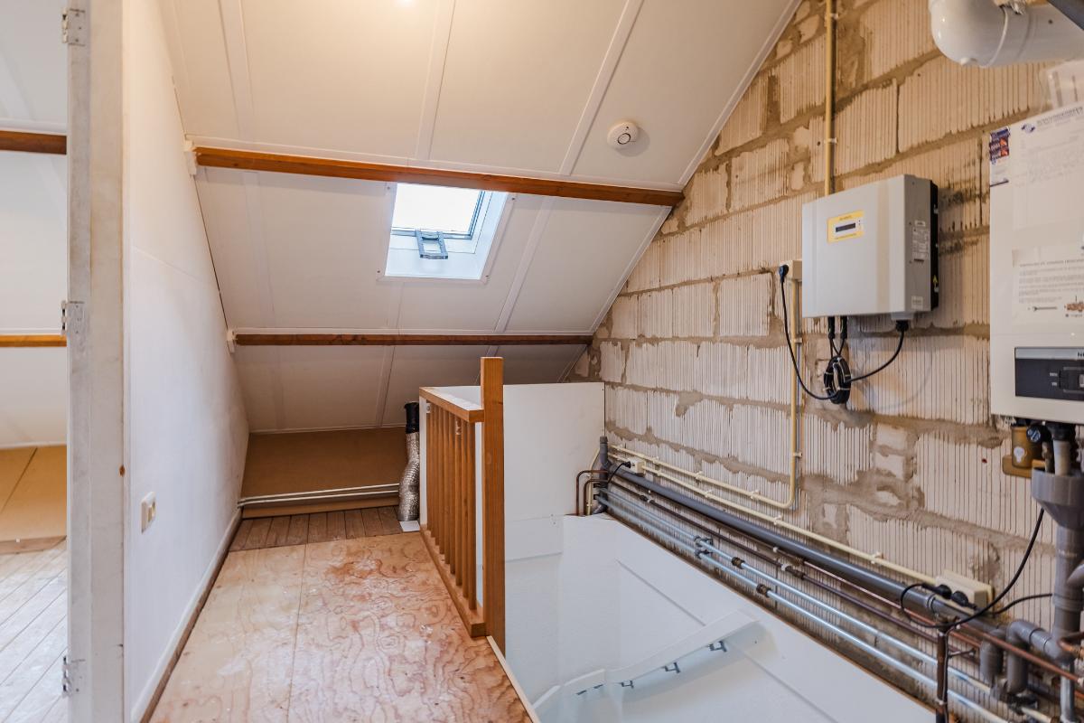 Tweede verdieping: middels een vaste trap bereikbare na-geïsoleerde zolder met cv ketel (Nefit 2014), de zonneboiler en de omvormer voor de 8 zonnepanelen. De voorzolder is voorzien van een klein dakraam, de slaapkamer van een grotere versie. De nokhoogte bedraagt ca 1,73 meter.