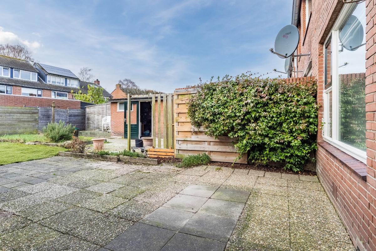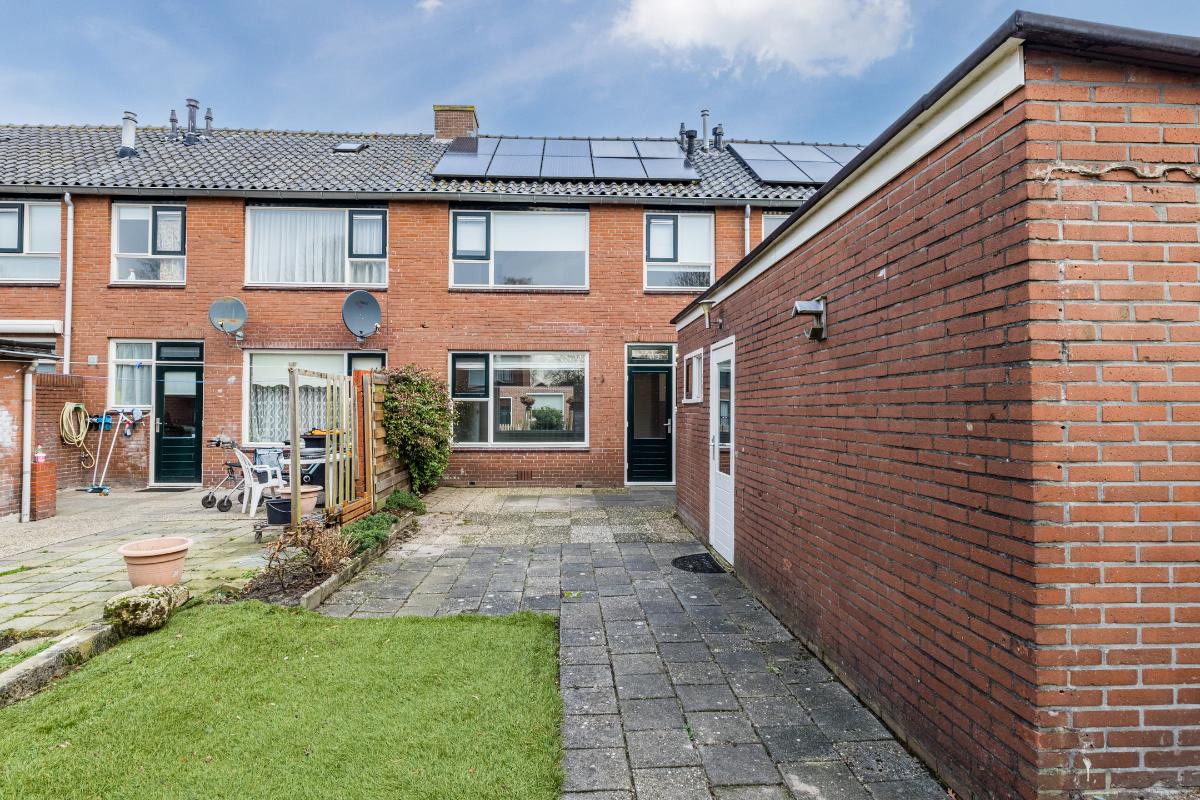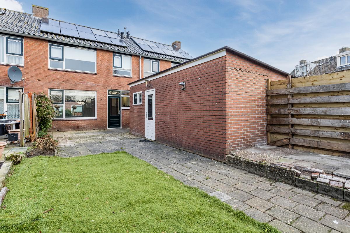De achtertuin is deels bestraat en deels aangekleed met groene borders. De tuin beschikt over een achterom en een vrijstaande stenen berging van ca 10 m2. Door de diepte van deze tuin, ruim 13 meter, zijn er goede mogelijkheden voor een uitbouw en/of een veranda.