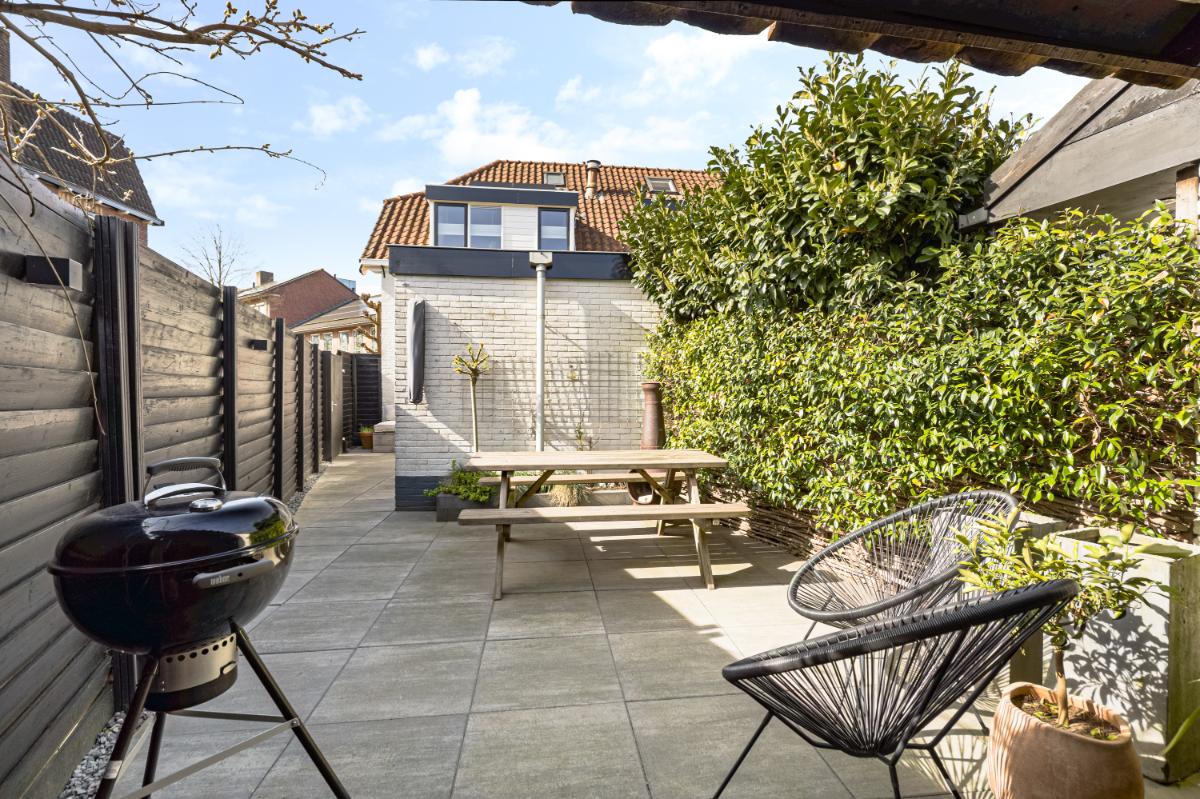 Tuin: de achtertuin is een heerlijke, besloten plek met veel privacy. De tuin is in 2022 opnieuw aangelegd en biedt meerdere zitplekken, zodat je op verschillende momenten van de dag van de zon kunt genieten. De gezellige veranda maakt het mogelijk om al vroeg in het voorjaar en tot laat in het najaar buiten te zitten. Daarnaast beschikt de tuin over een berging en een praktische achterom.