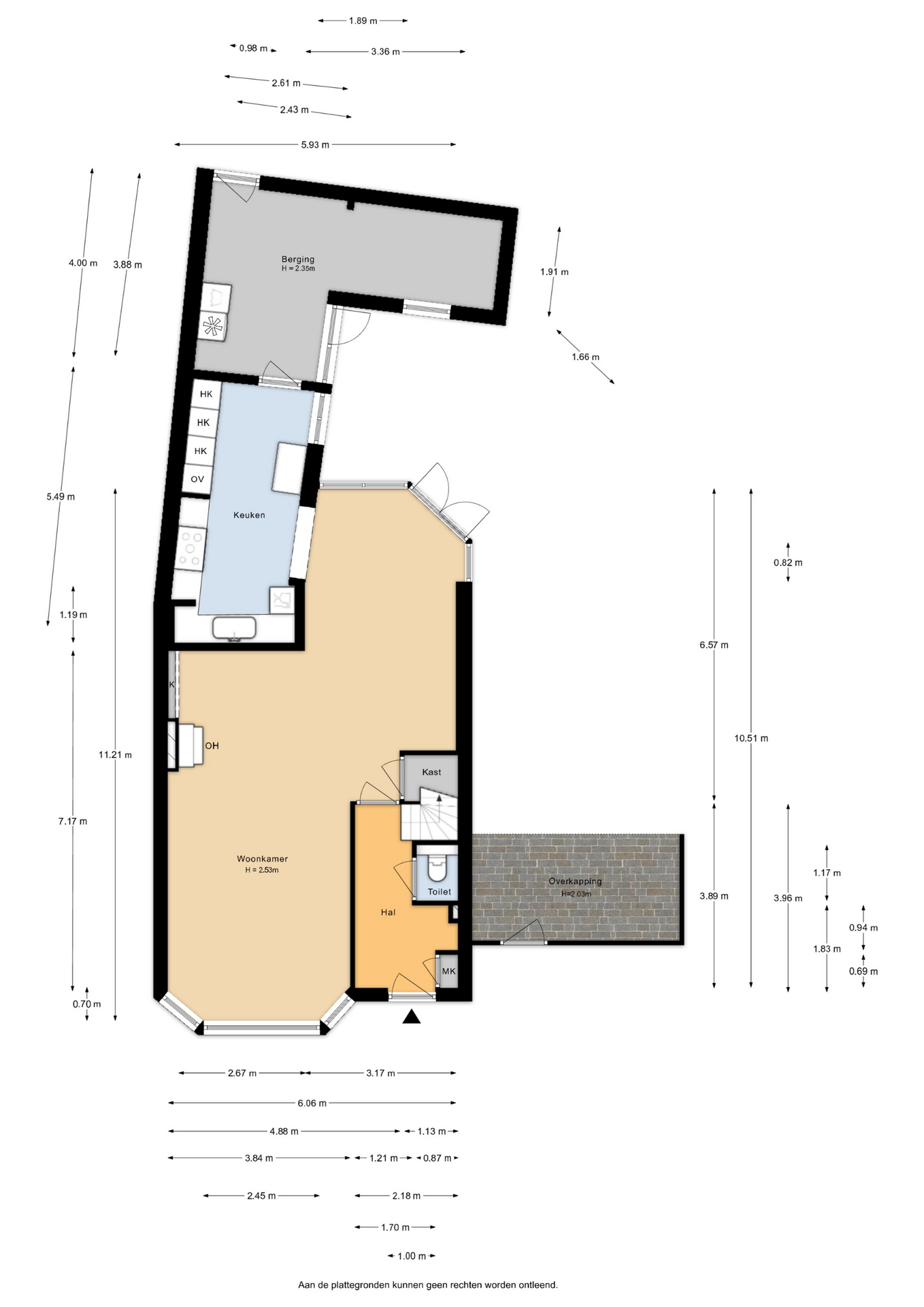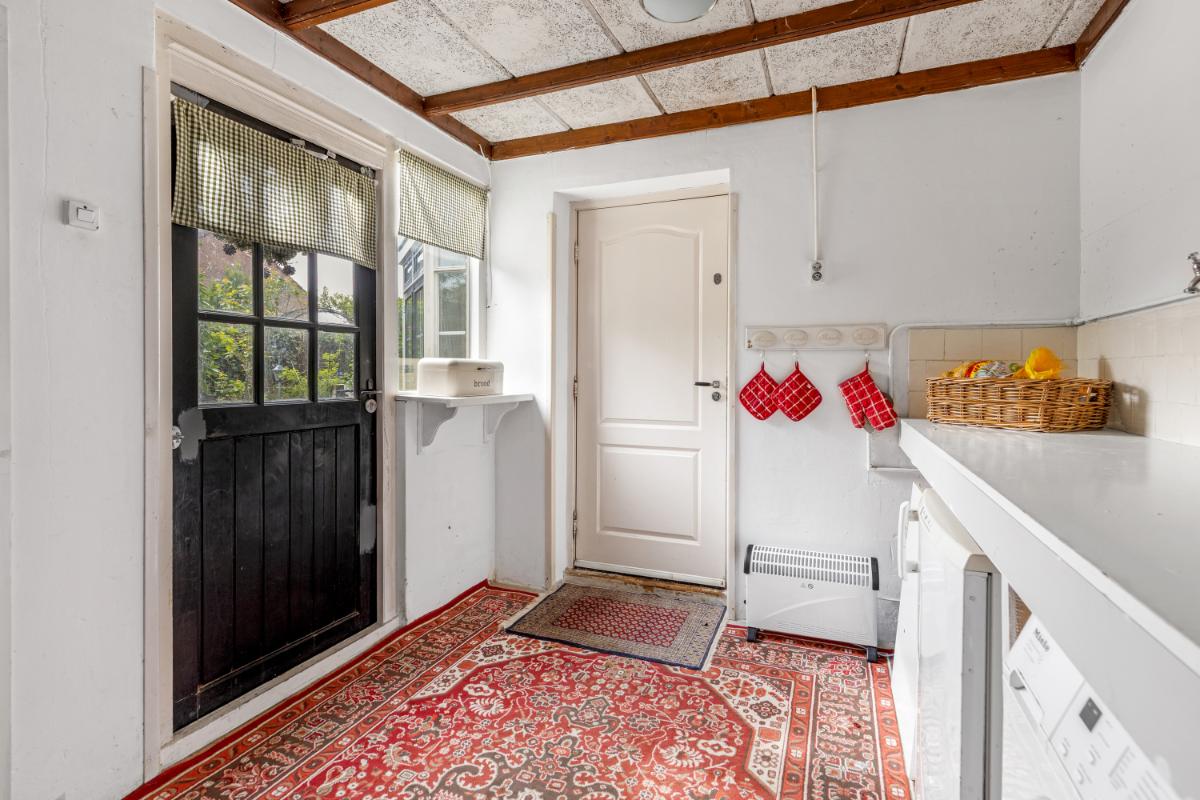 De aangrenzende berging biedt voldoende plaats voor de witgoedaansluitingen en extra bergruimte voor bijvoorbeeld fietsen en voorraden.