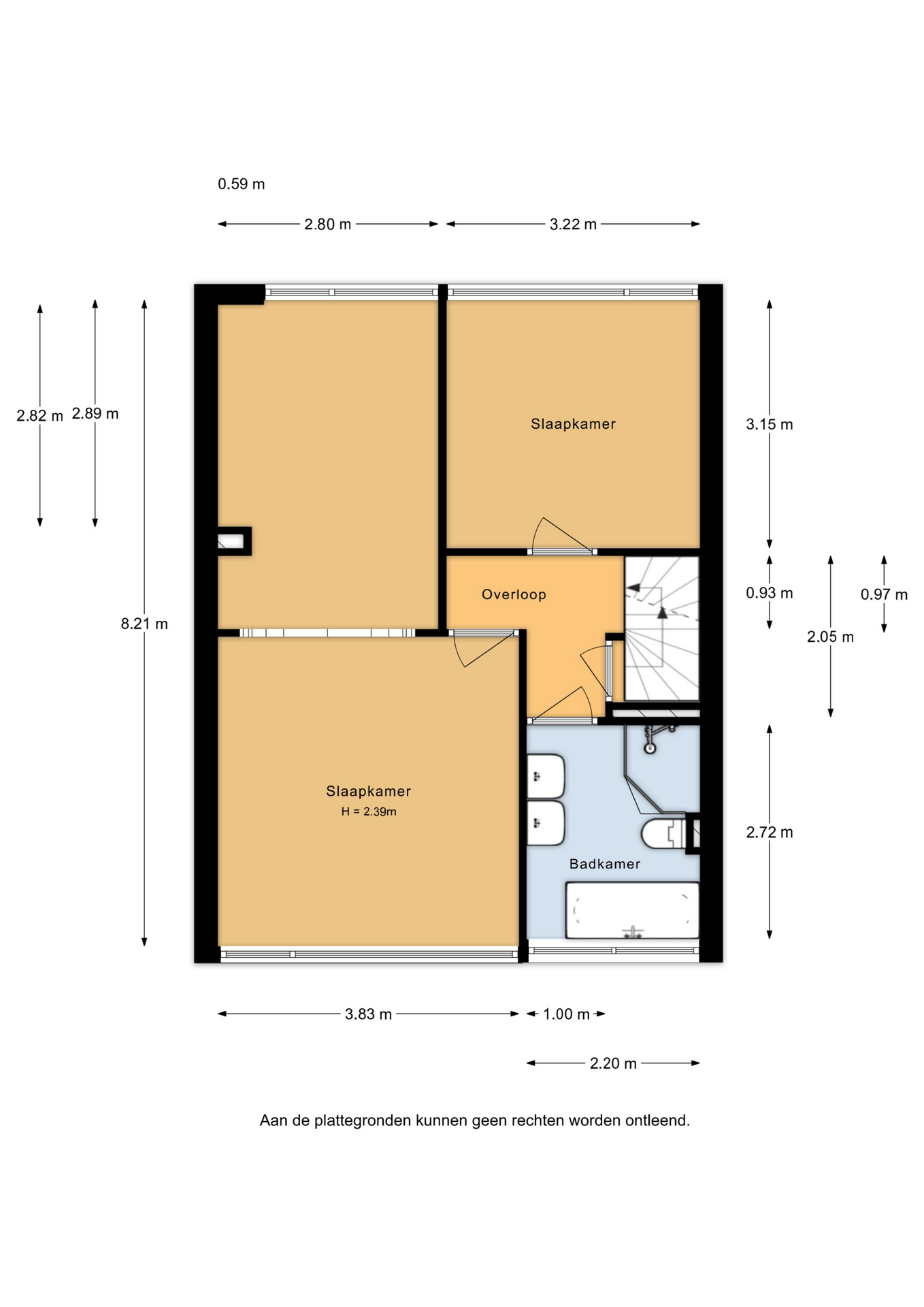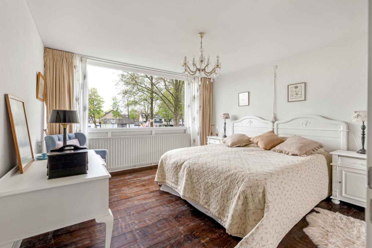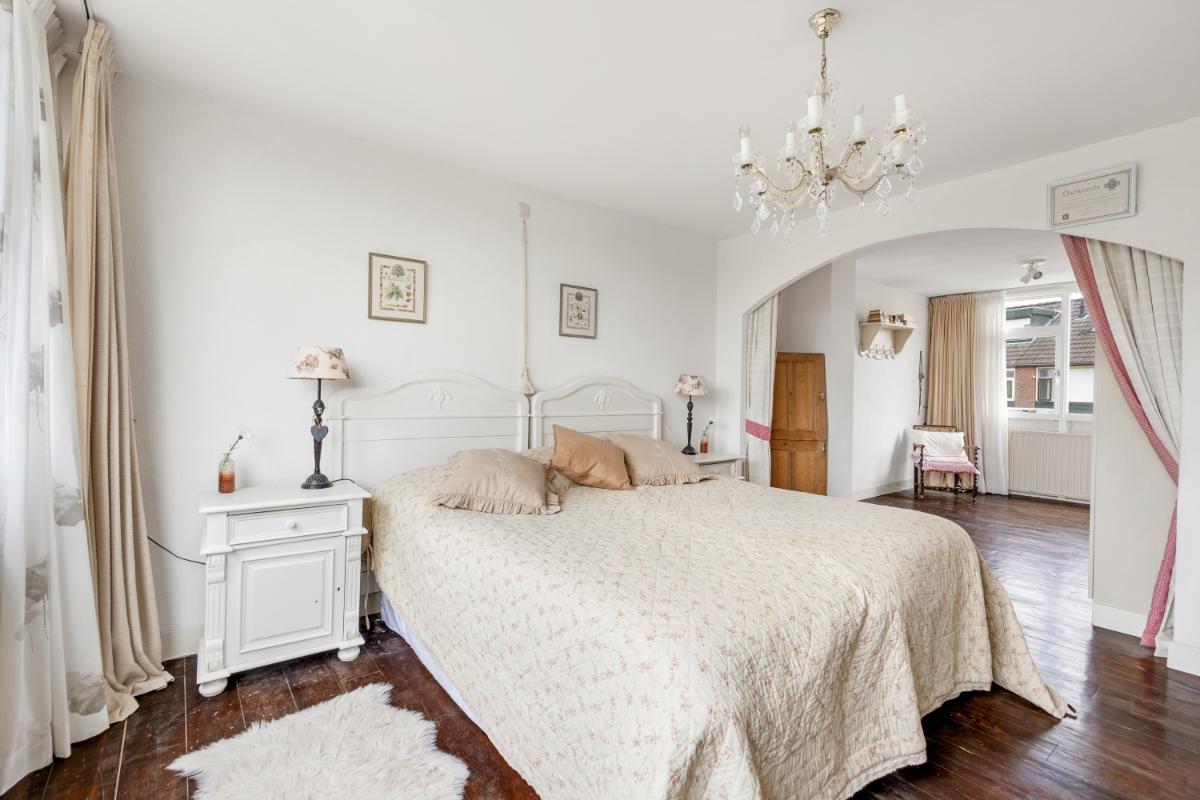 Eerste verdieping: op deze verdieping bevinden zich momenteel twee ruime slaapkamers en de badkamer. De grootste slaapkamer kan eenvoudig worden opgesplitst, waardoor een derde slaapkamer op deze verdieping te realiseren is.