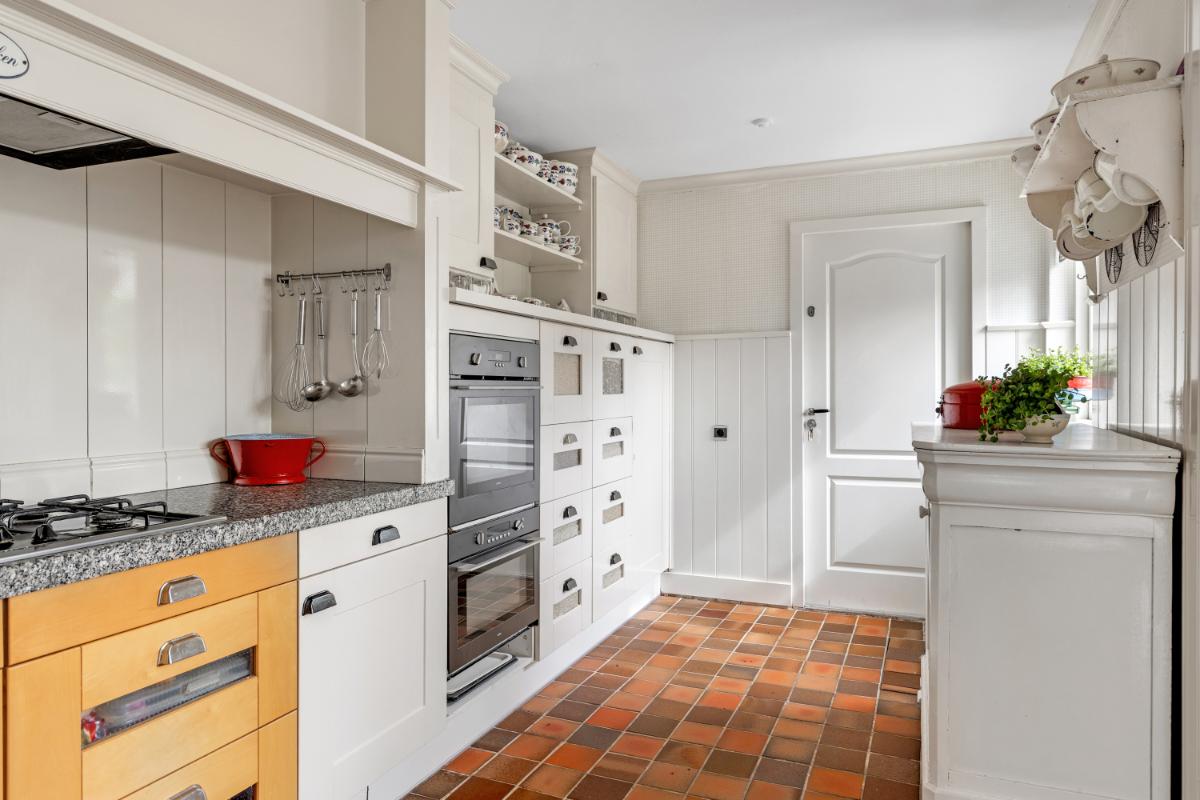 De half-open keuken beschikt over veel werk- en opbergruimte en houdt u in contact met uw aanwezige familie en/of vrienden. De keuken is compleet uitgerust met onder andere een combi-oven, oven, koelkast, 5-pits gasfornuis en vaatwasser.