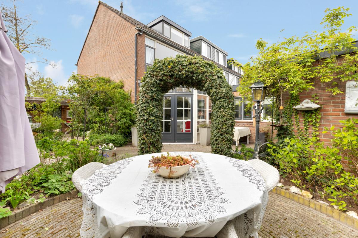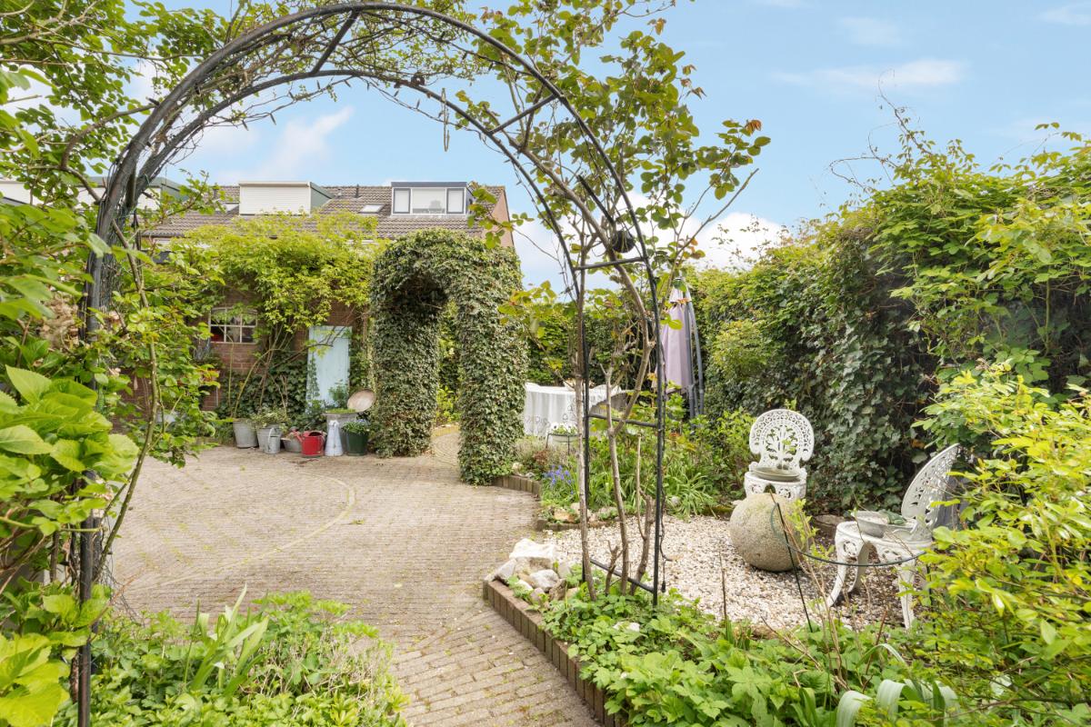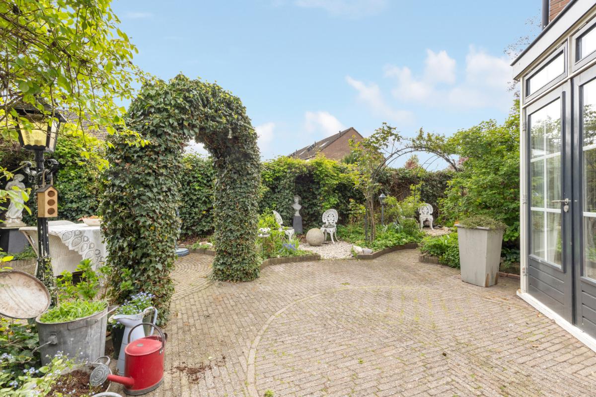 Tuin en buitenruimte: via de openslaande tuindeuren of de berging bereikt u de fraai aangelegde tuin. De tuin beschikt over meerdere zit- en eethoeken, waardoor u op elk moment van de dag van de zon kunt genieten. De tuin is verzorgd aangelegd met sierbestrating, pergola’s en een bordes met beplanting. Daarnaast is er een overkapping aan de zijkant van de woning, waar u zomers beschut kunt zitten.