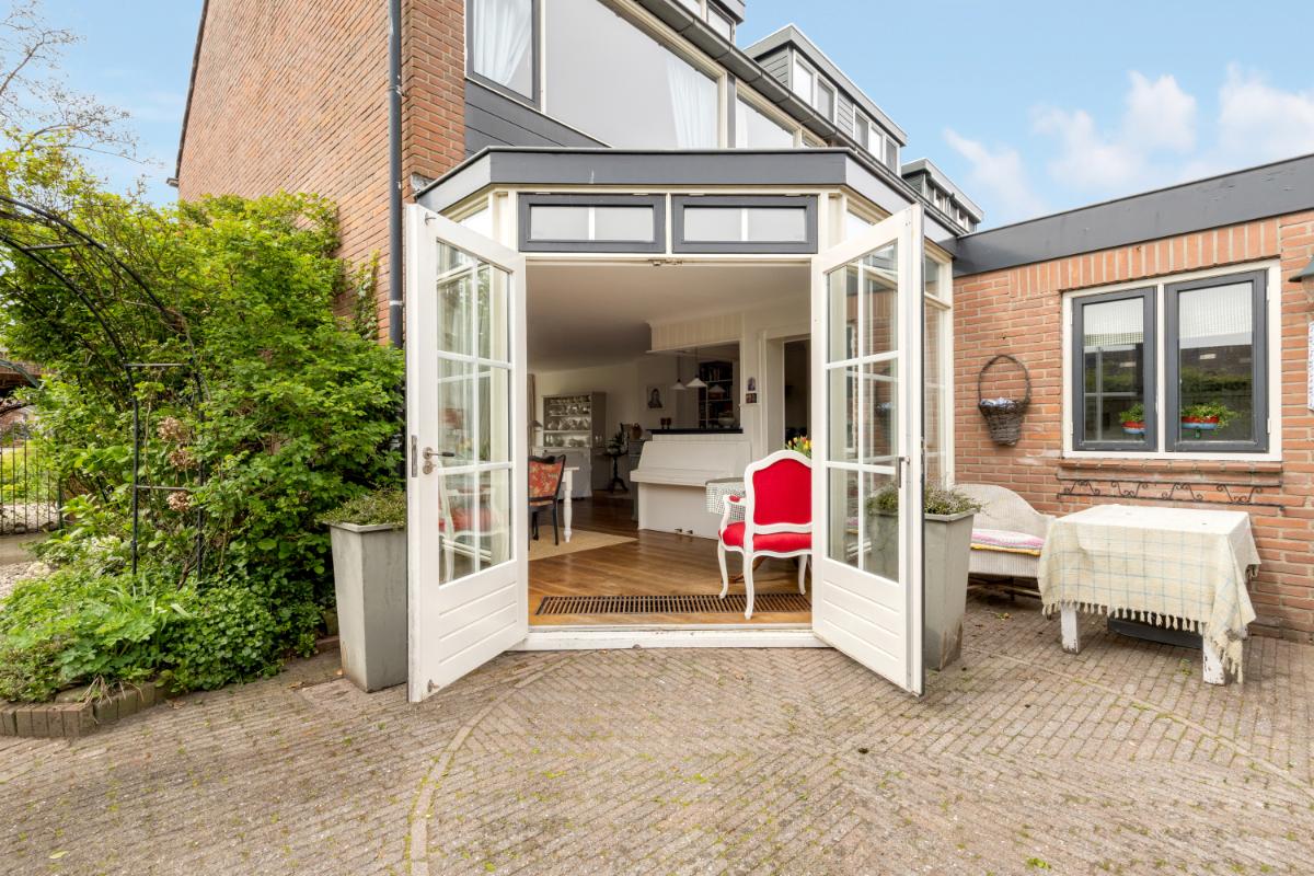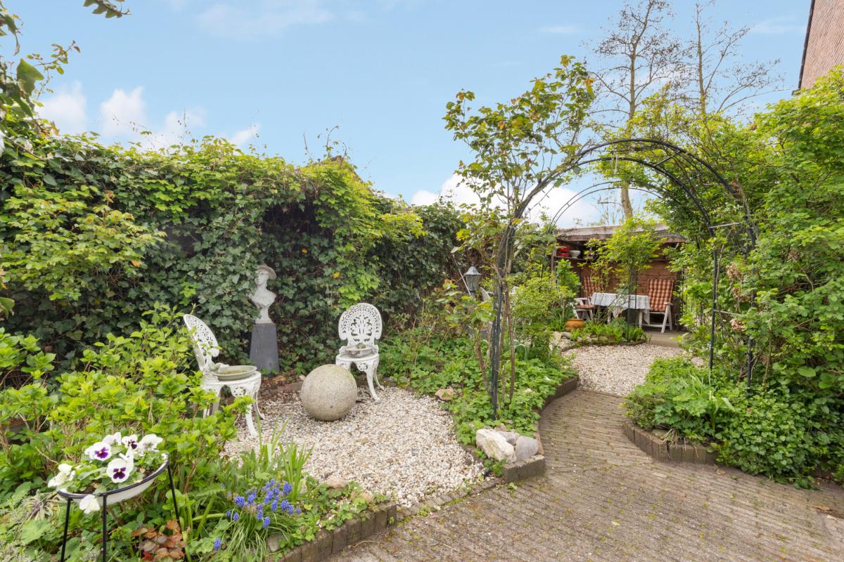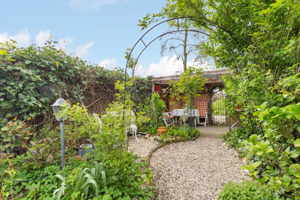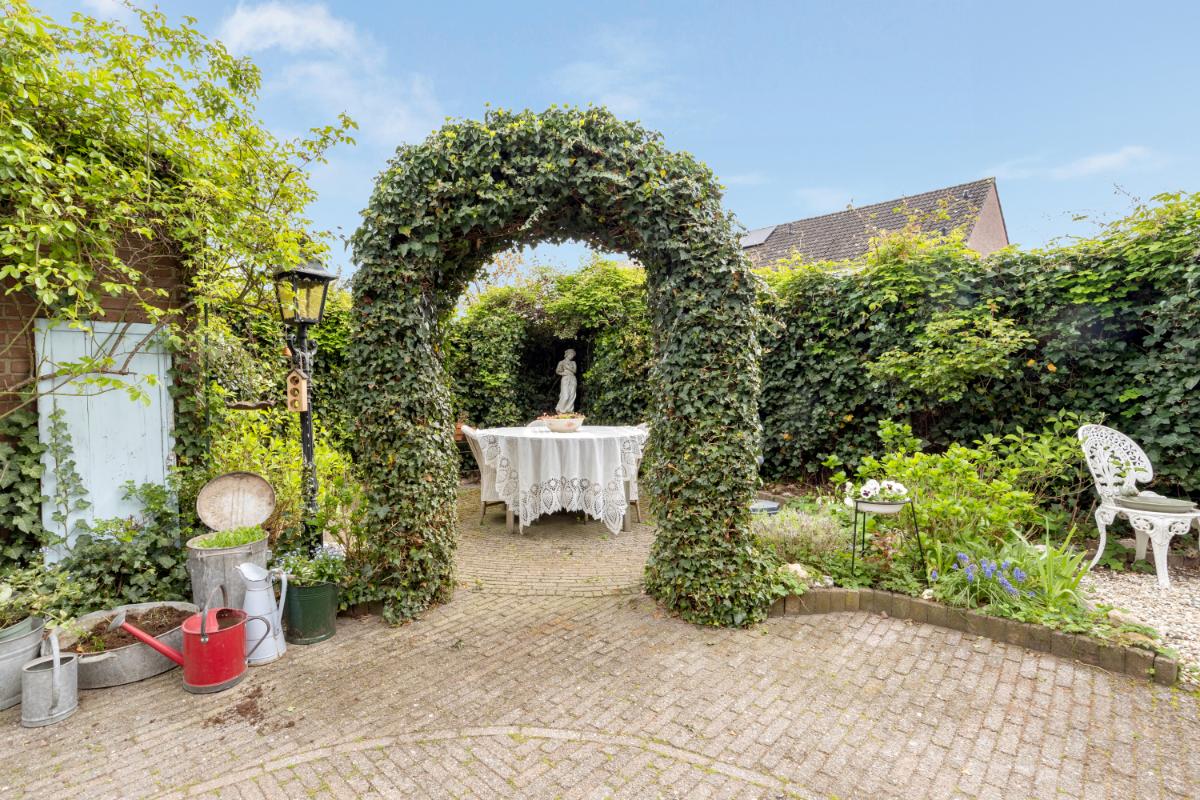 Tuin en buitenruimte: via de openslaande tuindeuren of de berging bereikt u de fraai aangelegde tuin. De tuin beschikt over meerdere zit- en eethoeken, waardoor u op elk moment van de dag van de zon kunt genieten. De tuin is verzorgd aangelegd met sierbestrating, pergola’s en een bordes met beplanting. Daarnaast is er een overkapping aan de zijkant van de woning, waar u zomers beschut kunt zitten.
