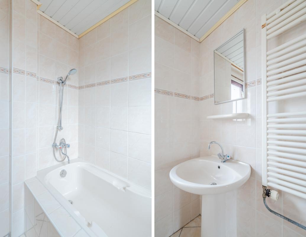 1e Verdieping: overloop, 3 slaapkamers waarvan twee aan de achterzijde van de woning. Alle slaapkamers zijn voorzien van een vaste kast. De eenvoudige badkamer is uitgerust met een ligbad met douchefaciliteit en wastafel.