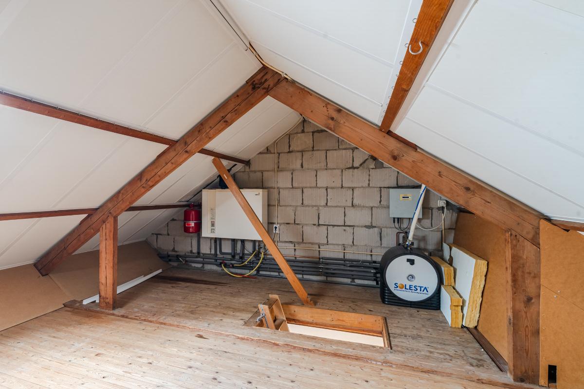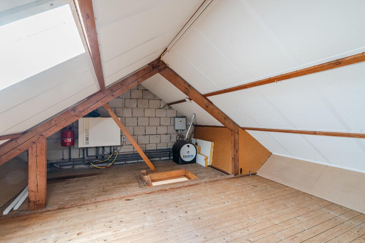2e Verdieping: Via een vlizotrap op de overloop bereikt u de vliering, welke is voorzien van een klein dakraam. Hier bevindt zich de CV installatie (Nefit, 1994), zonneboiler en de omvormer voor de 8 zonnepanelen. Het dak is na-geïsoleerd en heeft een nokhoogte van ca 2,20 m.