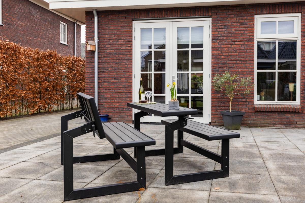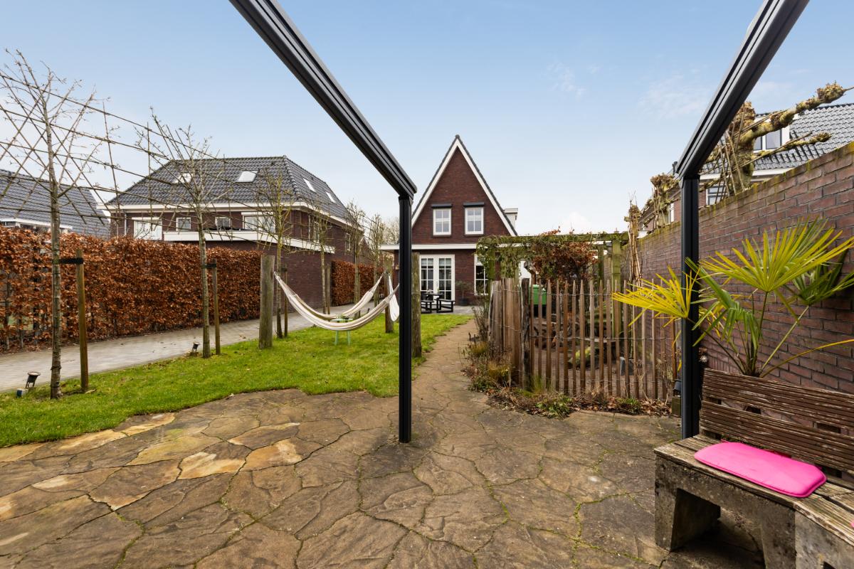 Buitenruimte: de tuin is verzorgd en biedt volop privacy. Achterin staat de royale garage met verdieping, ideaal voor opslag, hobby of het stallen van fietsen en gereedschap. Aansluitend ligt de sfeervolle tuinkamer, compleet met houtkachel, toilet en wateraansluiting. Een heerlijke plek om tot in de late uurtjes te genieten, ongeacht het seizoen. De tuin is aangelegd met diverse terrassen, een gazon met fruitleibomen, een vrijstaande overkapping en een ren voor kleine dieren.