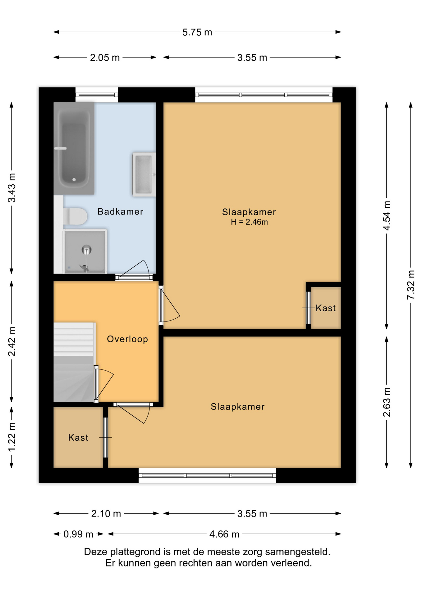 Eerste verdieping Op de eerste etage bevinden zich twee royale slaapkamers, beide voorzien van vaste kasten. De ruime badkamer is compleet ingericht met een ligbad, aparte douche, een tweede toilet en een wastafel.