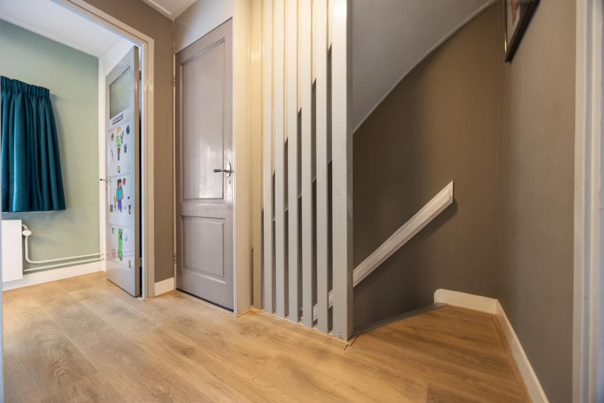 Begane grond Via de entree betreedt u de hal met het modern verbouwde toilet (2025) en de trap naar boven, die volledig is bekleed met hout en voorzien van sfeervolle trapverlichting. De ruime en lichte woonkamer is over de volle breedte uitgebouwd en valt op door de brede lichtstraat in het midden, die de ruimte een prachtige natuurlijke lichtinval geeft. Zowel vanuit de woonkamer als vanuit de moderne open keuken heeft u direct toegang tot de tuin. De keuken is uitgerust met diverse inbouwapparatuur, waaronder een vaatwasser (2021), combi-oven en koel-vriescombinatie.