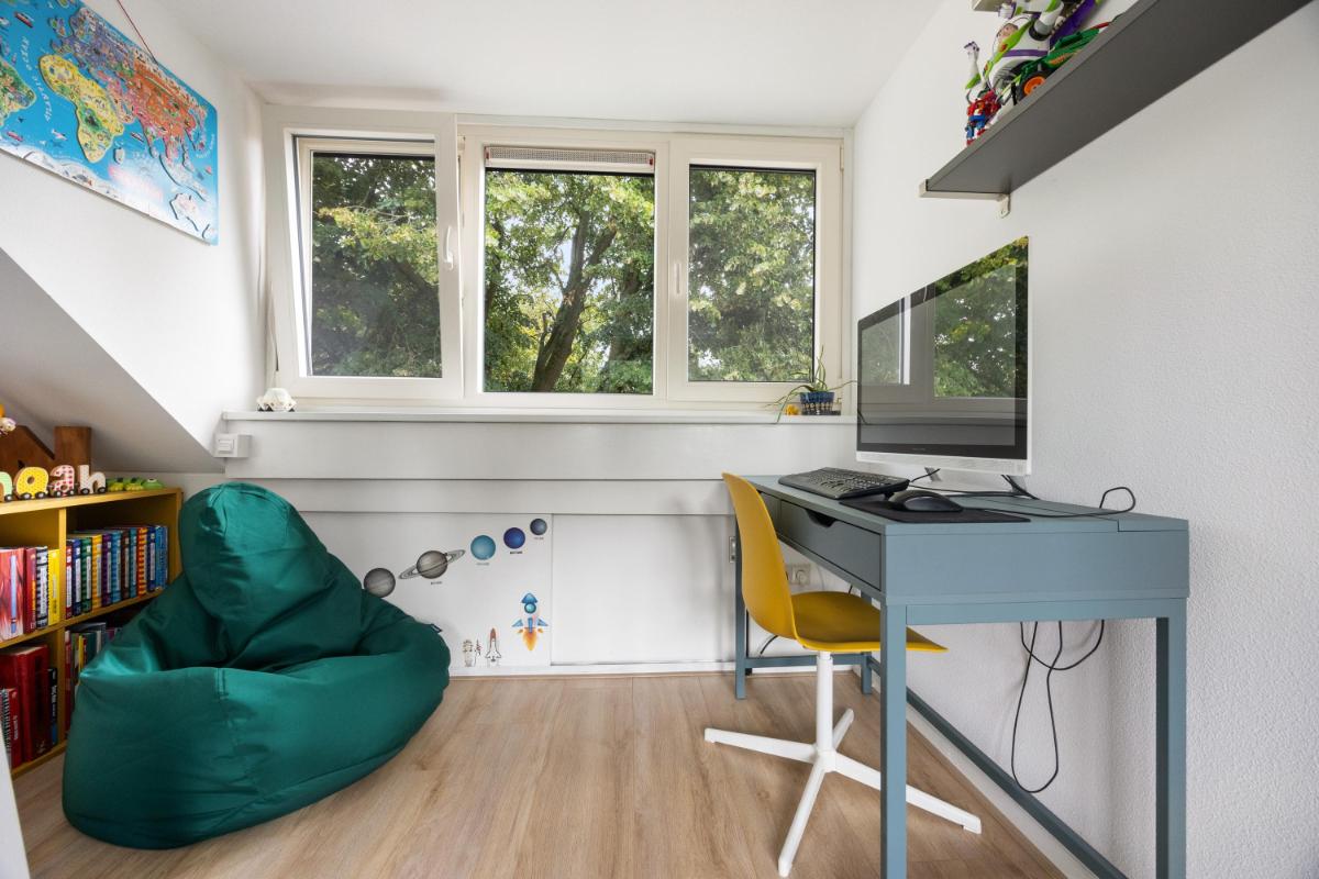 Tweede verdieping De lichte voorzolder, met groot Velux dakraam, biedt volop mogelijkheden als werk- of studeerplek. Daarnaast beschikt deze verdieping over een ruime derde slaapkamer met dakkapellen aan beide zijden, wat zorgt voor extra lichtinval en een aangenaam ruimtelijk gevoel. Verder vindt u hier een aparte wasruimte en een stookruimte met de CV-installatie.