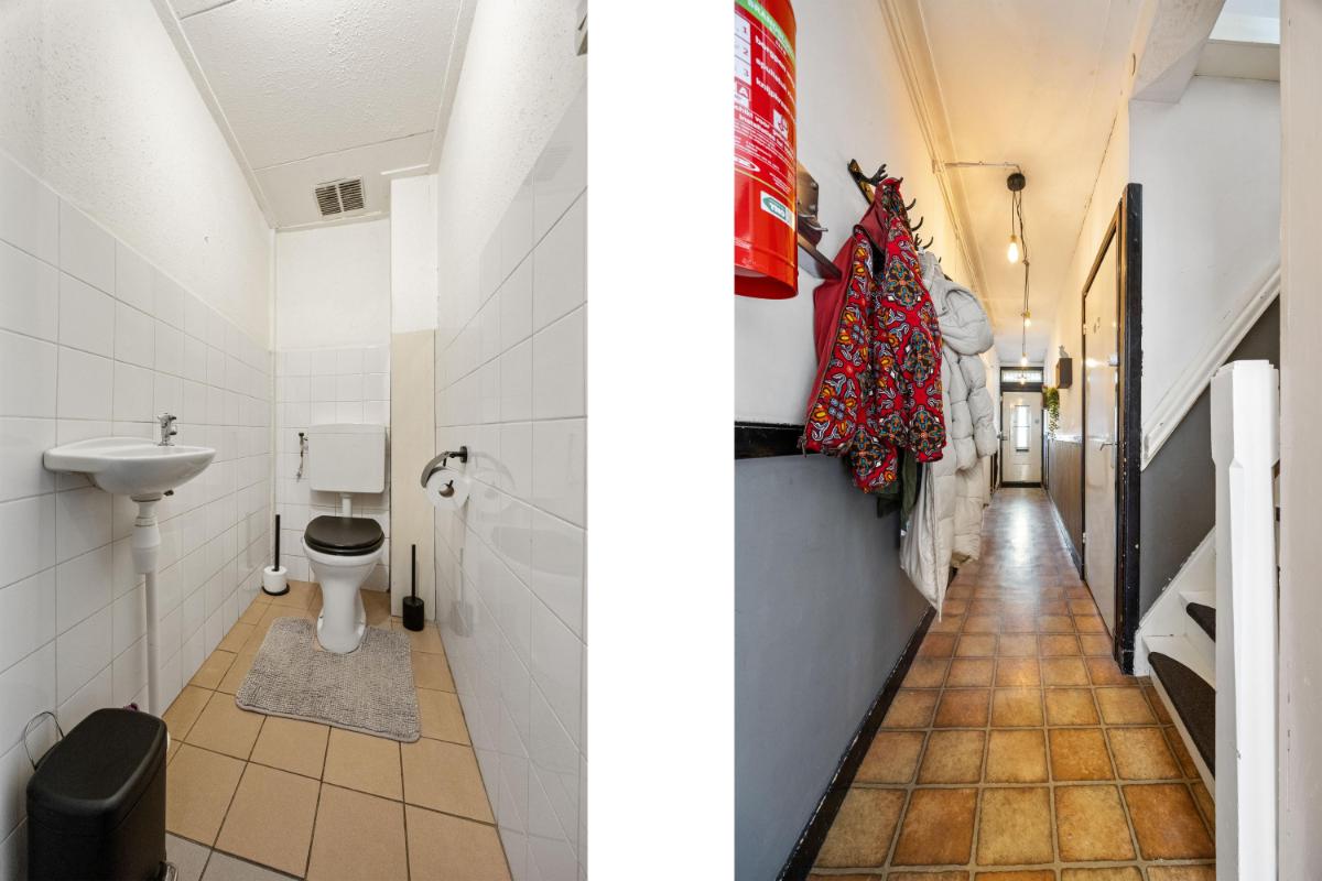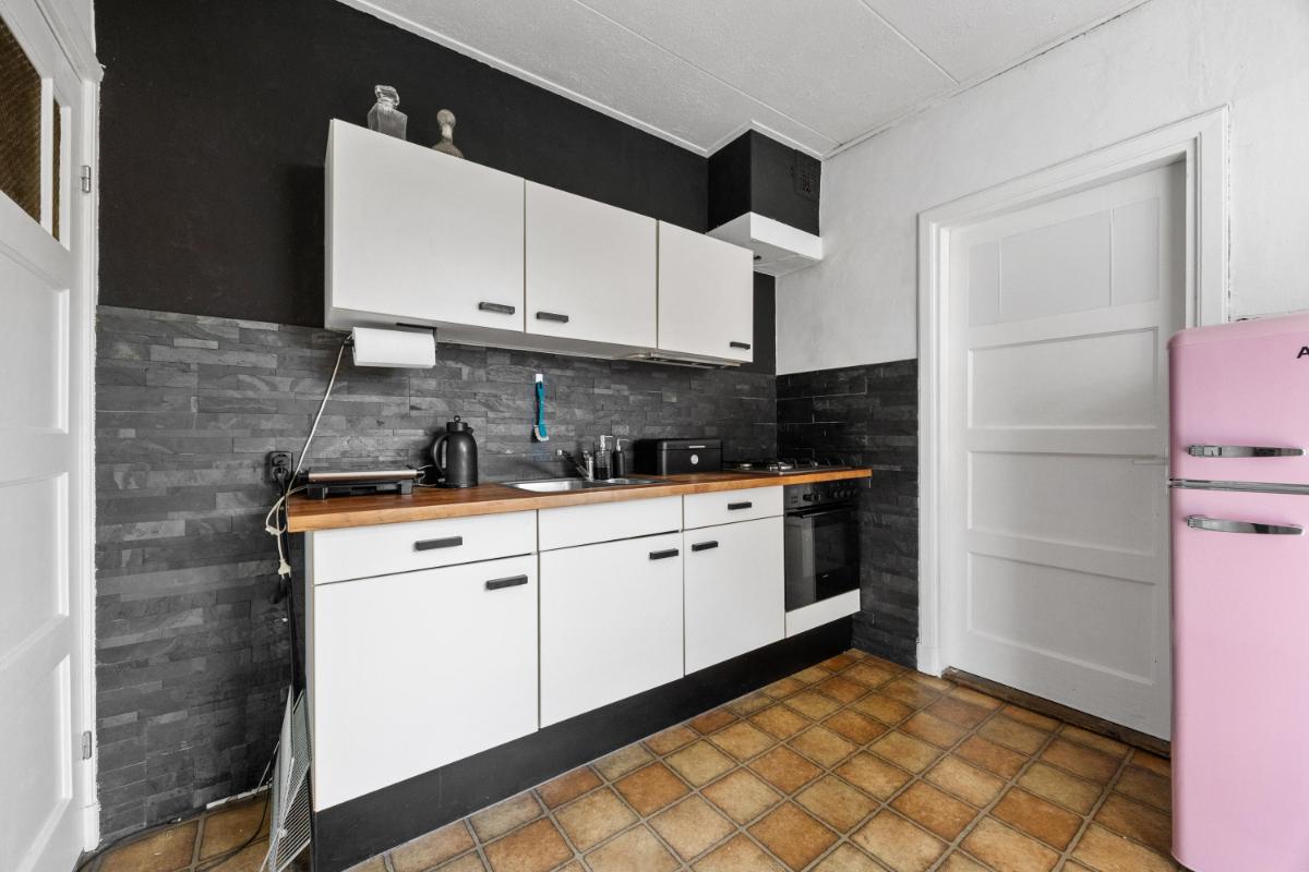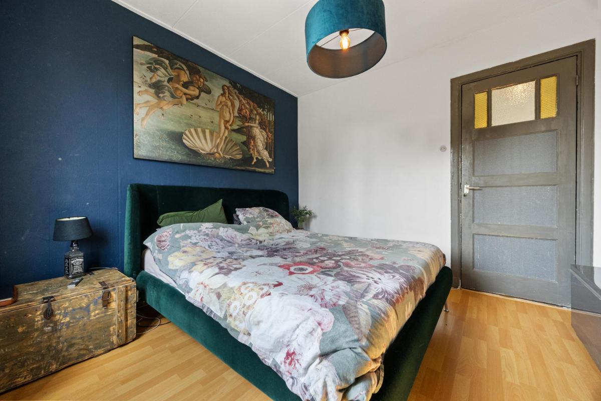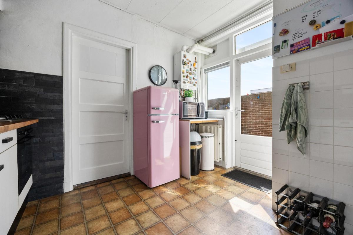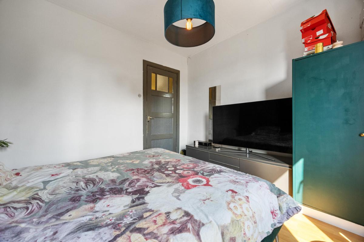De dichte keuken is netjes en functioneel, en geeft toegang tot de slaapkamer welke thans in gebruik is als werkkamer. Vanuit de keuken loop je zo de achtertuin in — ideaal op zomerse dagen of als je even snel buiten wilt zitten. De woning telt in totaal vier kamers, waarvan één op dit moment wordt gebruikt als slaapkamer (op de 1e verdieping). De overige kamers zijn ideaal als thuiswerkplek, slaap-logeerkamer of hobbyruimte. Dankzij de ruime opzet en rechte wanden kun je de woning flexibel inrichten naar jouw wensen. De badkamer gelegen op de 1e verdieping is compact en functioneel, met een douche, wastafel en toilet. Ook hier ligt een mooie kans om te moderniseren naar je eigen smaak.
