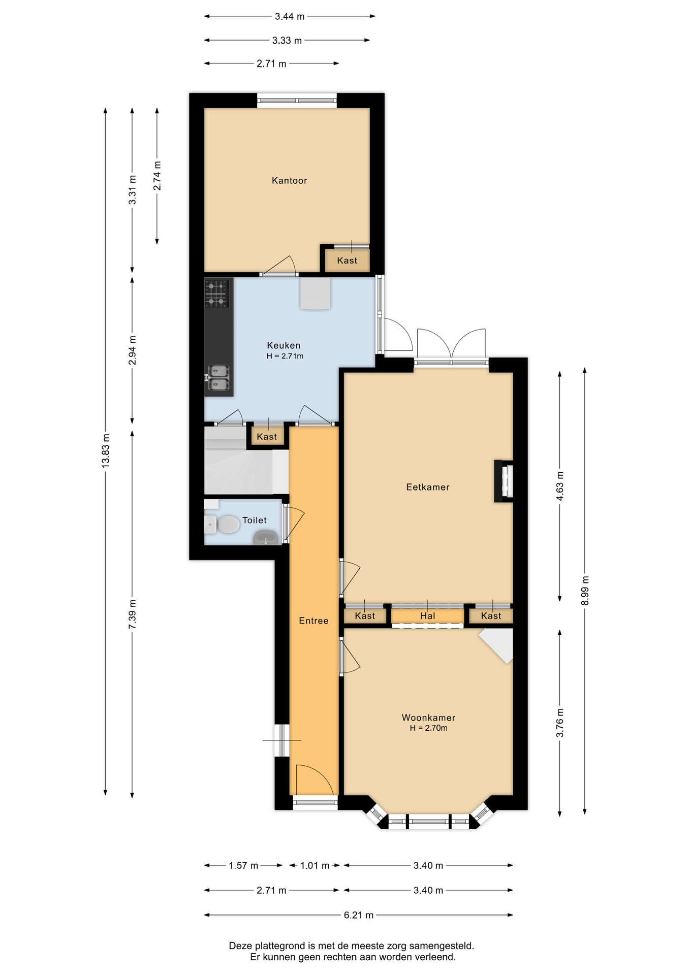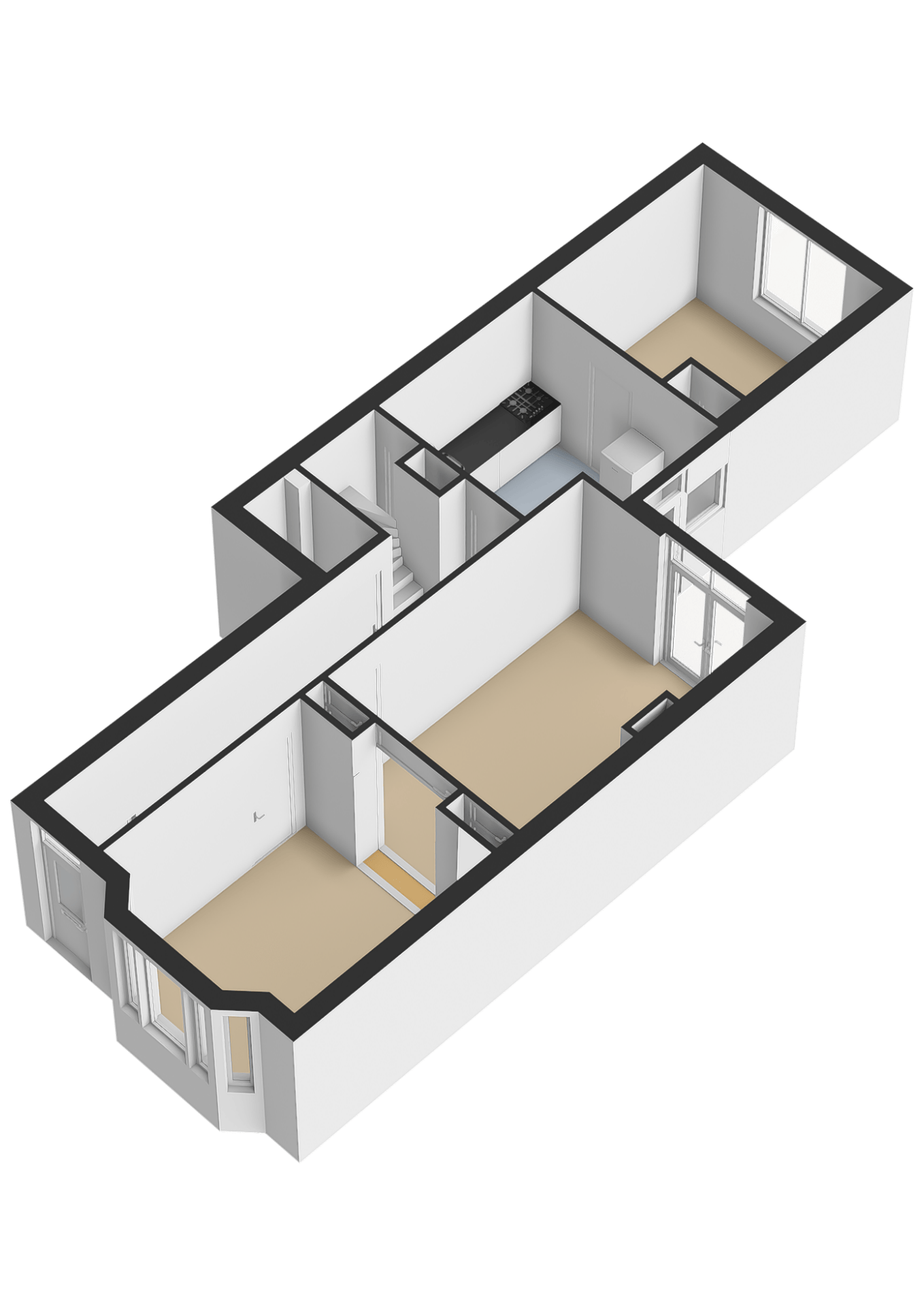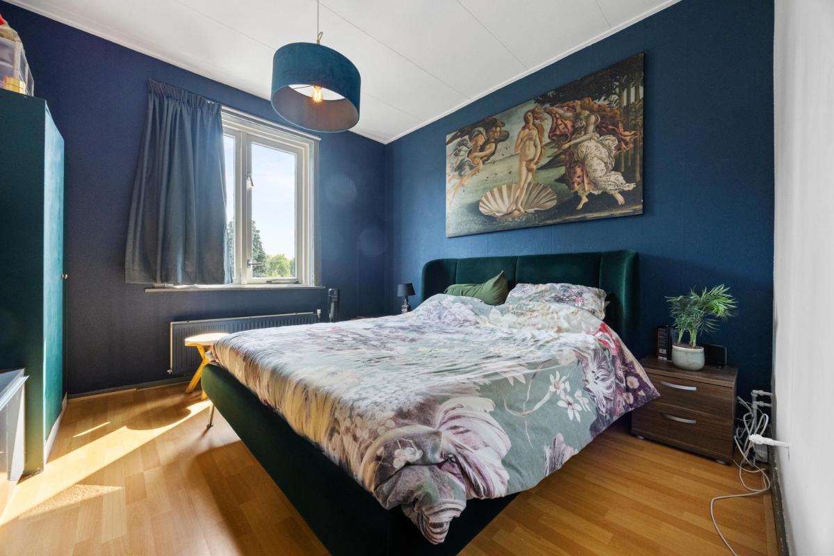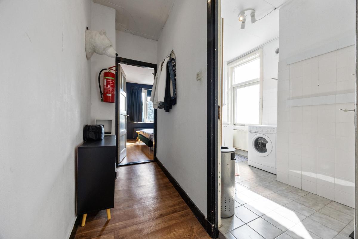 De dichte keuken is netjes en functioneel, en geeft toegang tot de slaapkamer welke thans in gebruik is als werkkamer. Vanuit de keuken loop je zo de achtertuin in — ideaal op zomerse dagen of als je even snel buiten wilt zitten. De woning telt in totaal vier kamers, waarvan één op dit moment wordt gebruikt als slaapkamer (op de 1e verdieping). De overige kamers zijn ideaal als thuiswerkplek, slaap-logeerkamer of hobbyruimte. Dankzij de ruime opzet en rechte wanden kun je de woning flexibel inrichten naar jouw wensen. De badkamer gelegen op de 1e verdieping is compact en functioneel, met een douche, wastafel en toilet. Ook hier ligt een mooie kans om te moderniseren naar je eigen smaak.