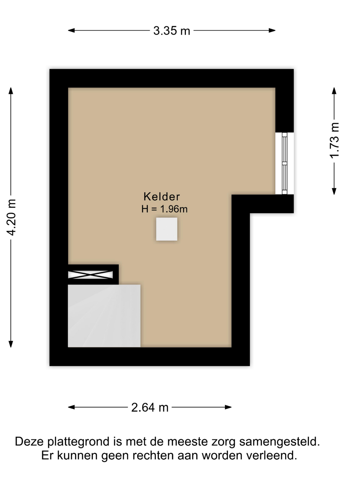 De kelder is thans in gebruik als hobbyruimte en is 12 m2 groot.