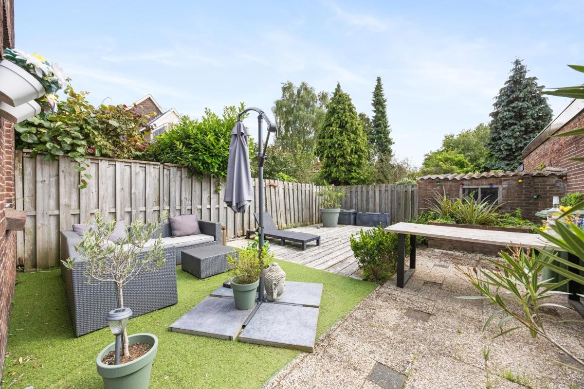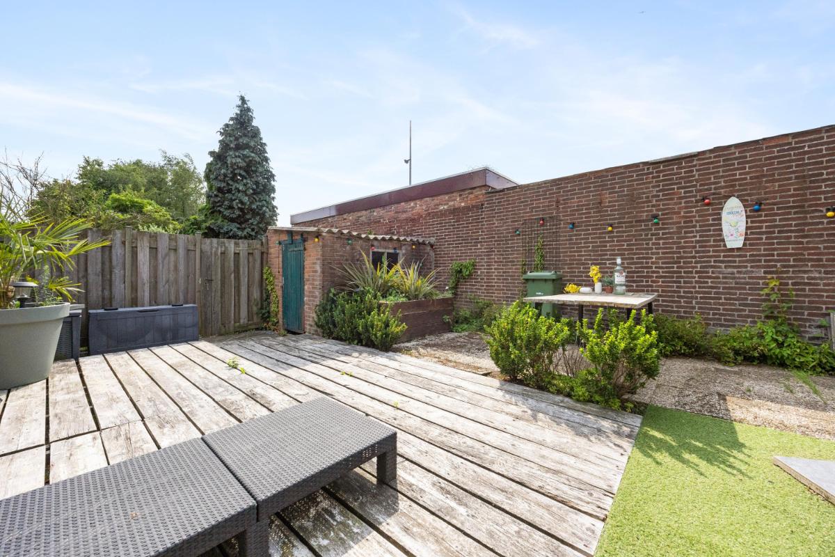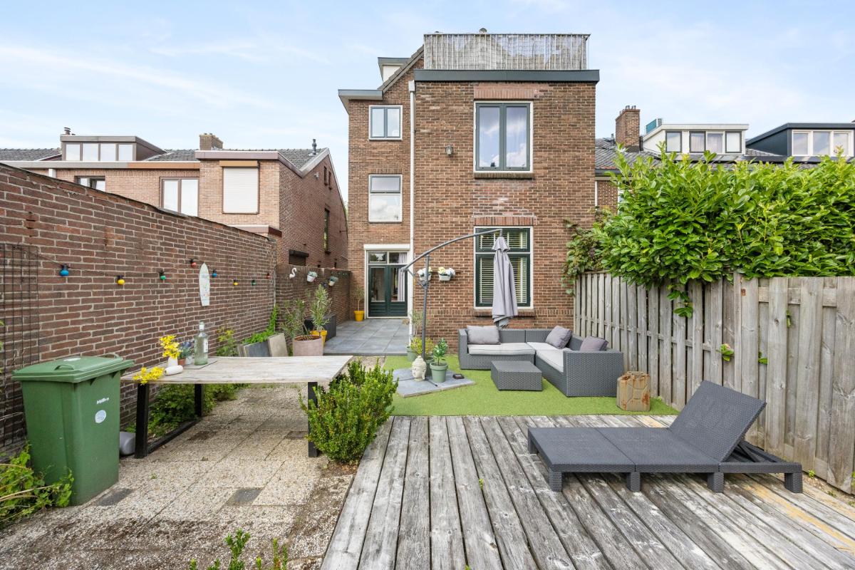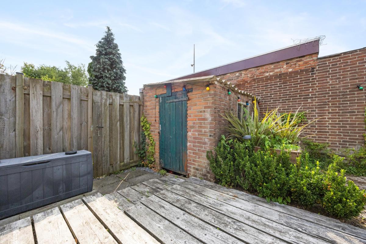 Zonnige tuin met berging en achterom Een groot pluspunt van deze woning is de eigen achtertuin vrijwel pal op het zuiden gelegen! Deze is onderhoudsvriendelijk aangelegd en biedt volop mogelijkheden voor een gezellige zithoek, buiteneten of een kleine stadstuin. De ligging zorgt voor zon in de ochtend, middag en avond – perfect om te ontspannen na een werkdag. Achterin de tuin staat een vrijstaande stenen berging van ca. 5 m², ideaal voor fietsen, tuingereedschap of opslag. De tuin is bovendien bereikbaar via een achterom. Aan de overzijde van deze benedenwoning heb je vrij uitzicht op een fraai aangelegd parkje met bankjes en een speelplek voor de kinderen!