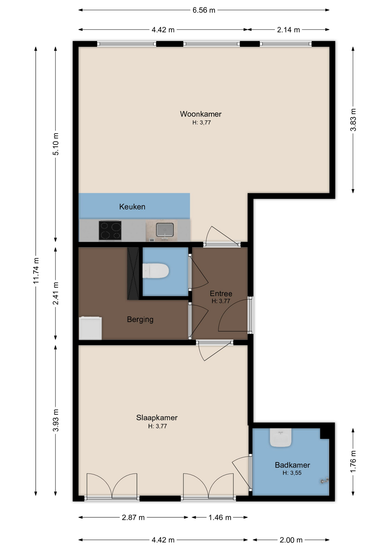 De indeling is als volgt: Entree, royale en sfeervolle woonkamer voorzien van een stijlvol houten lamelparket, met aansluitend een open luxe keuken. De keuken is compleet uitgerust met diverse inbouwapparatuur, waaronder een combi-oven, koelkast, vaatwasser, 5-pits gaskookplaat en een afzuigschouw, afgewerkt met een hoogwaardig natuurstenen aanrechtblad en spoelbak.