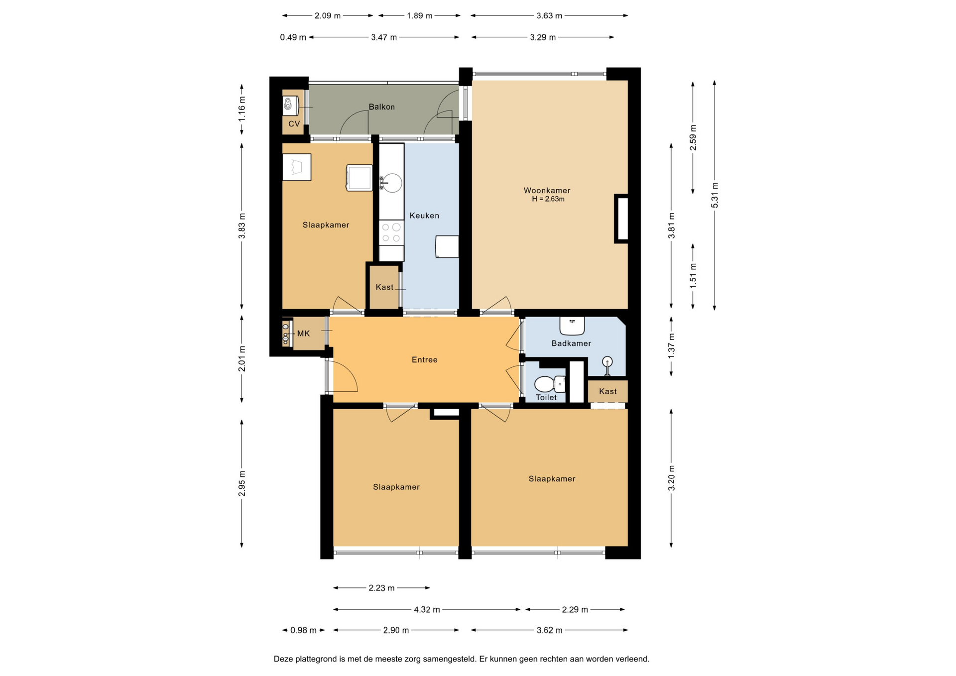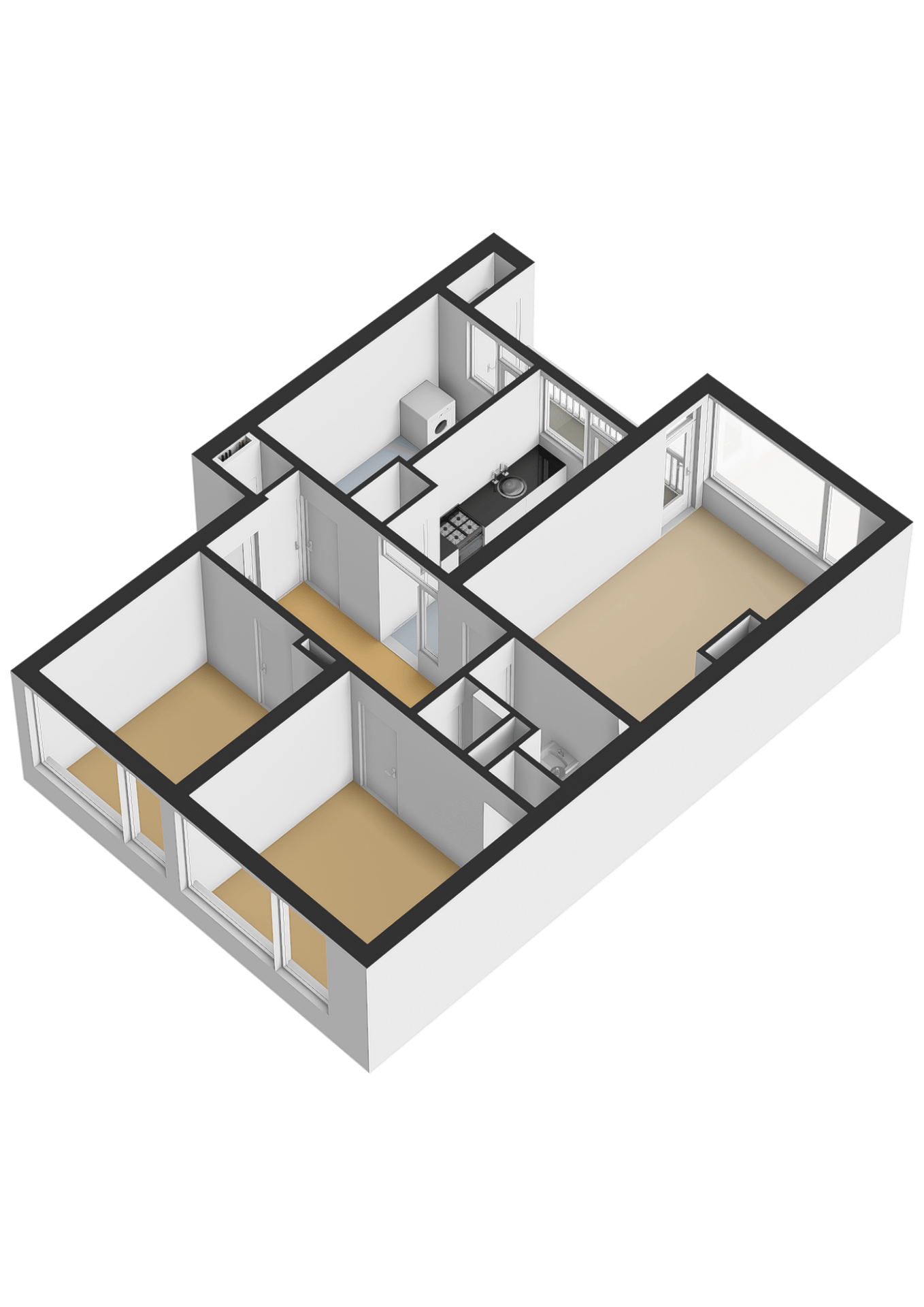 Het appartement heeft een lichte woonkamer, drie ruime slaapkamers en een net afgewerkte keuken met ingebouwd gasfornuis, oven en afzuigkap. Vanuit de keuken stap je het zonnige balkon op het westen op, waar je kunt genieten van de middag- en avondzon. De badkamer is voorzien van een douche en wastafel en in het souterrain bevindt zich een handige berging.