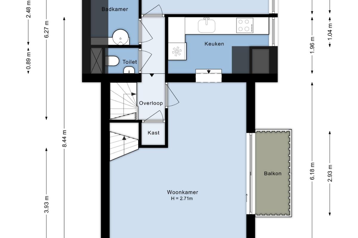 1e Etage Overloop met een praktische (garderobe)kast. Het moderne toilet (grijs/wit) is voorzien van een fonteintje. De nette badkamer beschikt over een douchecabine, rond meubel met waskom, verwarmde spiegel en mechanische ventilatie. De ruime (ouder)slaapkamer is voorzien van een dakkapel en vaste kast. Sfeervolle woonkamer met schuifpui naar het zonnige balkon op het zuid-oosten. De half open keuken in hoekopstelling is uitgerust met een keramische kookplaat, combi-magnetron/oven en dakkapel. Vanuit de woonkamer leidt een vaste trap naar de tweede verdieping.