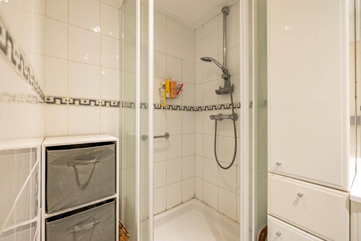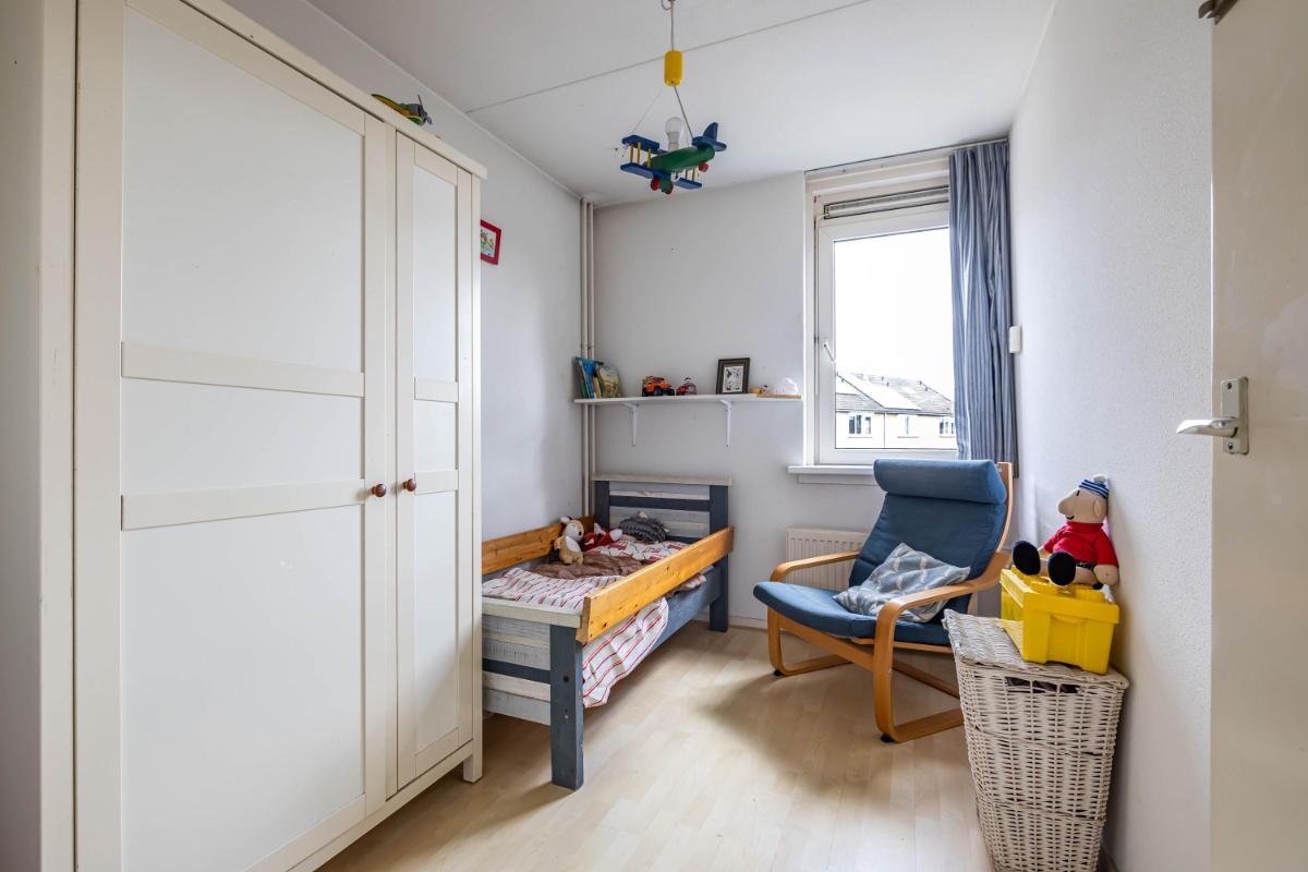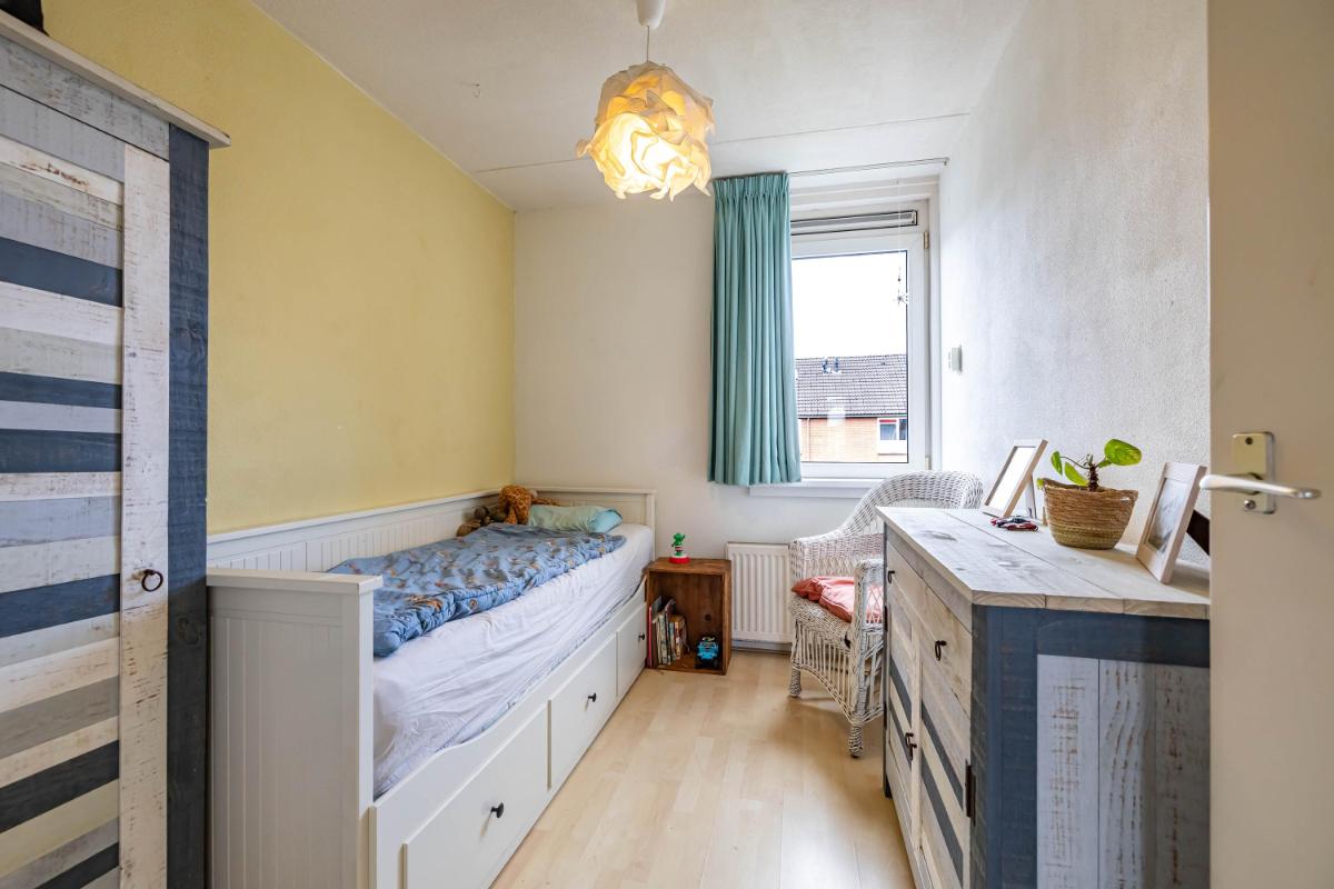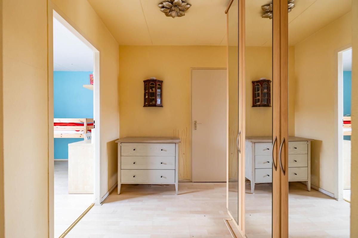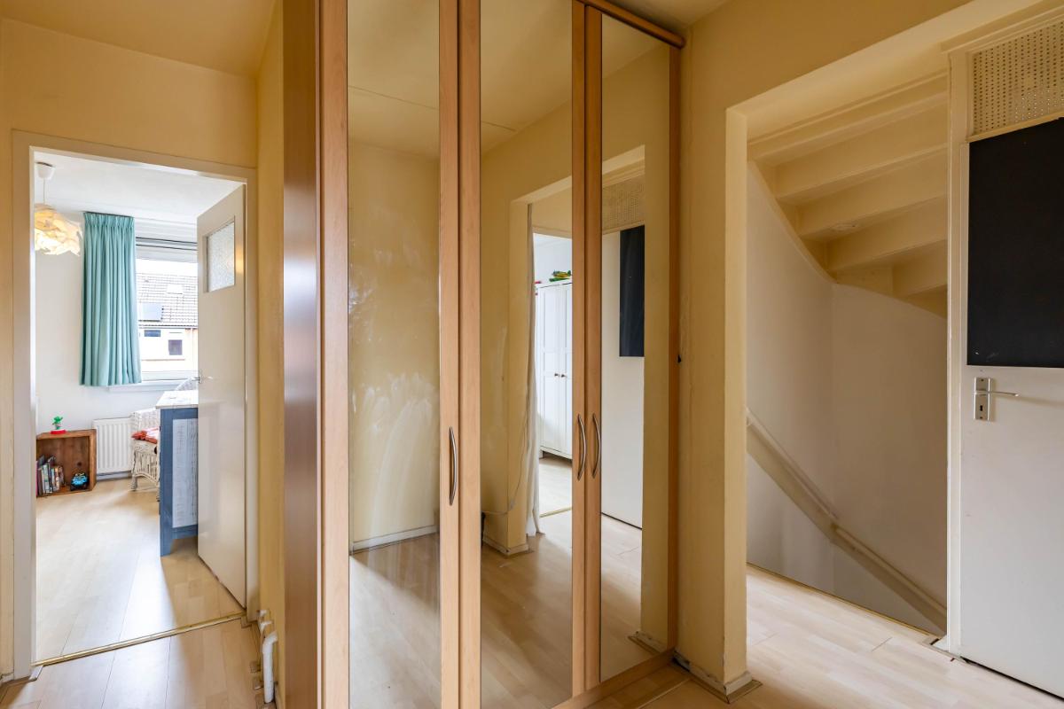 Eerste verdieping Op de eerste verdieping geeft de overloop toegang tot vier slaapkamers en de badkamer. De zeer ruime overloop zorgt voor een prettige, open verbinding tussen de vertrekken. De master bedroom heeft een oppervlakte van circa 14 m² en is daarmee van goed formaat. Zowel op de master bedroom als op de overloop zijn vaste kasten aanwezig voor meer dan genoeg bergruimte. De badkamer is volledig betegeld en verzorgd uitgevoerd met een douchecabine, wastafelmeubel en toilet. Tevens is de badkamer voorzien van mechanische ventilatie (alleen in de badkamer). De badkamer kan nog prima gebruikt worden en kan indien gewenst gemoderniseerd worden naar de woonwensen van de huidige tijd. Via de overloop is tevens de trapopgang naar de tweede verdieping bereikbaar. Deze trapopgang is afgesloten middels een deur wat de warmte verdeling ten goede komt.