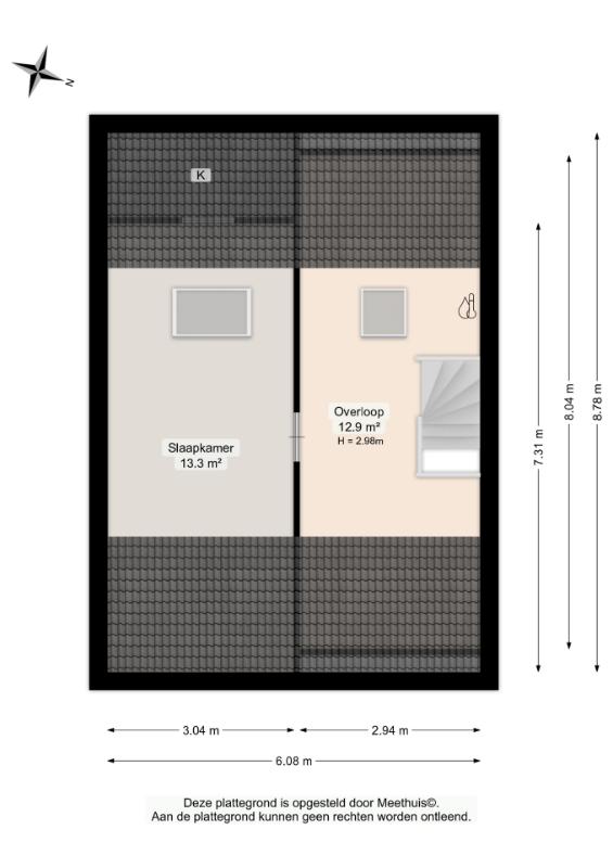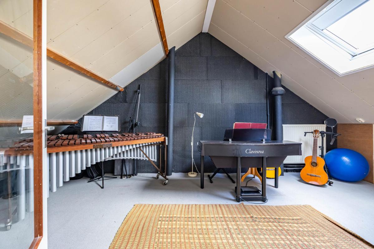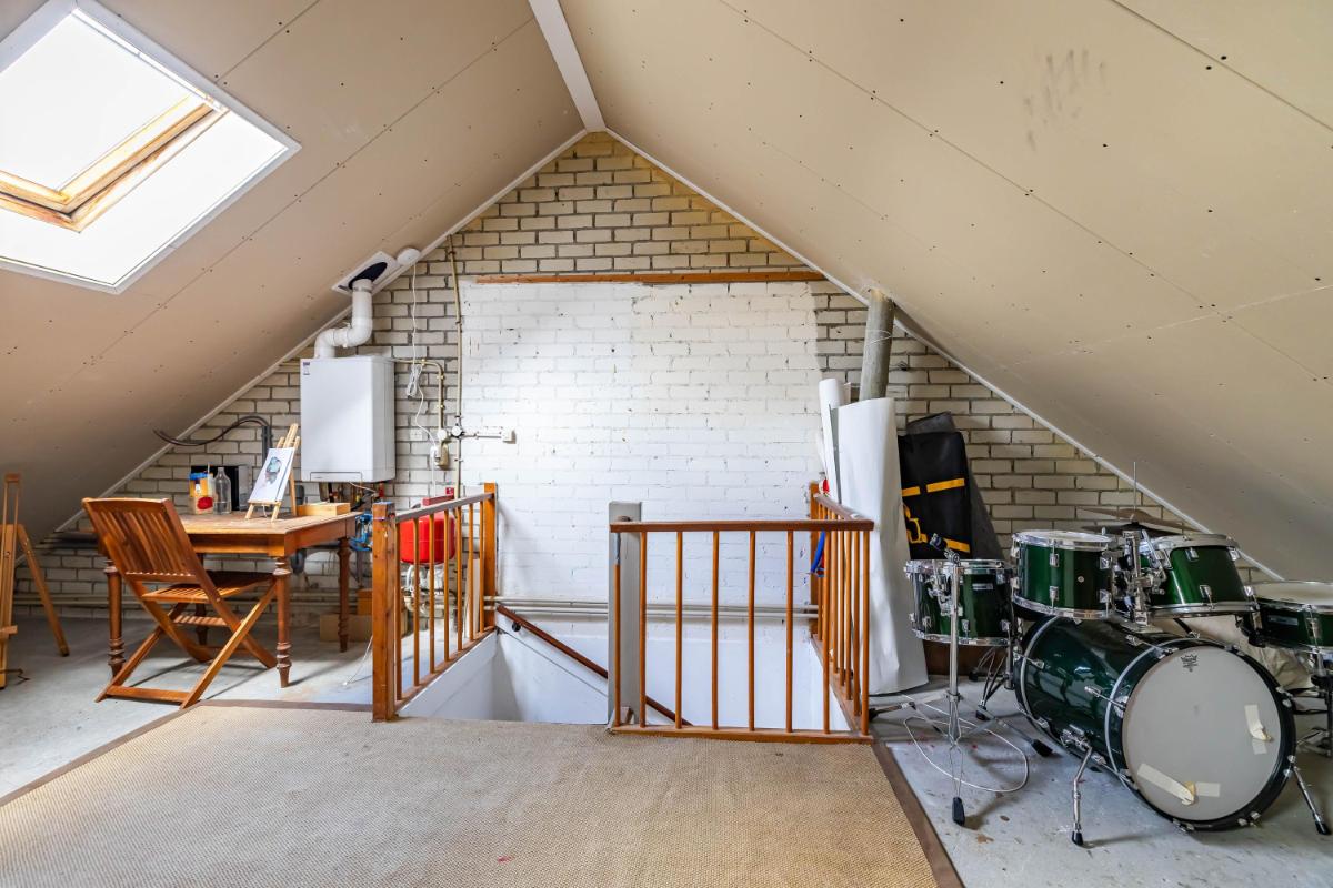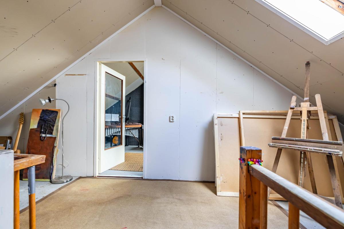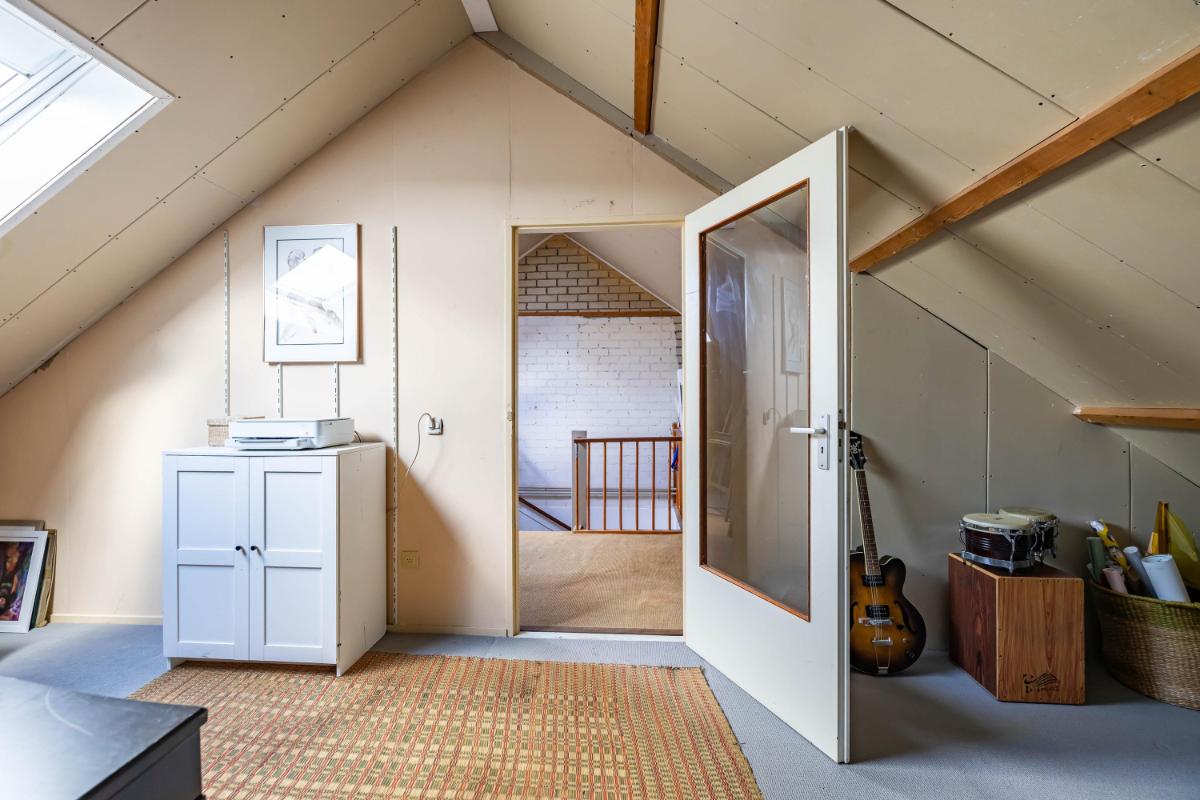 Tweede verdieping De vaste trap leidt naar de royale zolderverdieping van maar liefst circa 31 m². Hier kom je op een ruime overloop waar de cv-ketel is opgesteld. De overloop is aangenaam licht dankzij een dakraam en biedt daarnaast voldoende ruimte om extra opbergkasten te realiseren. Op deze verdieping bevindt zich tevens een zeer ruime vijfde slaapkamer, eveneens voorzien van een dakraam, wat zorgt voor een prettige lichtinval. Het dak is geïsoleerd en afgewerkt met gipsplaten, waardoor de basis al op orde is en slechts een afwerklaag nodig is om het geheel naar eigen smaak te voltooien. De verdieping is netjes onderhouden, voelt bijzonder ruim aan en is multifunctioneel te gebruiken, bijvoorbeeld als extra slaapverdieping, werkruimte of hobbyruimte.