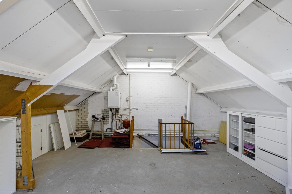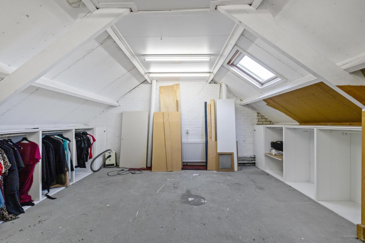 Deze verdieping biedt volop potentie: hier kunnen eenvoudig twee extra slaapkamers worden gerealiseerd door het plaatsen van dakkapellen. De cv-installatie bevindt zich eveneens op deze verdieping.