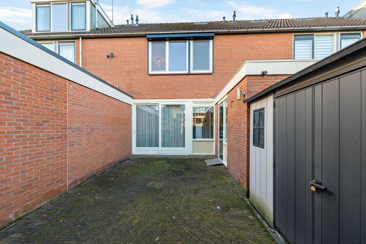 Tuin De onderhoudsvriendelijke achtertuin ligt op het oosten en is volledig bestraat. Dankzij de omsluiting met muren en schuttingen geniet je hier van veel privacy. De tuin is tevens achterom bereikbaar via een poort.