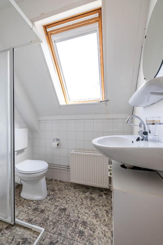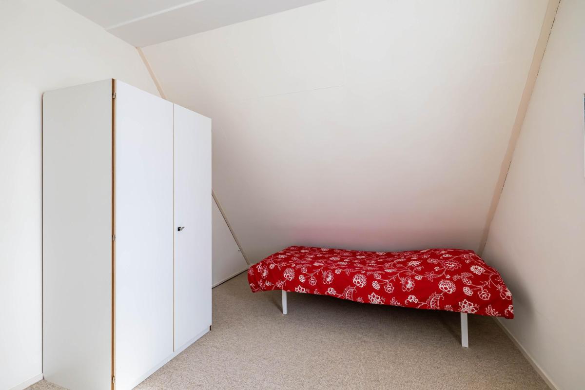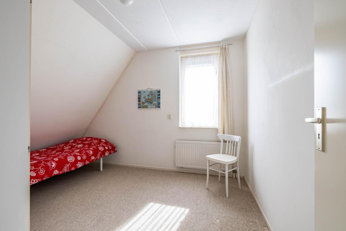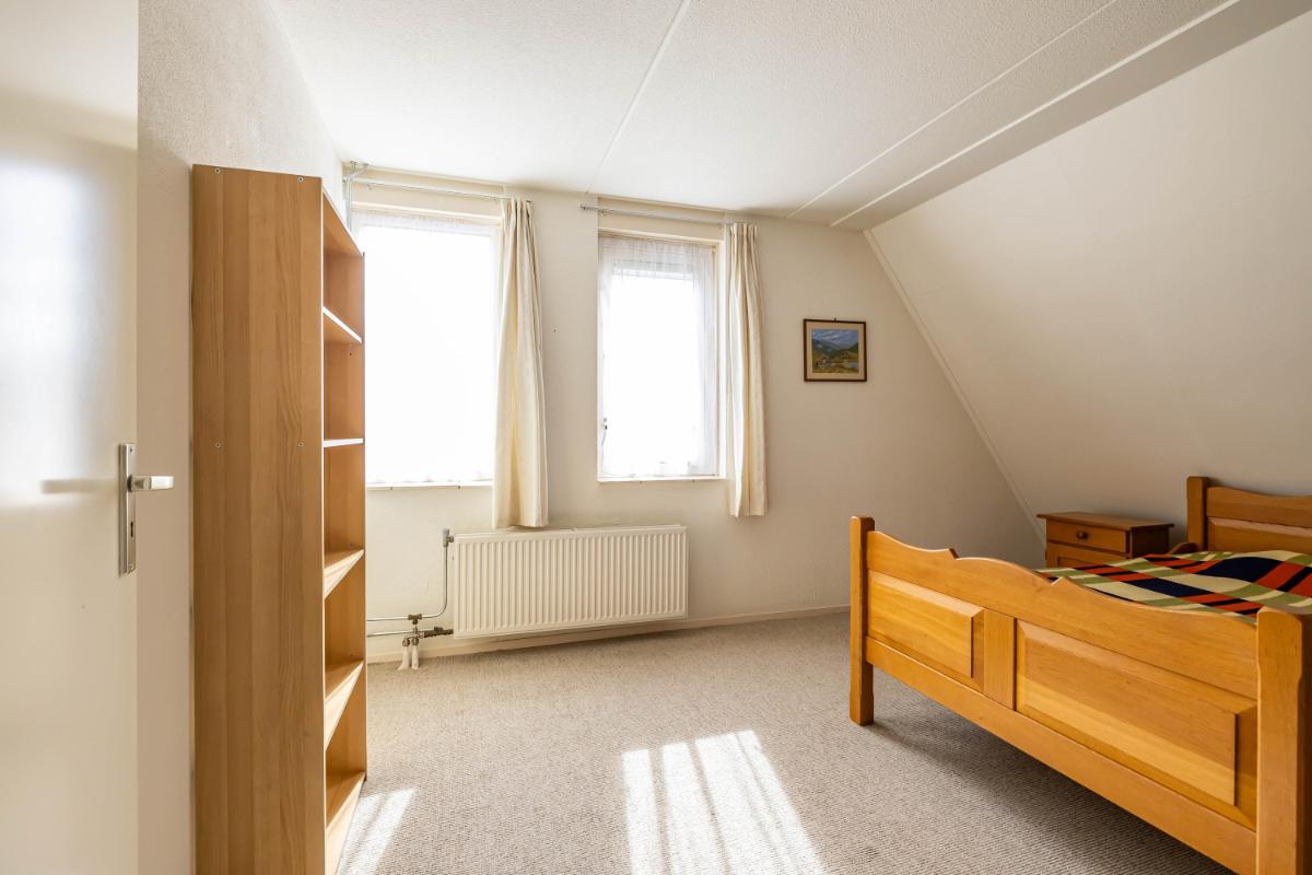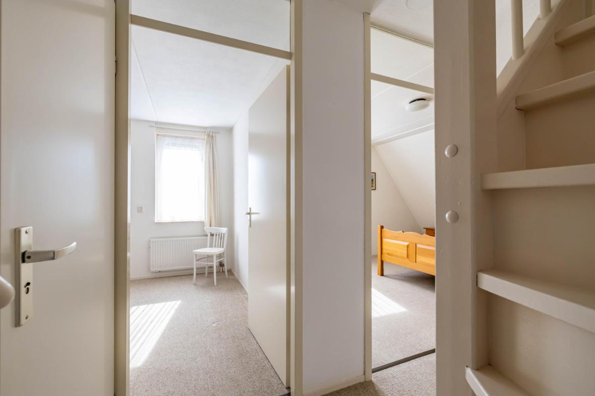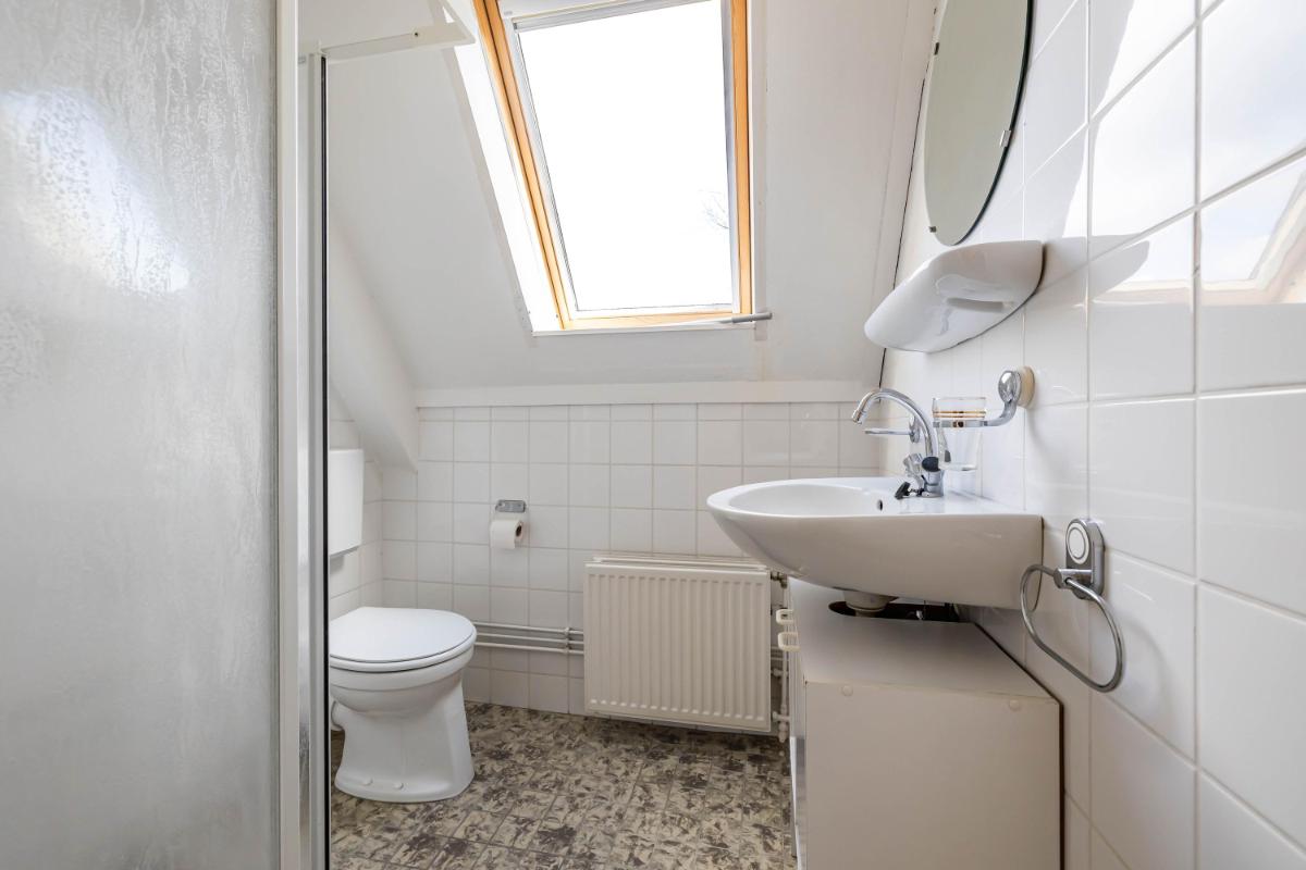 Eerste verdieping Op de eerste verdieping bevinden zich twee slaapkamers en de badkamer. De ruimtes zijn compact en eenvoudig uitgevoerd, maar altijd netjes onderhouden. De grootste slaapkamer ligt aan de achterzijde en beschikt over twee vaste kasten. Dankzij de raampartijen is er een prettige lichtinval. De tweede slaapkamer bevindt zich aan de voorzijde van de woning. De badkamer is voorzien van een toilet, douchecabine en een wastafel met meubel. Het grote dakraam zorgt voor veel natuurlijk licht. De badkamer is functioneel, maar mag gemoderniseerd worden naar hedendaagse woonwensen.