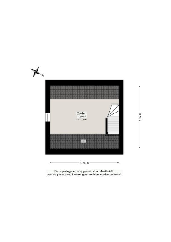 Tweede verdieping Via een vaste trap bereik je de ruime zolderverdieping. Deze biedt volop mogelijkheden, zoals het realiseren van een derde slaapkamer. Door het plaatsen van een dakkapel vergroot je niet alleen het woonoppervlak, maar ook het comfort en de lichtinval aanzienlijk. Daarnaast is er extra bergruimte aanwezig.