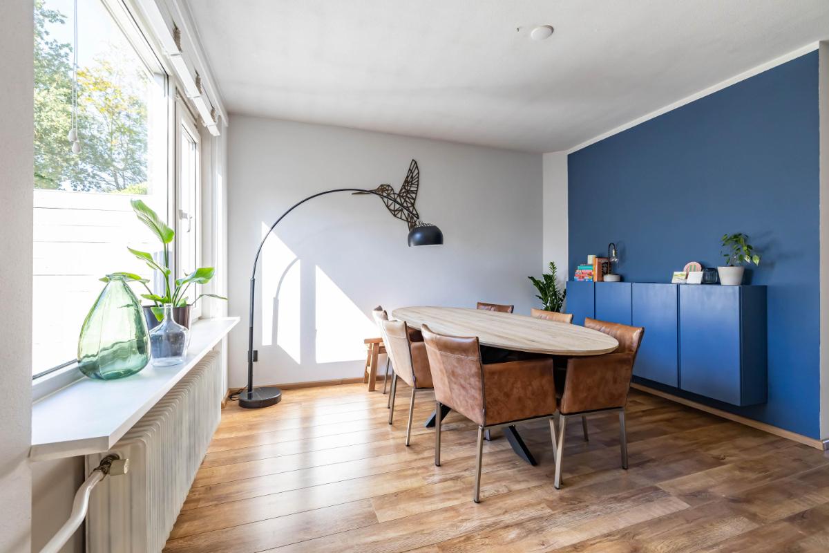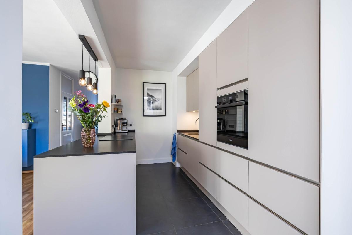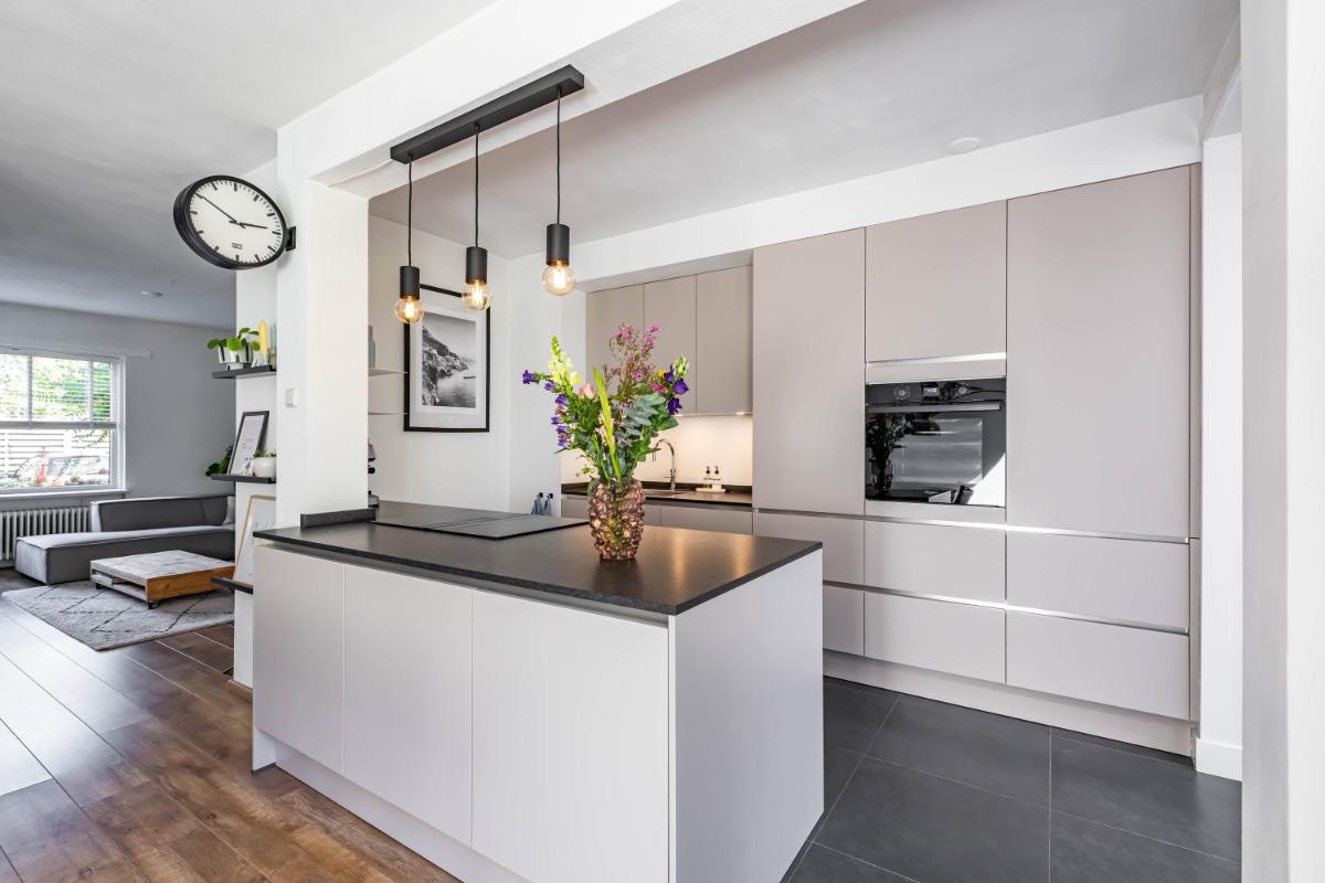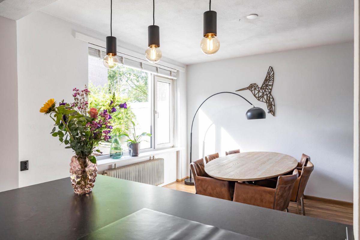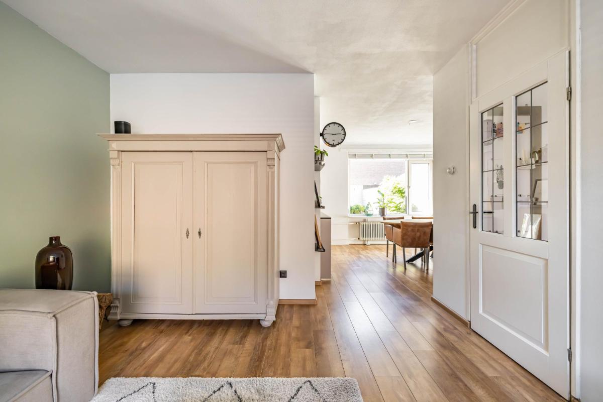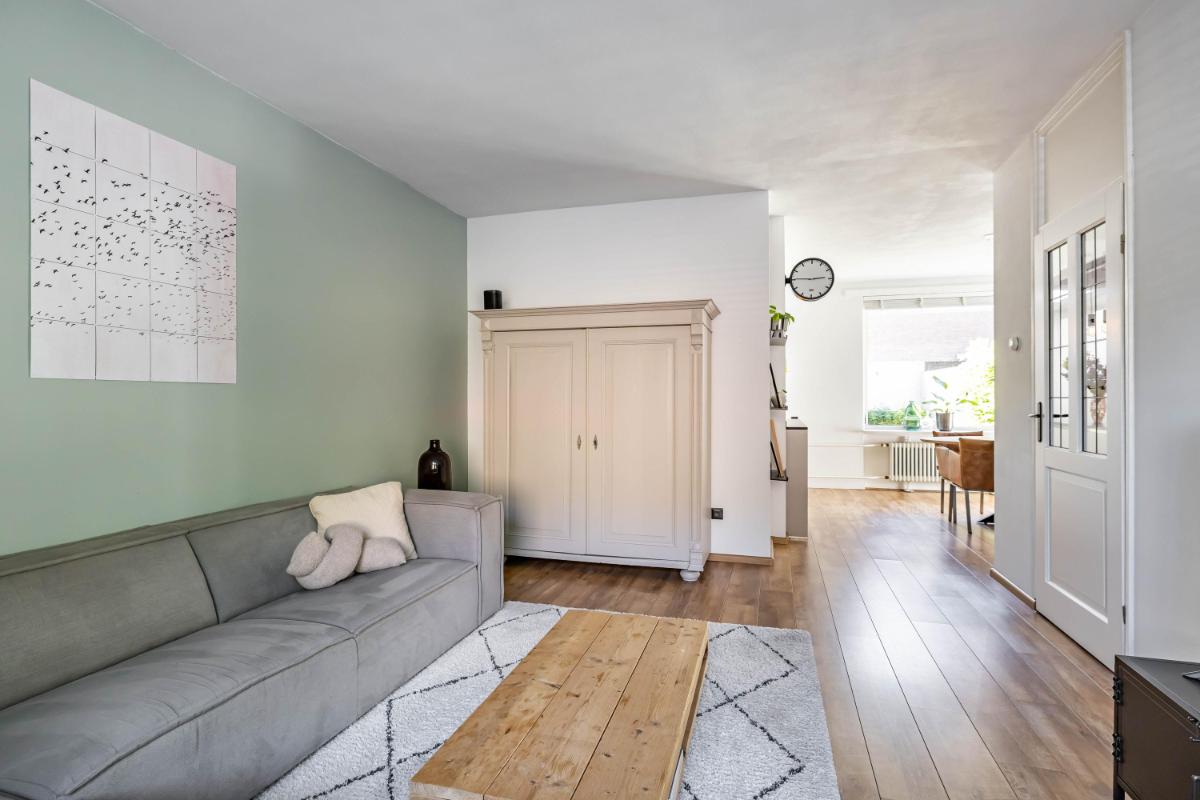 Indeling Begane grond Je parkeert je auto gemakkelijk voor de deur en betreedt de woning via de entree met trapopgang, toiletruimte en trapkast. De sfeervolle woonkamer biedt ruimte voor zowel een gezellige zithoek als een aparte eethoek. De moderne keuken is een echte eyecatcher. Onder andere voorzien van een BORA inductiekookplaat, Quooker en voldoende opbergmogelijkheden, is dit een heerlijke plek om thuis te komen. Aansluitend aan de keuken vind je de aanbouw met bijkeuken. Deze is voorzien van een dakraam en elektrische vloerverwarming voor extra comfort.