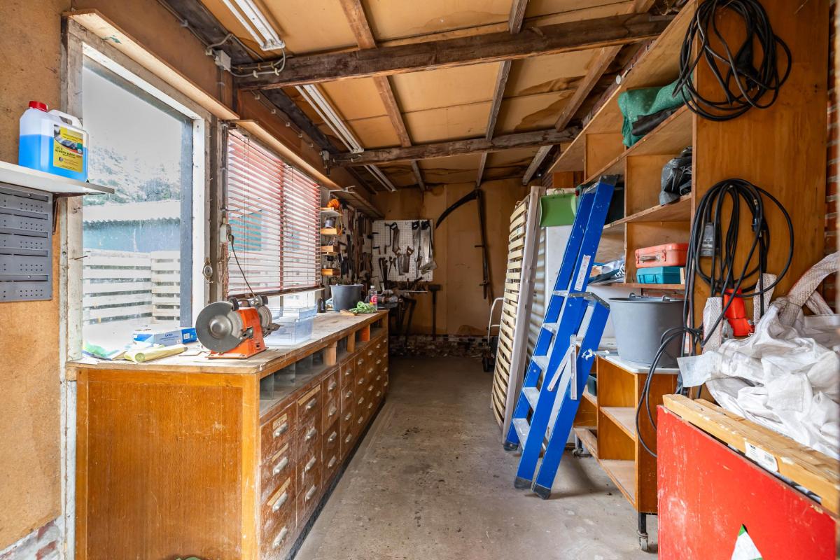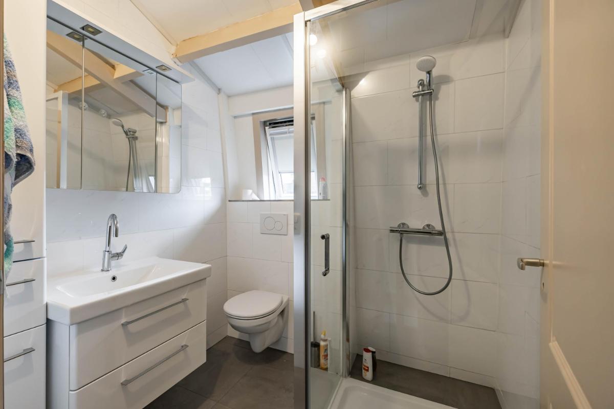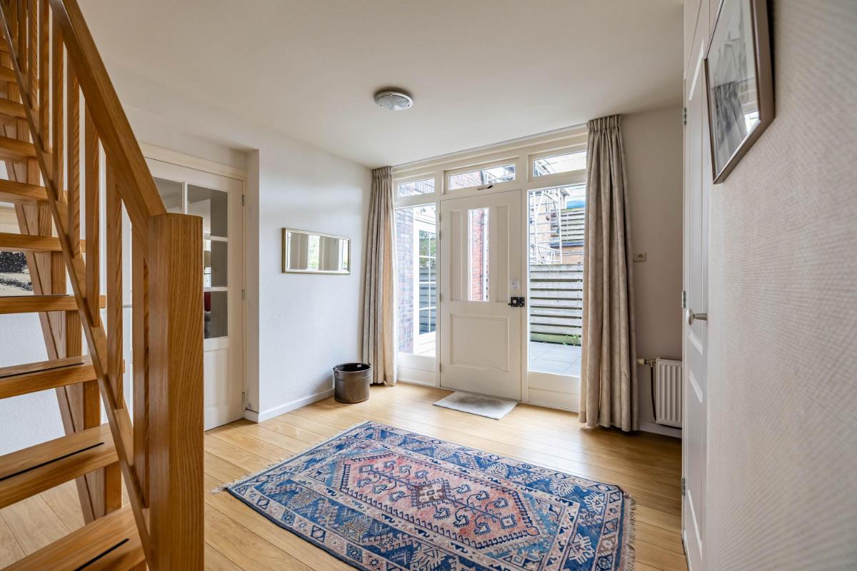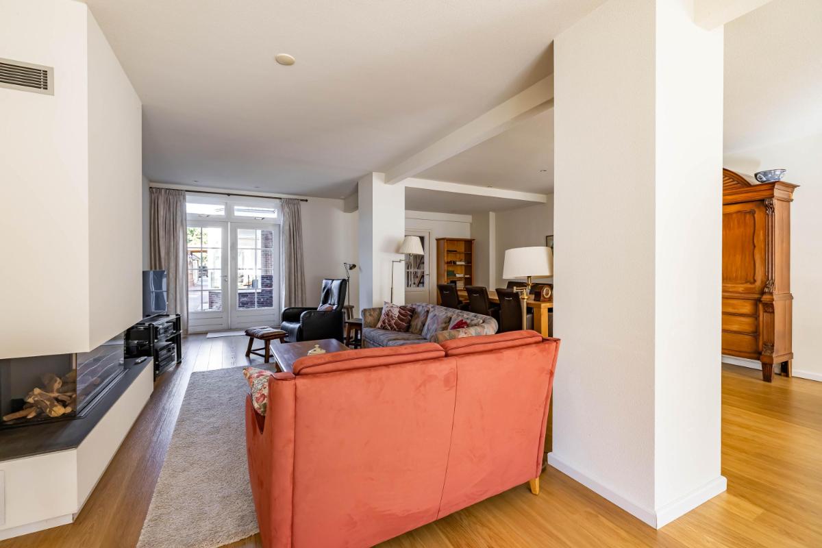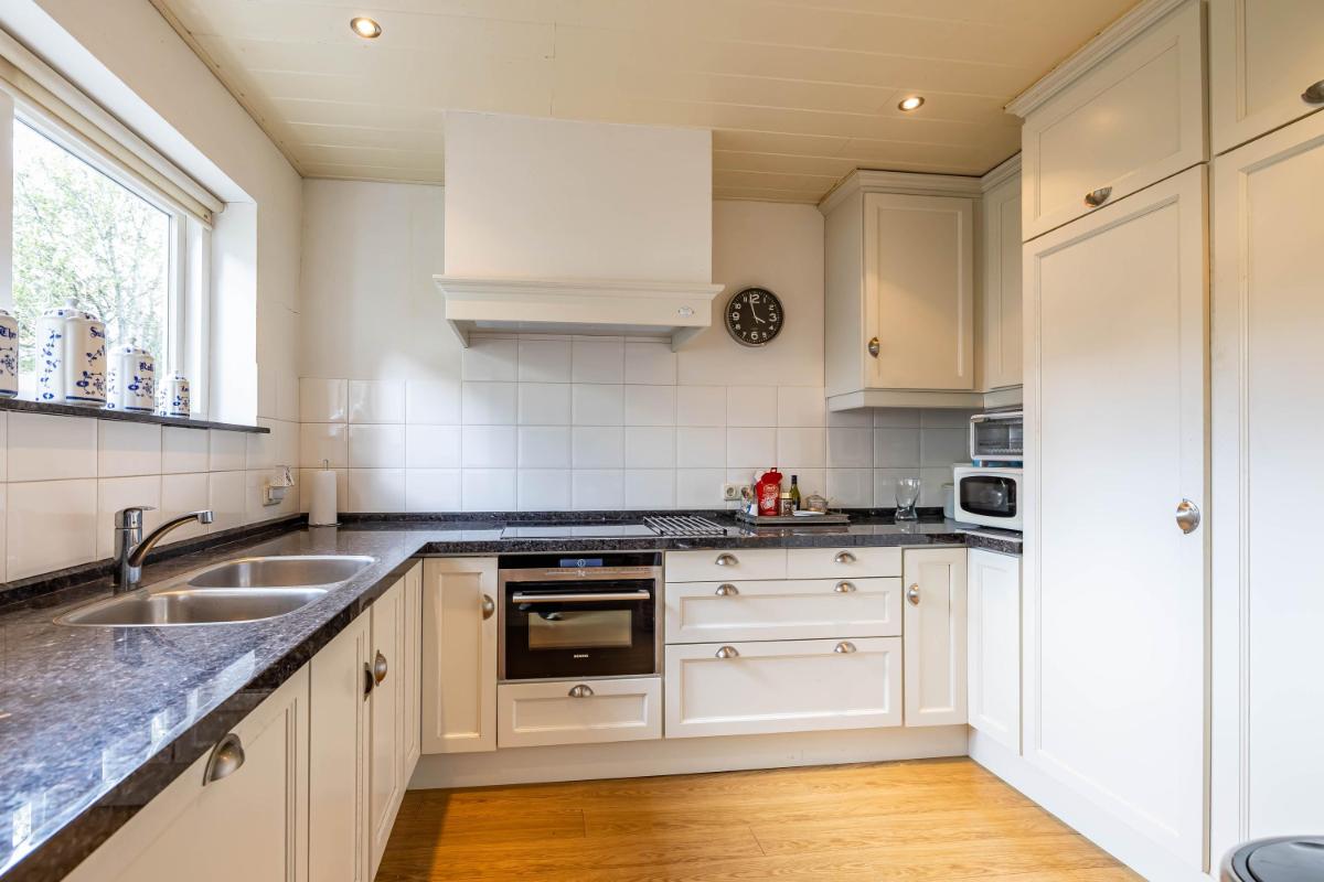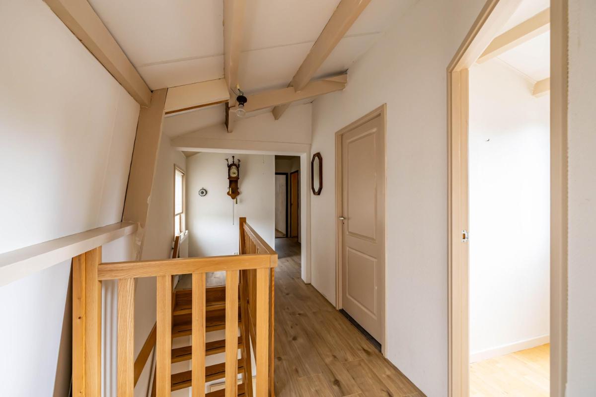 Indeling Begane grond De woonkamer is licht en ruim, met een moderne gashaard die meteen een warme en sfeervolle uitstraling geeft. Aangrenzend vindt u de landelijke woonkeuken, voorzien van moderne inbouwapparatuur – een plek om samen te koken, te eten en lang te tafelen. De royale entree met fraaie eikenhouten trap geeft direct karakter en stijl aan het huis. Op deze verdieping zijn daarnaast een toilet en een compacte doucheruimte aanwezig, die u desgewenst naar eigen smaak kunt vernieuwen. De woning biedt daarnaast volop praktische ruimtes die het wooncomfort verhogen. Zo is er een verwarmde schuur met zolder, een aparte berging die ideaal is voor fietsen of hobby’s, en een droge kelder die direct vanuit de keuken bereikbaar is – ideaal voor extra voorraad.