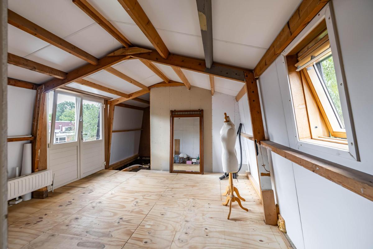 Vliering Boven de voormalige woonkamer bevindt zich een ruime vliering, bereikbaar via een vlizotrap.