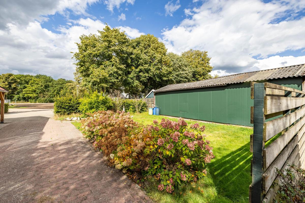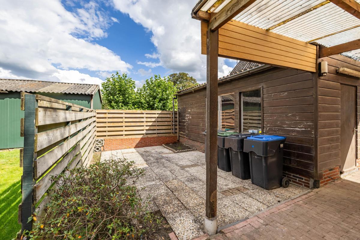 Tuin De woning staat op een royaal perceel met een lange oprit die plaats biedt aan meerdere auto’s. De achtertuin biedt veel privacy, groen en volop mogelijkheden om een fijne buitenplek te creëren – van zonnig terras tot speelruimte.