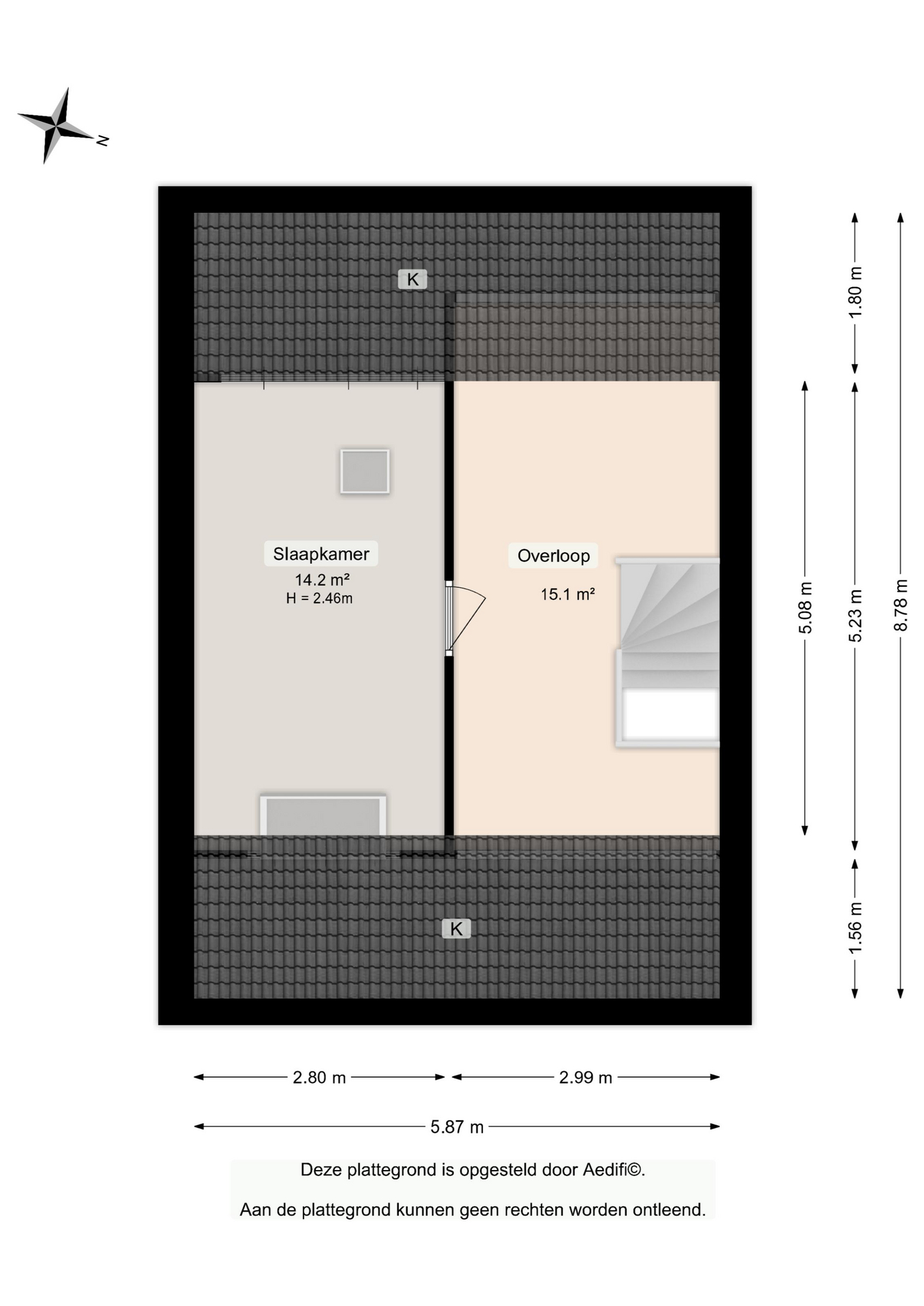 Tweede verdieping Via een vaste trap kom je op de tweede verdieping. Hier vind je een vijfde slaapkamer, een fijne extra ruimte die je ook goed kunt gebruiken als werkkamer of hobbyruimte. Achter de knieschotten is extra bergruimte aanwezig.