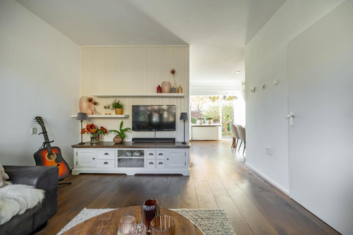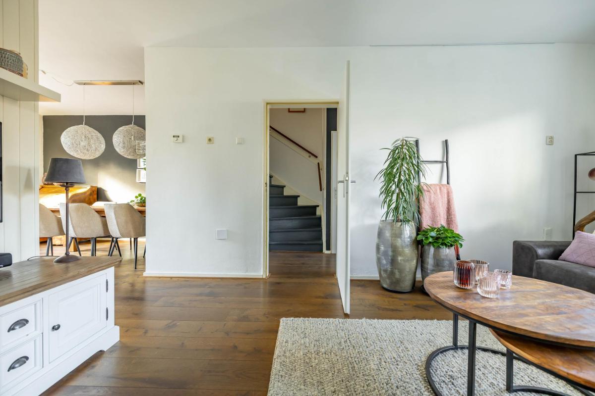 Indeling Begane grond Wanneer je de woning binnenstapt, kom je in een ruime en lichte entree met ruimte voor een garderobe. Hier vind je ook het gastentoilet. Vanuit de hal loop je door naar de sfeervolle woonkamer, waar het daglicht mooi binnenvalt en waar je verschillende gezellige zithoeken kunt creëren. De halfopen keuken sluit hier perfect op aan en is uitgerust met diverse inbouwapparatuur, zoals een vaatwasser en koel-vriescombinatie. Vanuit de keuken heb je toegang tot de praktische bijkeuken, waar de witgoedaansluiting zich bevindt. Ook kun je vanuit hier direct de tuin in – ideaal voor als je even snel iets wilt ophangen of in de zomer met gemak binnen en buiten afwisselt.