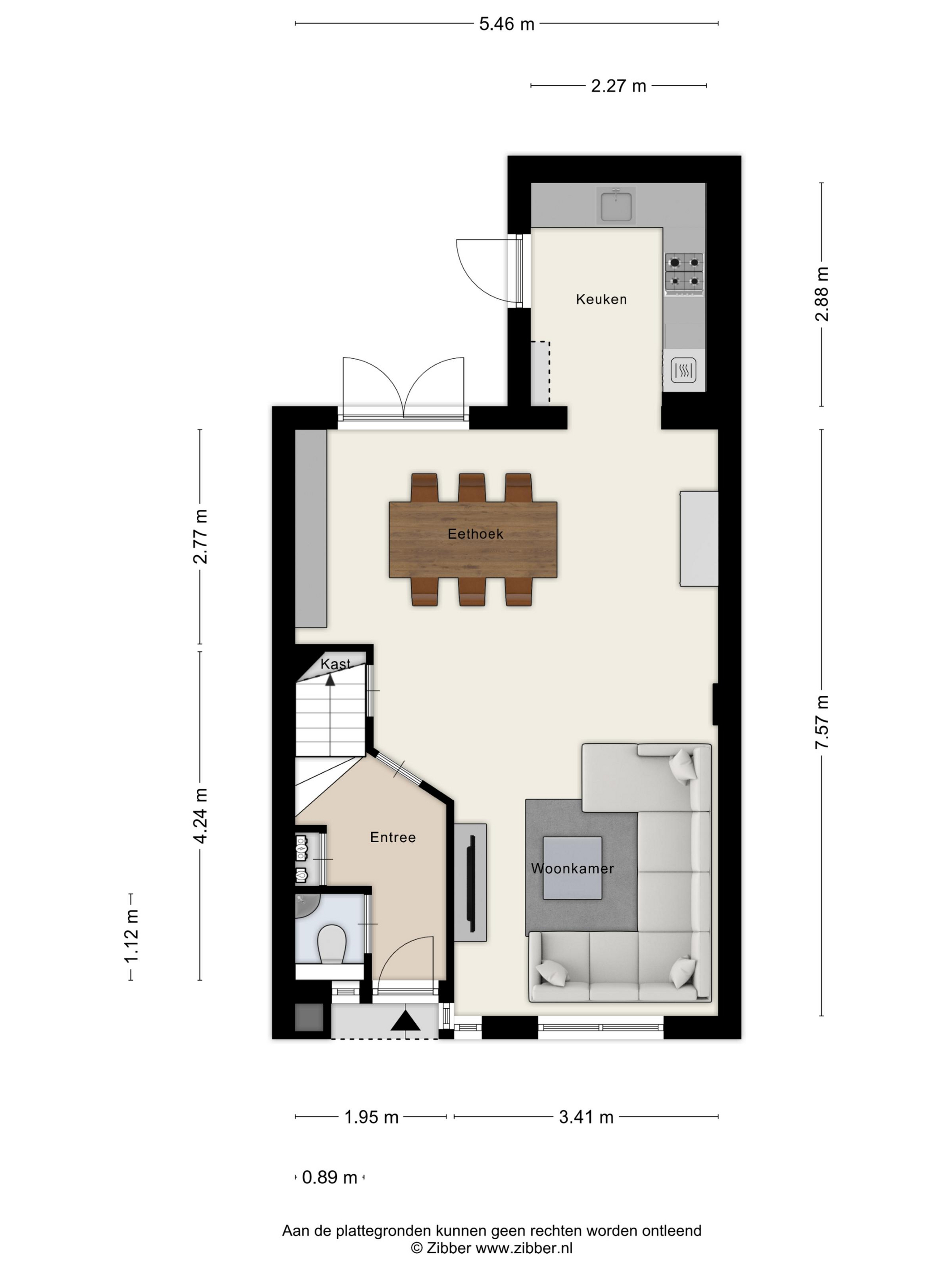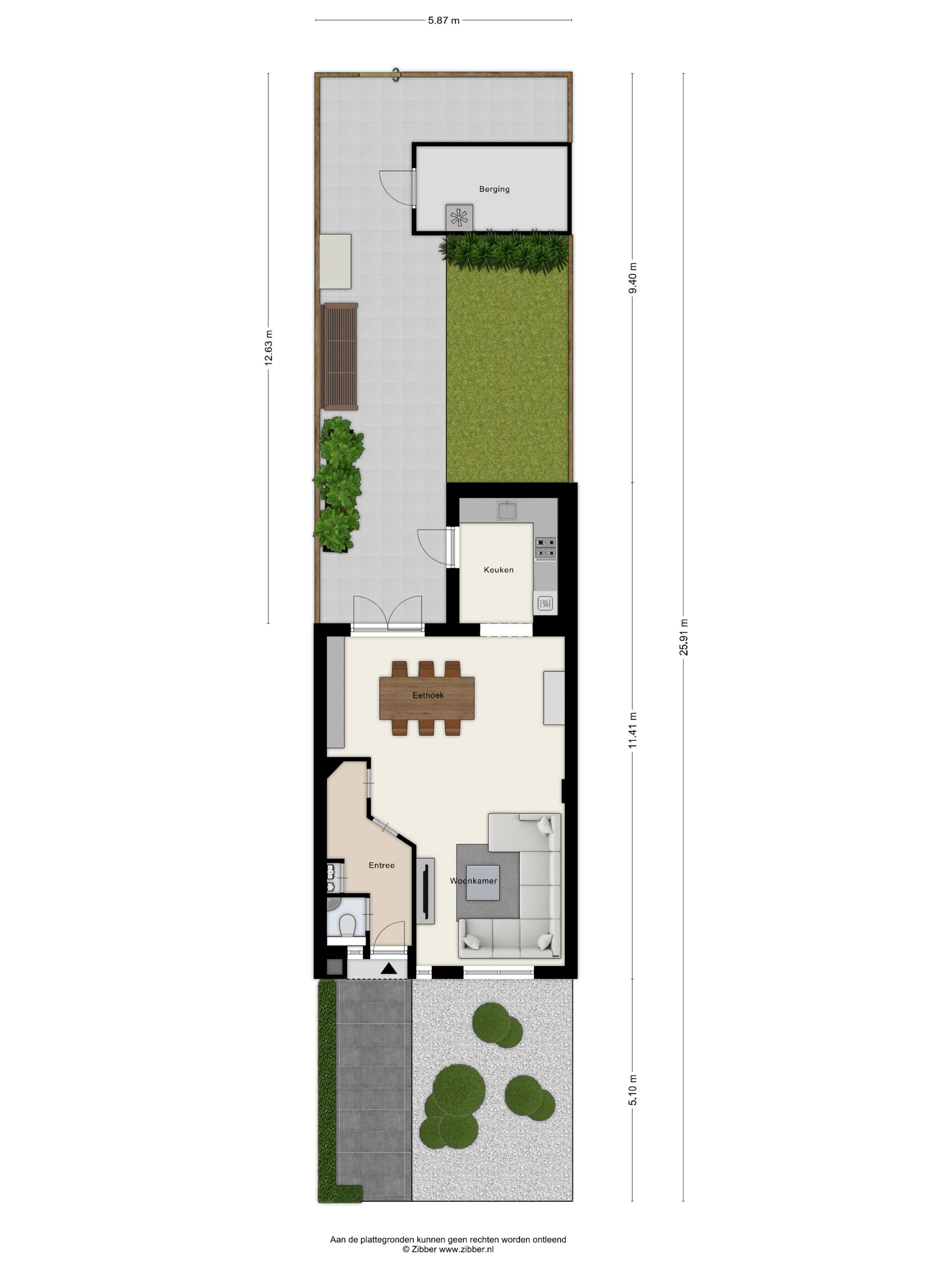 WOONKAMER De woonkamer biedt voldoende ruimte voor het plaatsen van zowel een zit- als een eethoek. Halverwege de woonkamer bevindt zich een praktische berg-/provisiekast. Aan de achterzijde geven dubbele openslaande deuren toegang tot de tuin.