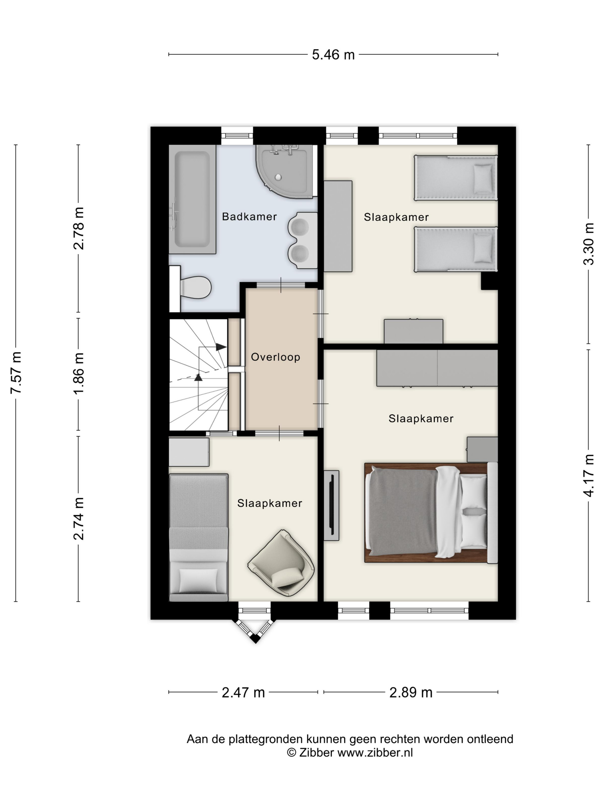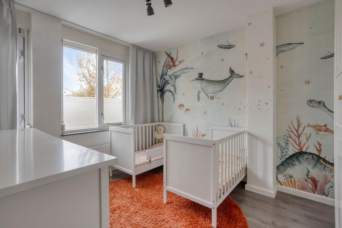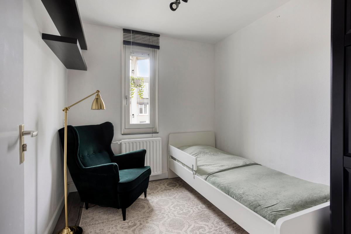 SLAAPKAMERS - Slaapkamer 1 (ca. 12 m²): Ruime master bedroom, gelegen aan de voorzijde van de woning. - Slaapkamer 2 (ca. 10 m²): Eveneens een ruime slaapkamer, momenteel in gebruik als kinderkamer. - Slaapkamer 3 (ca. 7 m²): Derde slaapkamer, gelegen aan de voorzijde van de woning; prima geschikt als babykamer of werkplek. - Slaapkamer 4 (ca. 16 m²): Deze vierde slaapkamer bevindt zich op de tweede verdieping. Aan de achterzijde is een dakkapel geplaatst. Tevens is er bergruimte aanwezig onder de schuine dakdelen.