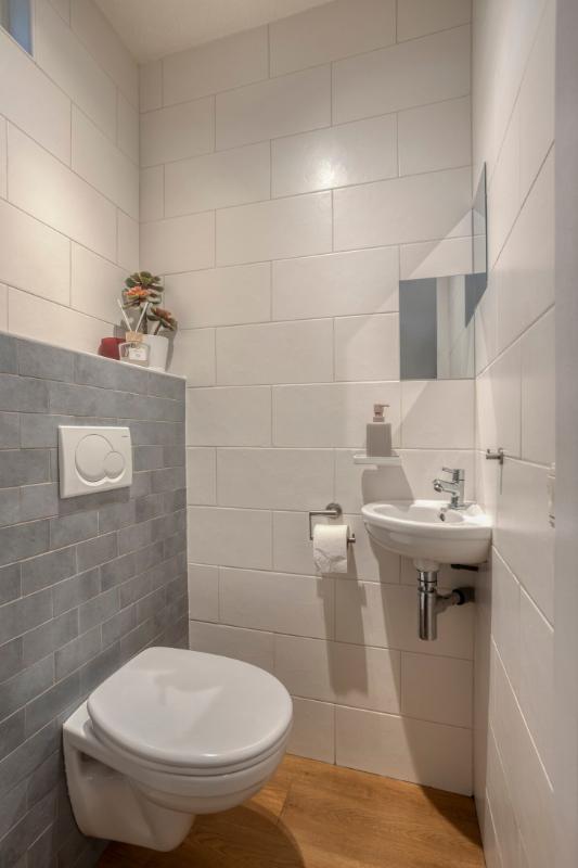 HAL/ENTREE Overdekte entree. Hal met meterkast (voorzien van een vernieuwde groepenkast), toiletruimte met wandcloset en fonteintje, trapopgang en doorloop naar de living.