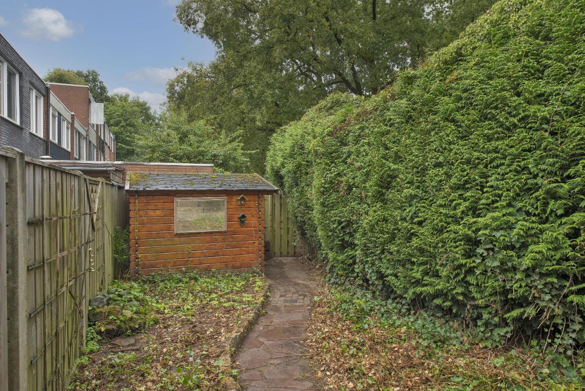 Tuin: De tuin achter het huis is een heerlijke plek om van buiten te genieten. Het terras bij de woning is ideaal voor een tuinset of een ontspannen loungehoek. Het pad brengt je naar de houten berging achterin, praktisch voor opslag van fietsen en spullen. De hoge groene haag zorgt voor beschutting en privacy, waardoor je hier echt ongestoord buiten kunt zitten. Met wat aandacht en creativiteit tover je deze tuin om tot een sfeervolle buitenruimte die perfect past bij jouw wensen.