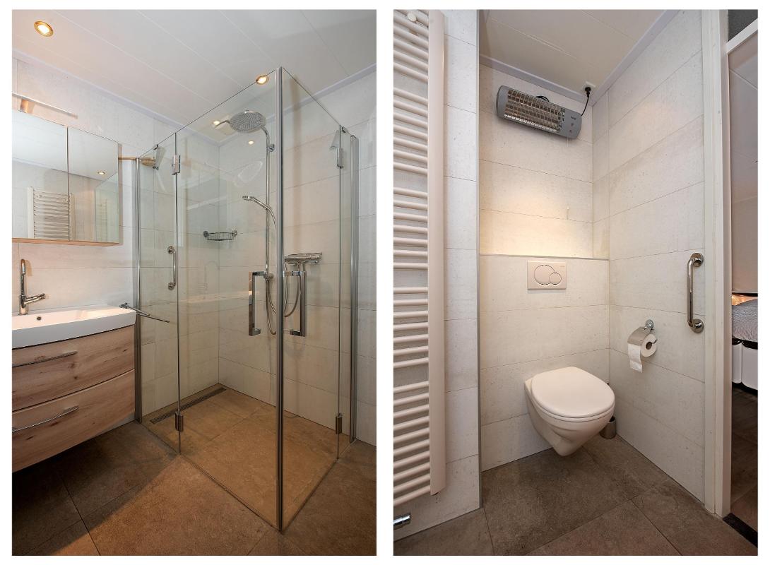 Begane grond: Via de rustige brede straat met veel groen kom je bij de nette voortuin met eigen oprit en de fraaie gevel met grote raampartijen en het kenmerkende puntdak. Je stapt binnen in de hal met toegang tot de woonkamer, het toilet met fontein en de trap naar boven. Vanuit hier loop je door naar de lange woonkamer waar de grote ramen aan de voorzijde voor veel lichtinval zorgen. Een vaste kast biedt praktische bergruimte voor bijvoorbeeld voorraad en huishoudelijke spullen. Aan de achterzijde van de woonkamer ligt de open keuken in L-vorm met ruim voldoende plek voor een grote eettafel. De keuken beschikt over diverse inbouwapparatuur zoals een 5 pits inductiekookplaat met afzuigkap, oven, koelkast en vaatwasser. De lange ramen aan de achterzijde geven mooi zicht op de tuin en zorgen voor een fijne verbinding met buiten. Direct naast de keuken bevindt zich de tweede hal met vaste kast. Vanuit deze hal heb je toegang tot de slaapkamer op de begane grond, de tuin en de garage. De slaapkamer is ruim en voorzien van een brede vaste kast. Aan de slaapkamer grenst een van de badkamers. Deze badkamer is voorzien van een toilet, wastafelmeubel en douche. Zo heb je alle nodige voorzieningen op de begane grond. De garage is praktisch ingedeeld met een lange vaste kast, aansluiting voor de wasmachine, CV opstelling en een stortbak. Daarnaast is de garage ook via de luifel aan de voorkant van de woning bereikbaar. Het huis geeft je zekerheid door de bouwtechnische keuring, is netjes afgewerkt en voorzien van strakke wanden en klassieke paneeldeuren.