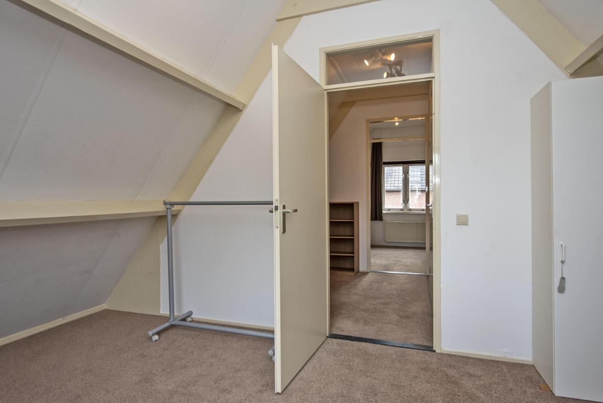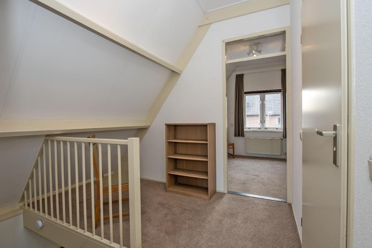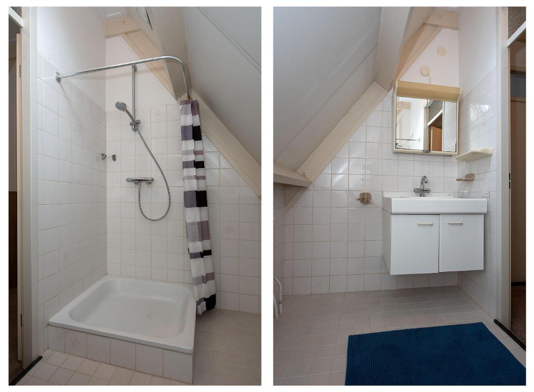 1e verdieping: De ruime overloop van de eerste verdieping bereik je via de vaste trap bekleed met vloerbedekking. Hier op de overloop ervaar je direct de hoogte van het dak dat de verdieping geeft. Via de overloop kom je uit bij de twee slaapkamers en de tweede badkamer. Aan de voor- en achterzijde liggen twee volwaardige slaapkamers met schuine daklijnen, wat de ruimtes gezellig en knus maakt. De kamers hebben beide een prettig formaat en dankzij de ramen komt er voldoende daglicht binnen. Ze zijn flexibel te gebruiken als slaap-, werk- of hobbykamer. Tussen de slaapkamers in ligt de tweede badkamer van de woning. Deze ruimte is functioneel ingedeeld met een douche, wastafelmeubel en spiegel. Een fijne praktische verdieping, die veel mogelijkheden biedt voor je eigen wensen.