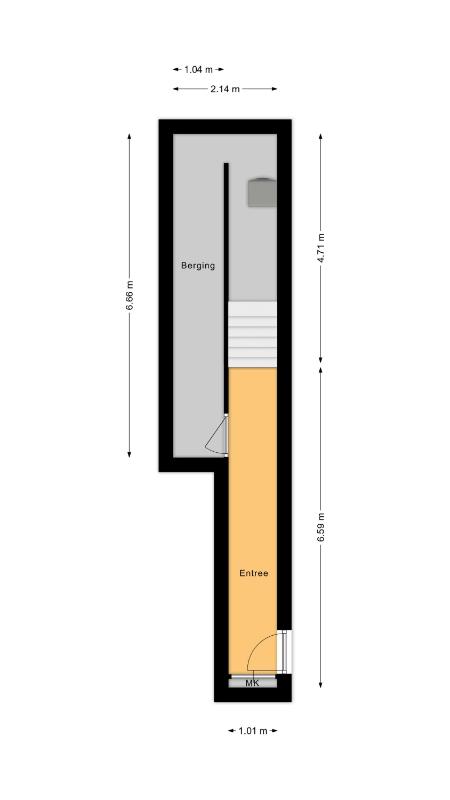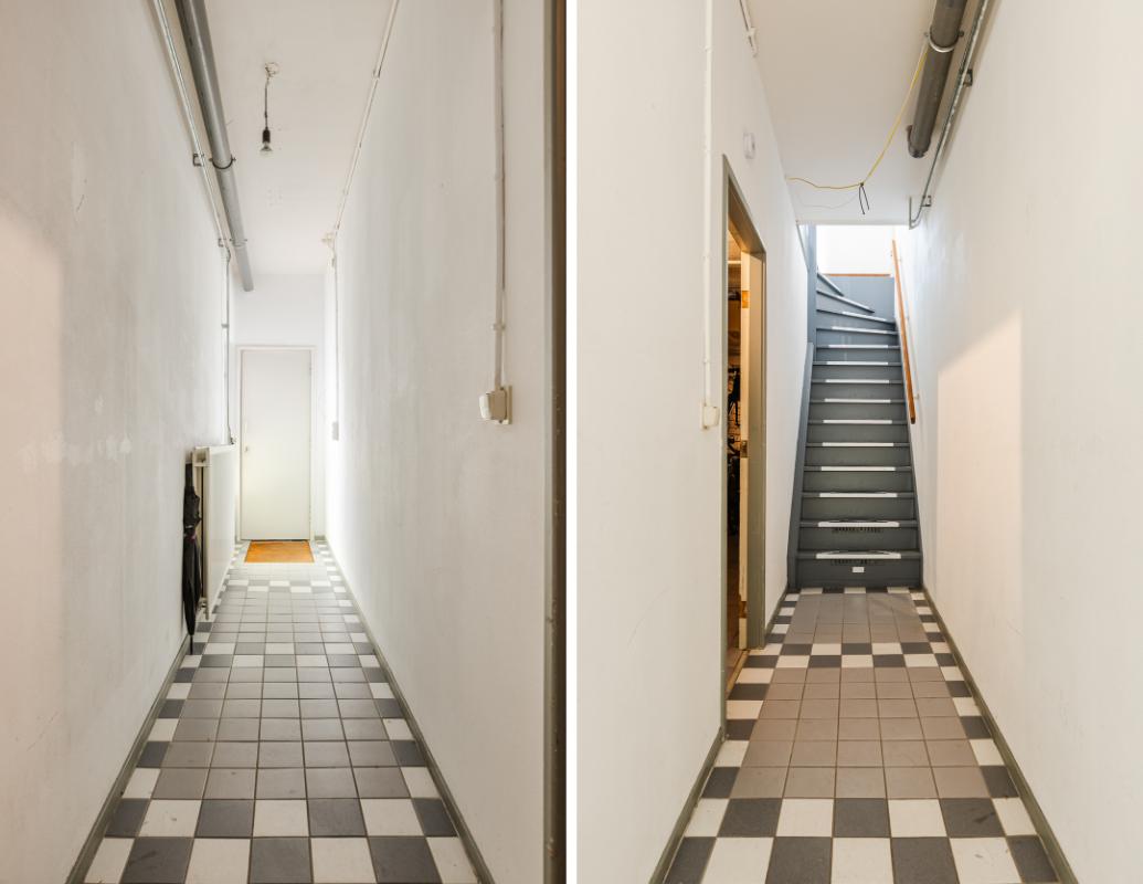 Begane grond: Eigen entree met videofoon installatie, ruime berging en trapopgang.