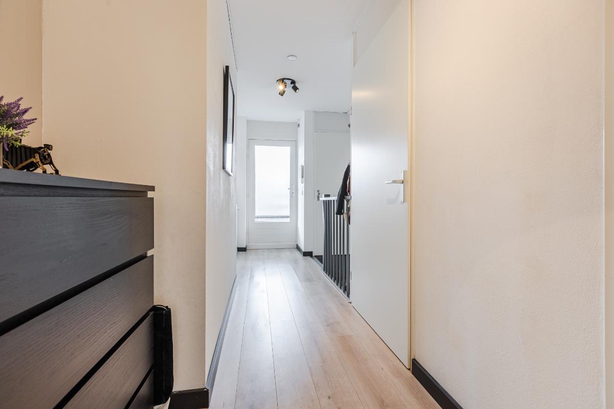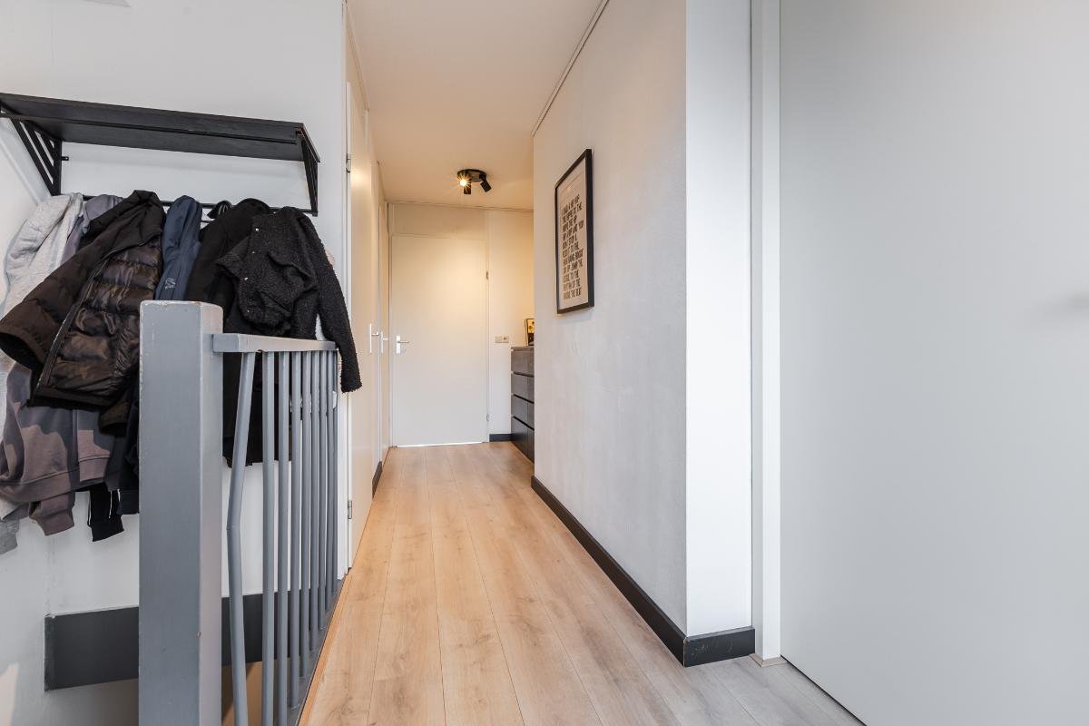 Het unieke van dit appartement is dat het een eigen entree heeft op de begane grond. De gang aldaar geeft toegang tot de inpandige berging en een eigen trapopgang. Deze ruimte is alleen toegankelijk en in gebruik van de eigenaar van het appartement. Daarnaast is er op de eerste verdieping ook een entree vanuit de galerij aan de achterzijde. Het balkon aan de voorkant ligt op het zuiden. Een bezichtiging zal zeer verrassend zijn en zeker de moeite waard.