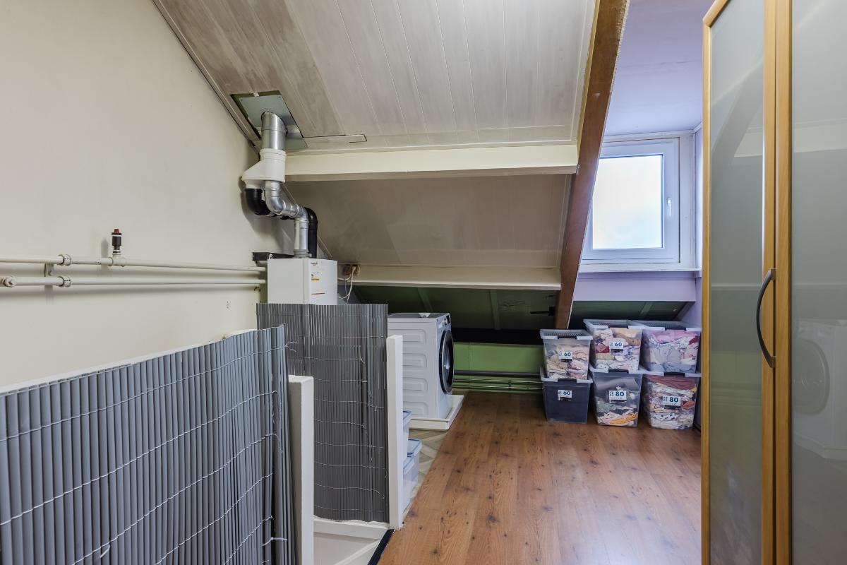 2e Verdieping: Voorzolder met ruimte voor de wasmachine en CV ketel (ca. 2017). Op zolder bevindt zich de vijfde slaapkamer met dakkapel, welke ook perfect te gebruiken is als kantoor of hobbyruimte. Vloer 1e verdieping is v.v. laminaat.