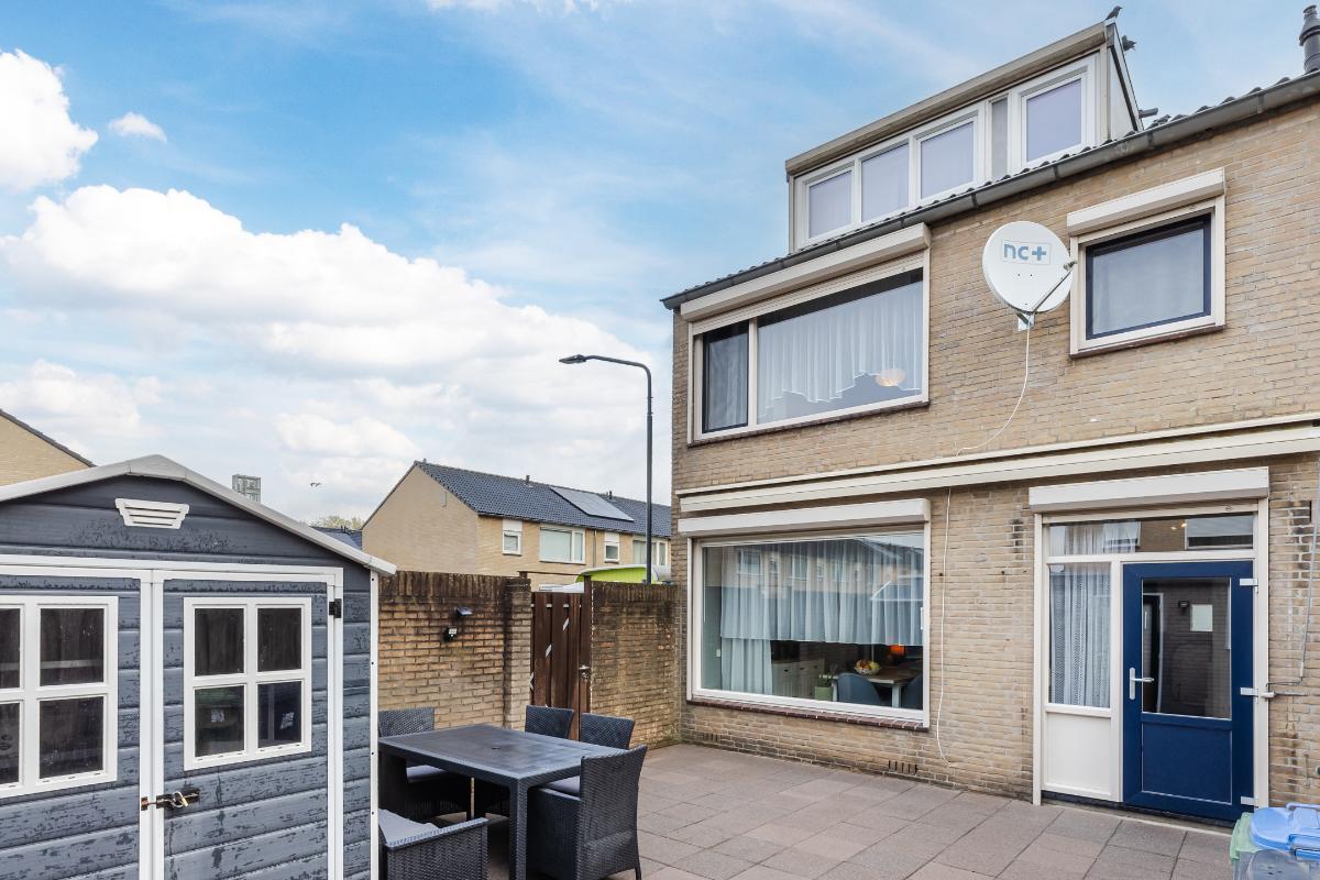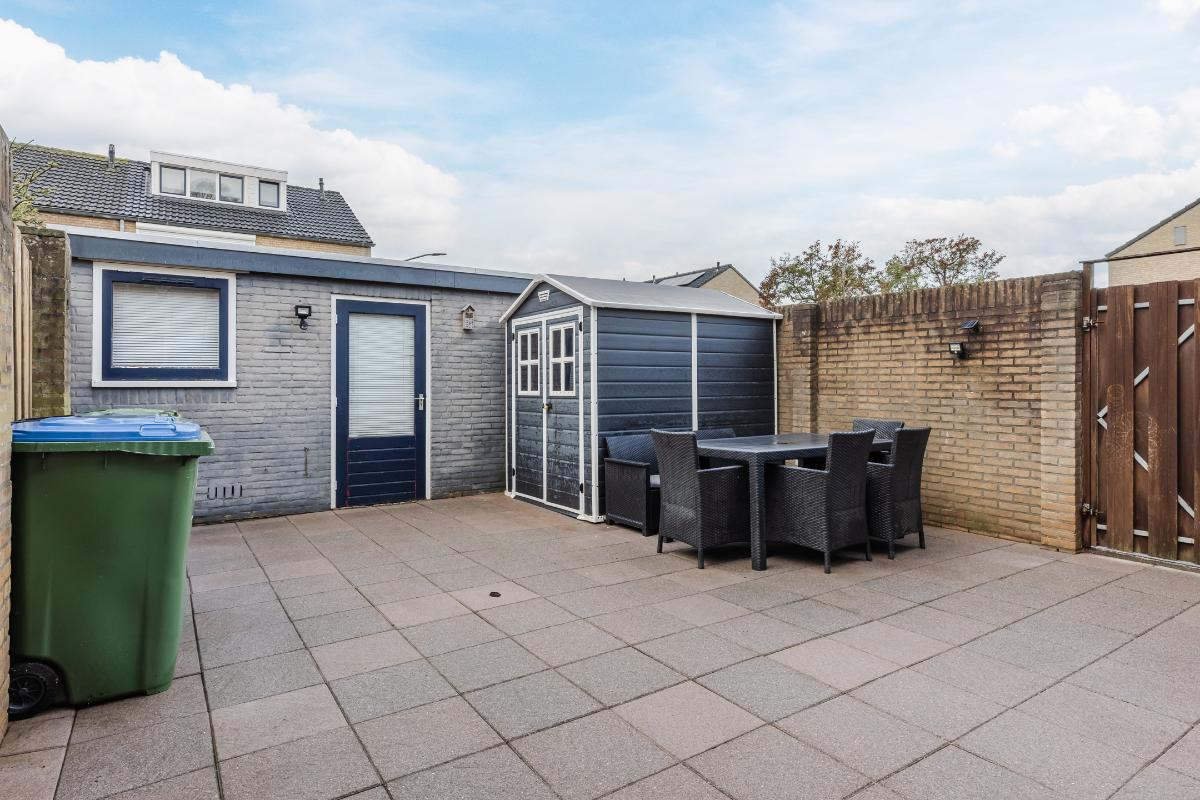 Buitenruimte & tuin: Deze woning biedt een voor- en achtertuin. De achtertuin is volledig betegeld en beschikt over een tuinhuisje en een vrijstaande garage.