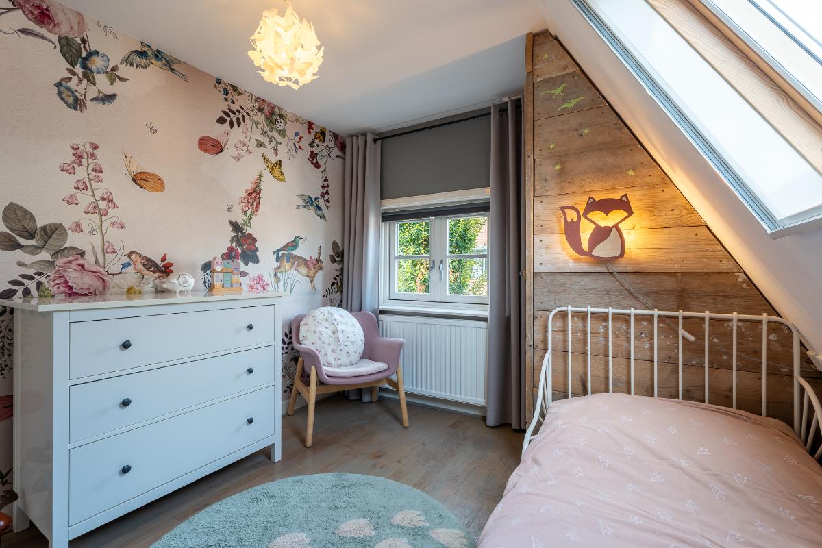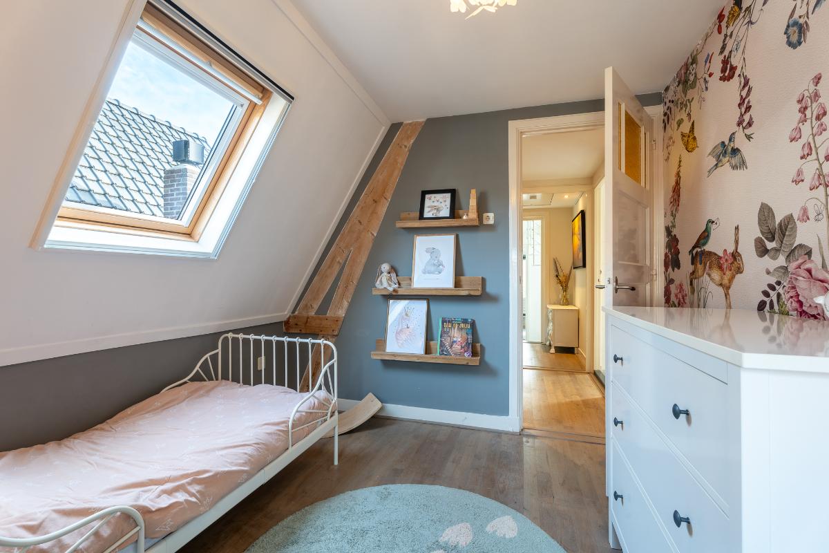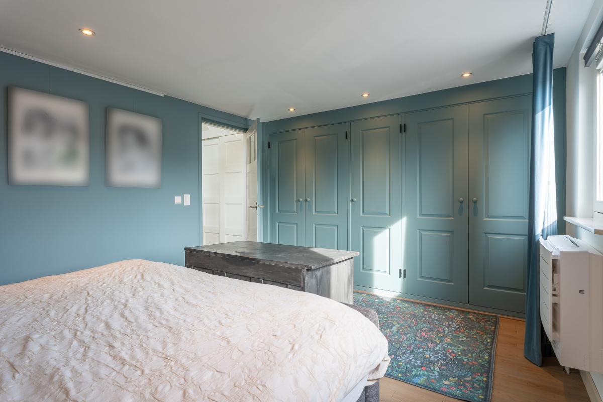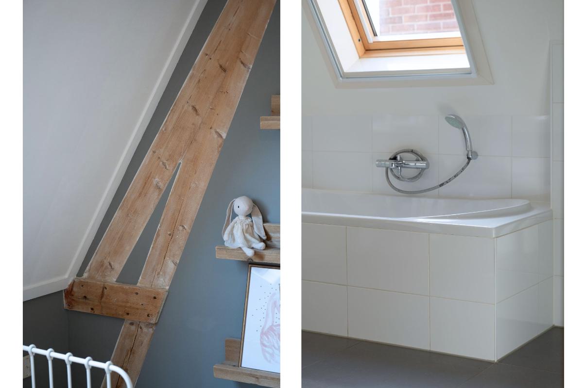 SLAAPKAMERS (3) In alle 3 de slaapkamers is veel sfeer gecreëerd middels de houten balken prachtig in het zicht verwerkt; slaapkamer I, gelegen aan de voorzijde met (kastanje) houten vloer, VELUX dakraam, steigerhouten kast en hardhouten kozijnen met isolerende beglazing; slaapkamer II, eveneens gelegen aan de voorzijde met (kastanje) houten vloer, VELUX dakraam, op maat gemaakte kledingkast en hardhouten kozijnen met isolerende beglazing; (ouder) slaapkamer III, gelegen aan de achterzijde en voorzien van een (kastanje) houten vloer, geheel op maat gemaakte vaste kastenwand, airconditioning, strakke wand- en plafondafwerking met inbouwspots en hardhouten kozijnen met isolerende beglazing.