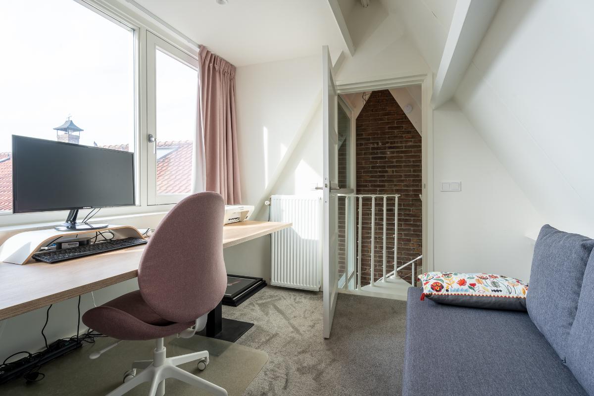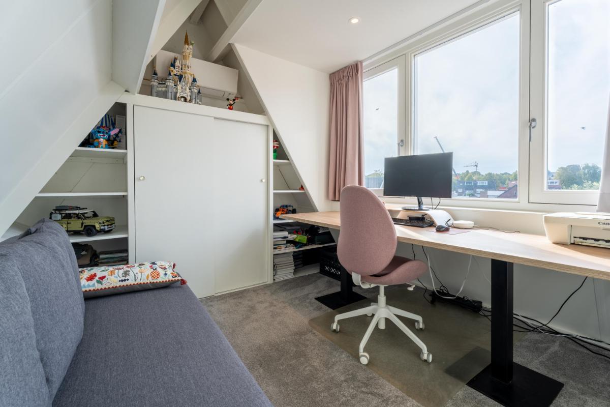TWEEDE VERDIEPING In 2021 is optimaal gebruik gemaakt van de mogelijkheid om een extra verdieping te betrekken bij deze woning. Middels een handig gekozen en bovenal passende wenteltrap, van waaruit een prachtige doorkijk is op de ondergelegen leefkeuken, is deze verdieping te bereiken. Deze ruimte is ideaal ingericht als werkkamer/kantoor maar kan desgewenst ook als extra slaapkamer fungeren. De ruimte is strak afgewerkt en beschikt over een inbouwkast, dakkapel met screen en tweetal openslaande ramen, radiator, airconditioning, vloerbedekking en inbouwspots.