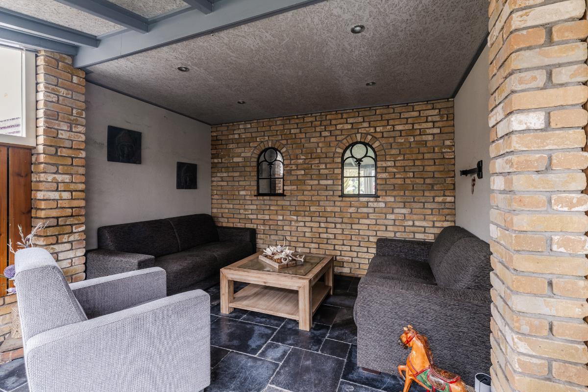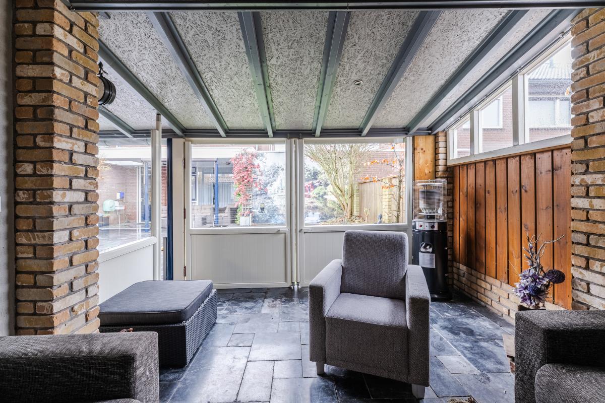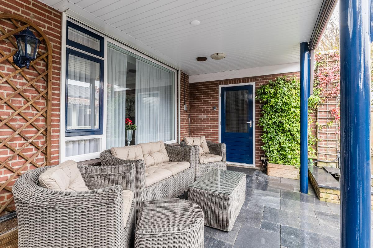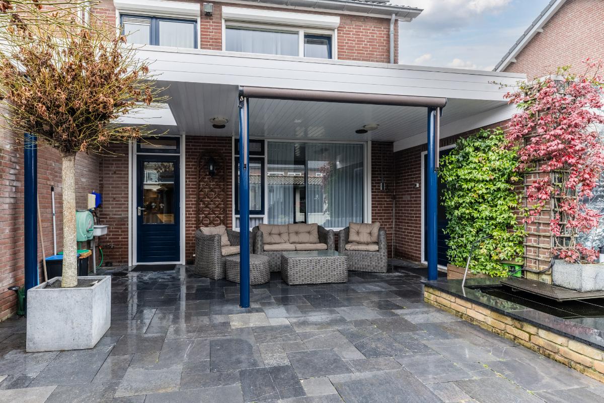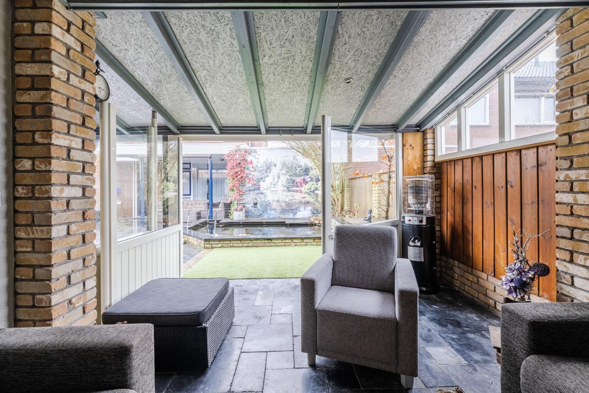 Er is extra aandacht besteedt an de achtertuin. Het terras aan de achterzijde van de woning is overdekt. Achterin de tuin heb je de beschikking over 2 veranda's waarvan 1 afgesloten kan worden. Verder is de tuin volledig v.v. bestrating en een vijver. Uiteraard beschikt de woning over een berging en een achterom naar de brandgang.